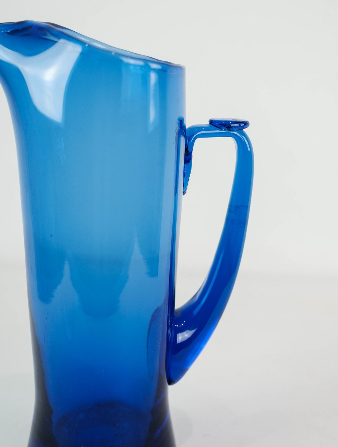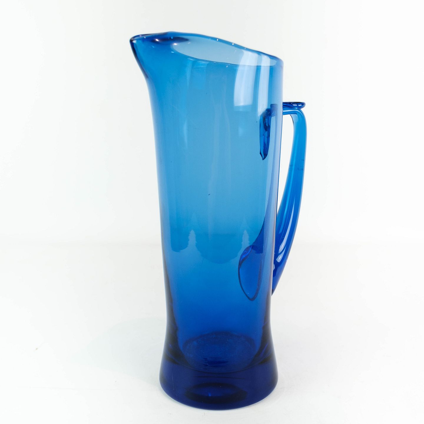 SolgtKande i mørkeblåt glas af Holmegaard. Kanden er i flot brugt stand.