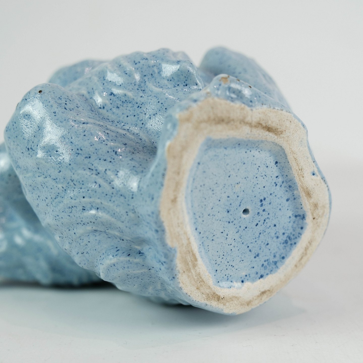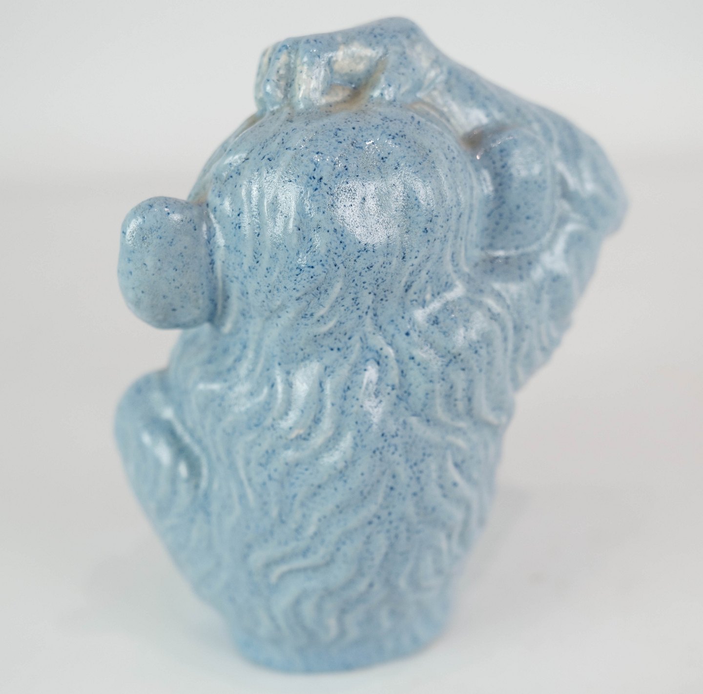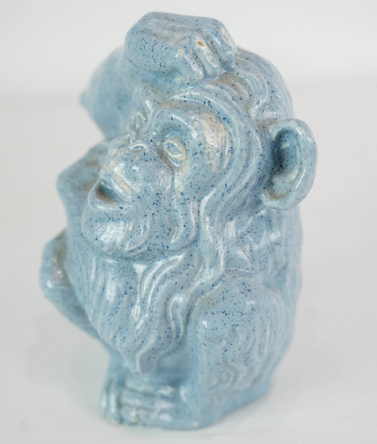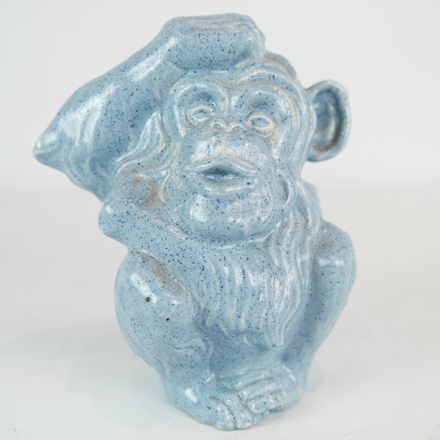 Ceramic figure in the shape of a monkey with light blue glaze from the 1960s.
