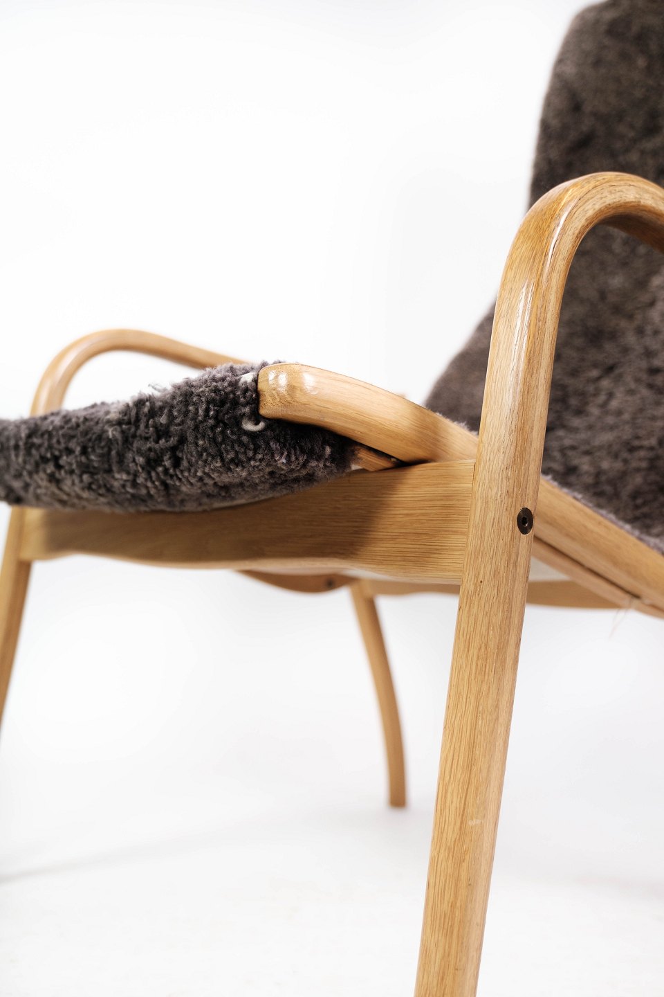 SoldEasy chair, model Lamino, designed by Yngve Ekström and manufactured by Swedese in the 1950s. The chair is in great vintage condition and with sheep skin.
