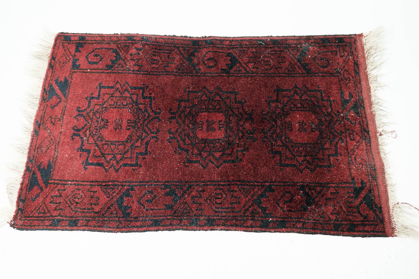 Ægte tæppe i røde farver, i flot brugt stand fra 1960erne.