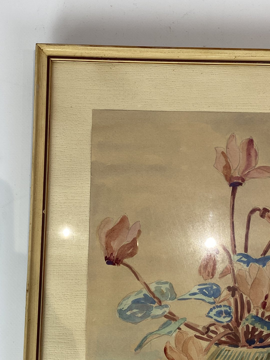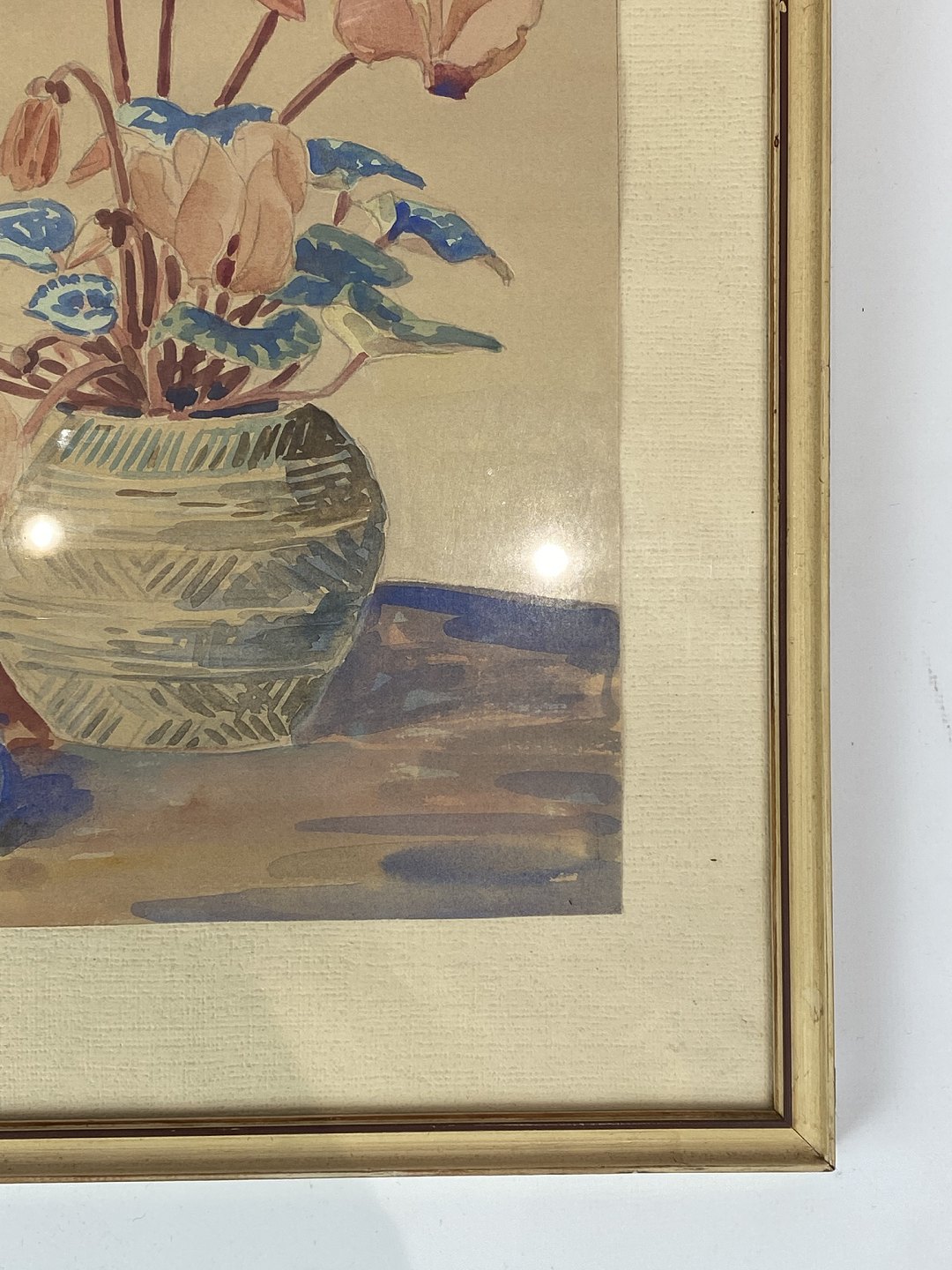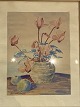 Akvarel med blomster motiv og med forgyldt ramme, fra omkring 1940erne.