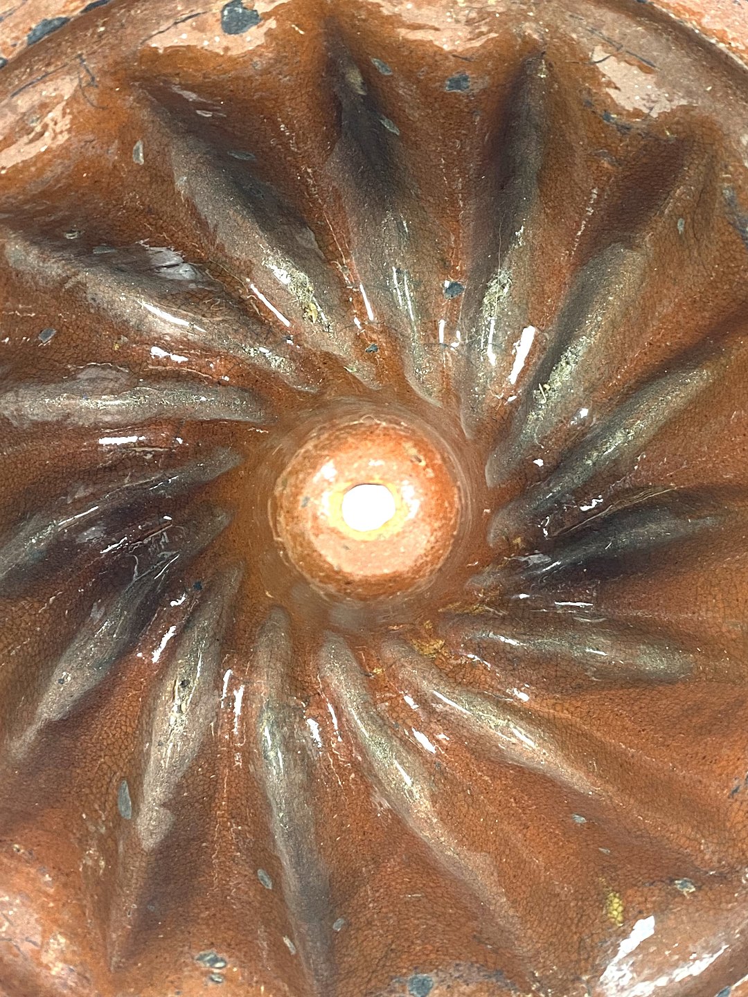 Ceramic pudding shaper in brown colours from around the 1930s. The bowl is in great antique condition.