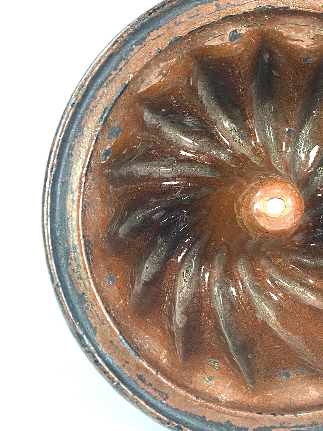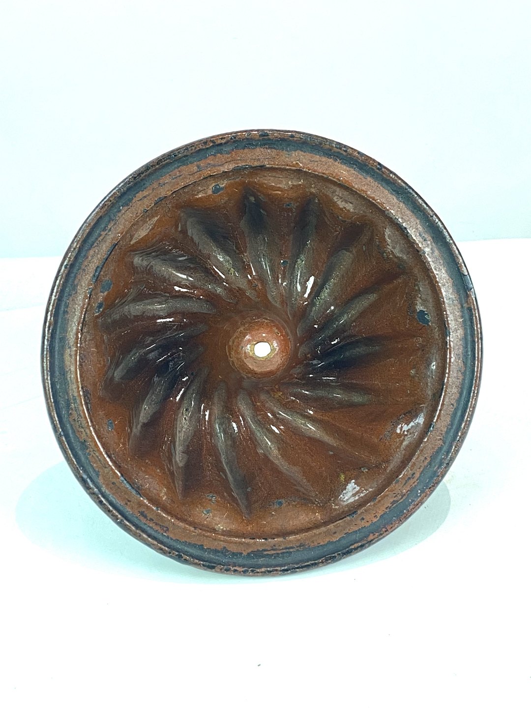 Ceramic pudding shaper in brown colours from around the 1930s.