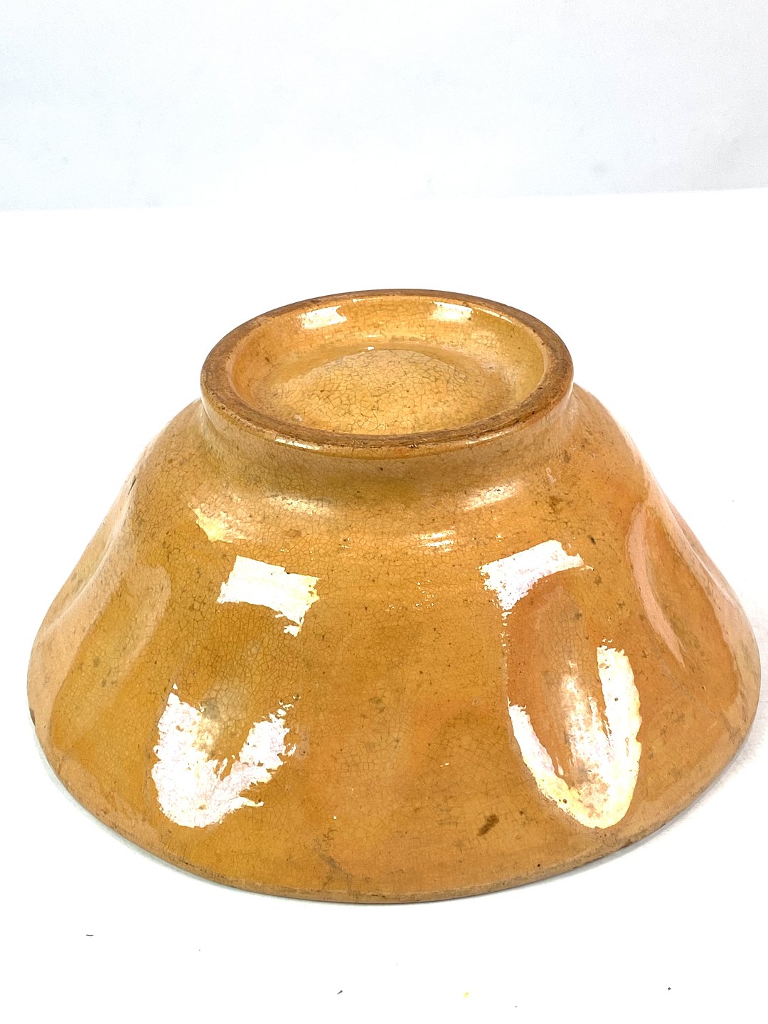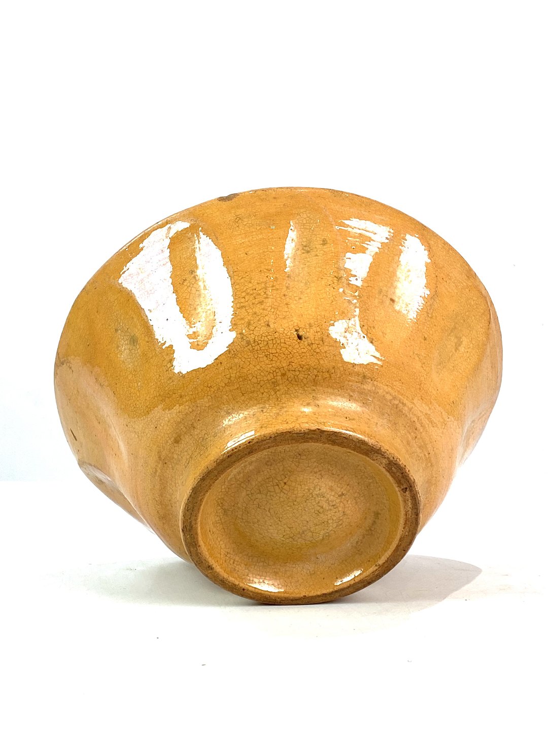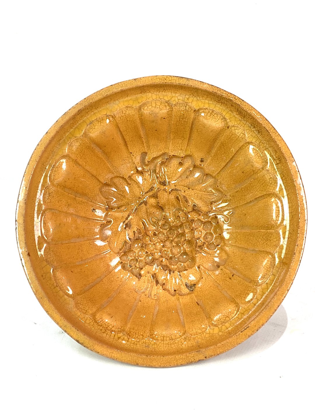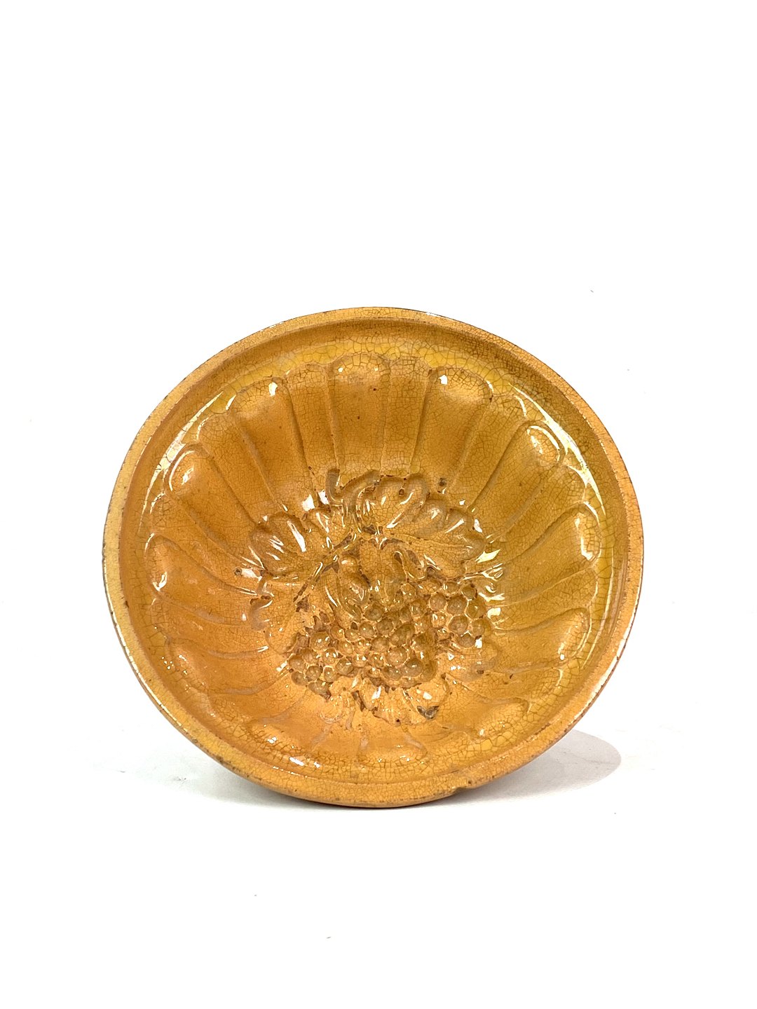 Ceramic pudding shaper with yellow glaze from around the 1930s. The bowl is in great vintage condition.