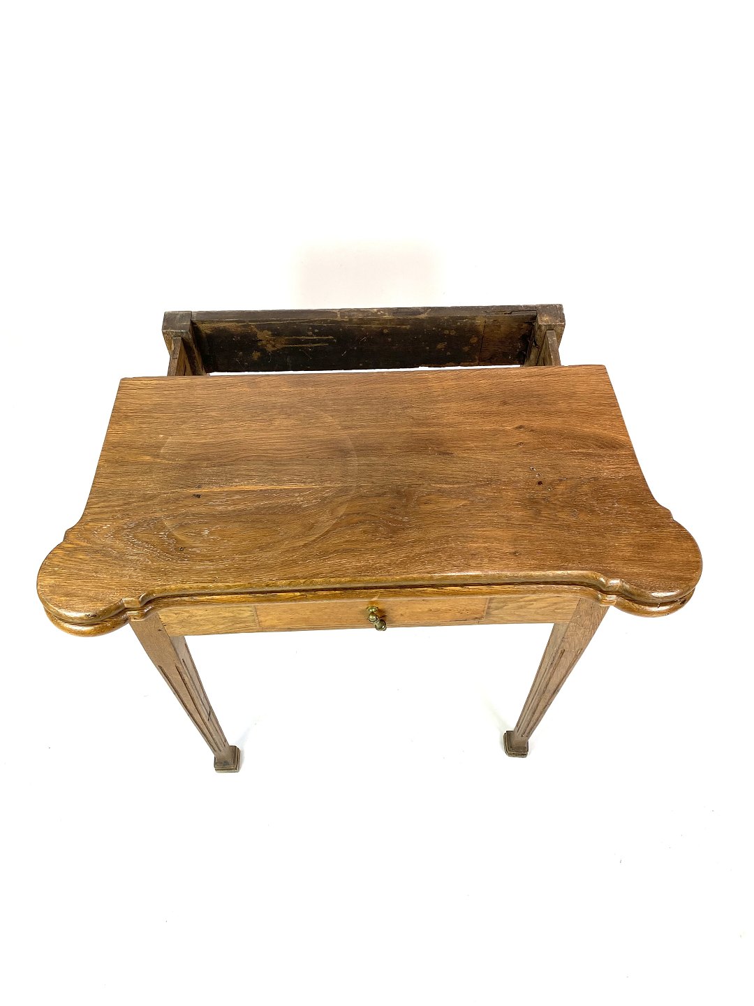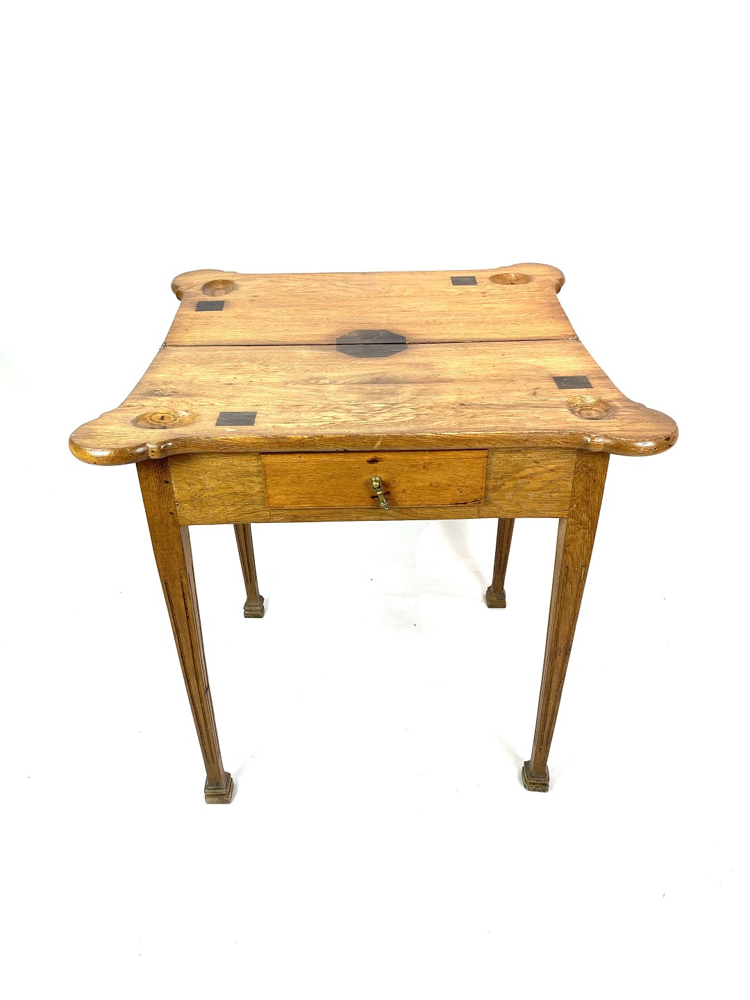 SolgtAntikt spillebord med mindre skuffe af egetræ fra omkring 1830'erne. Bordet står i meget fint brugt stand.