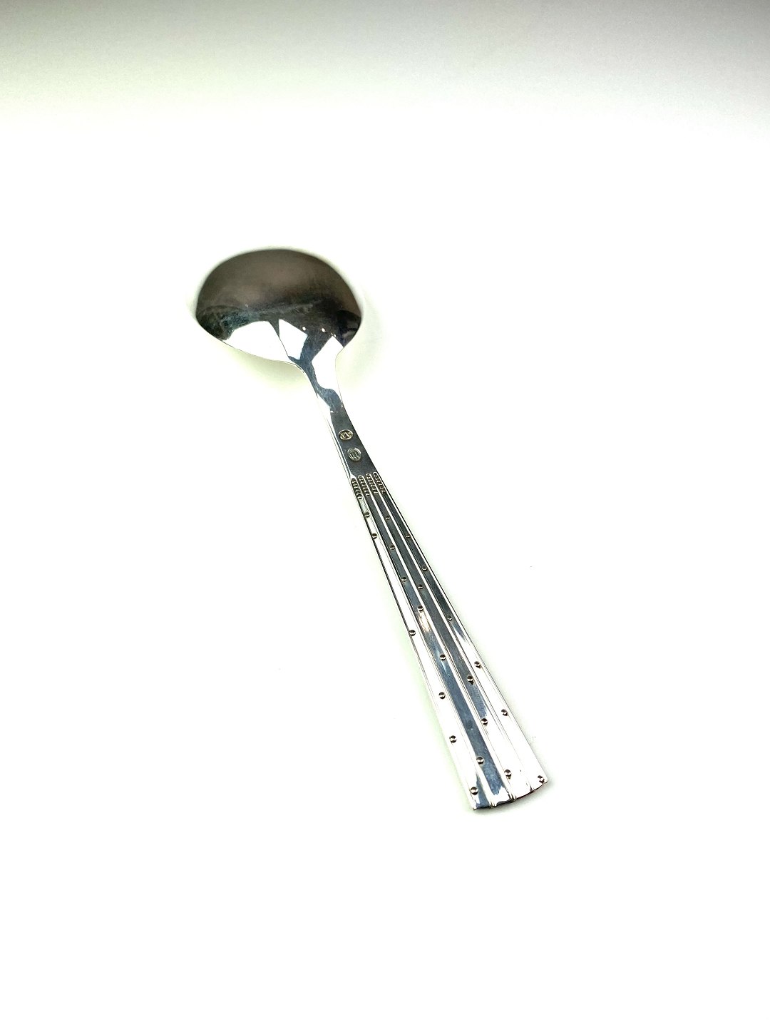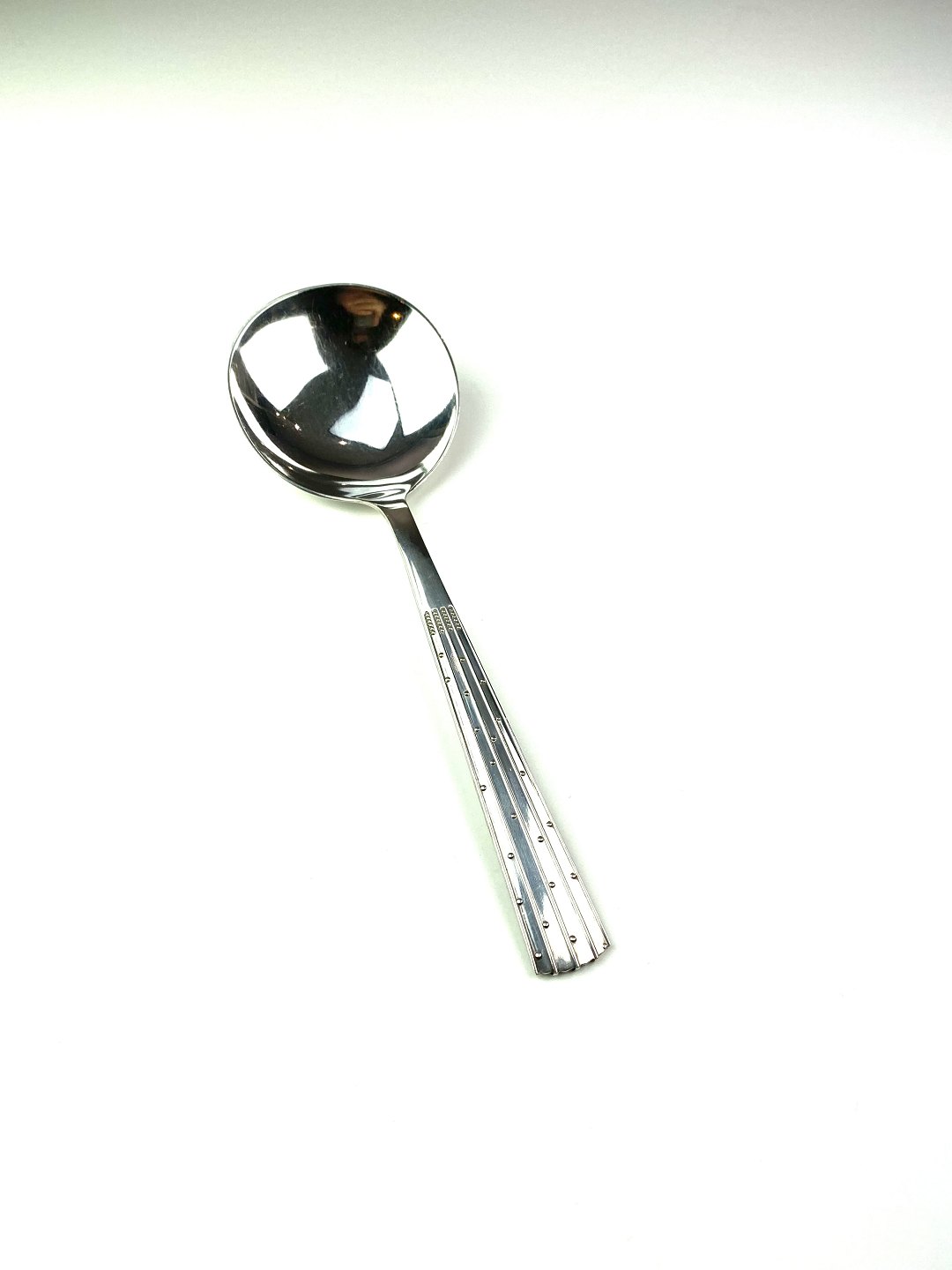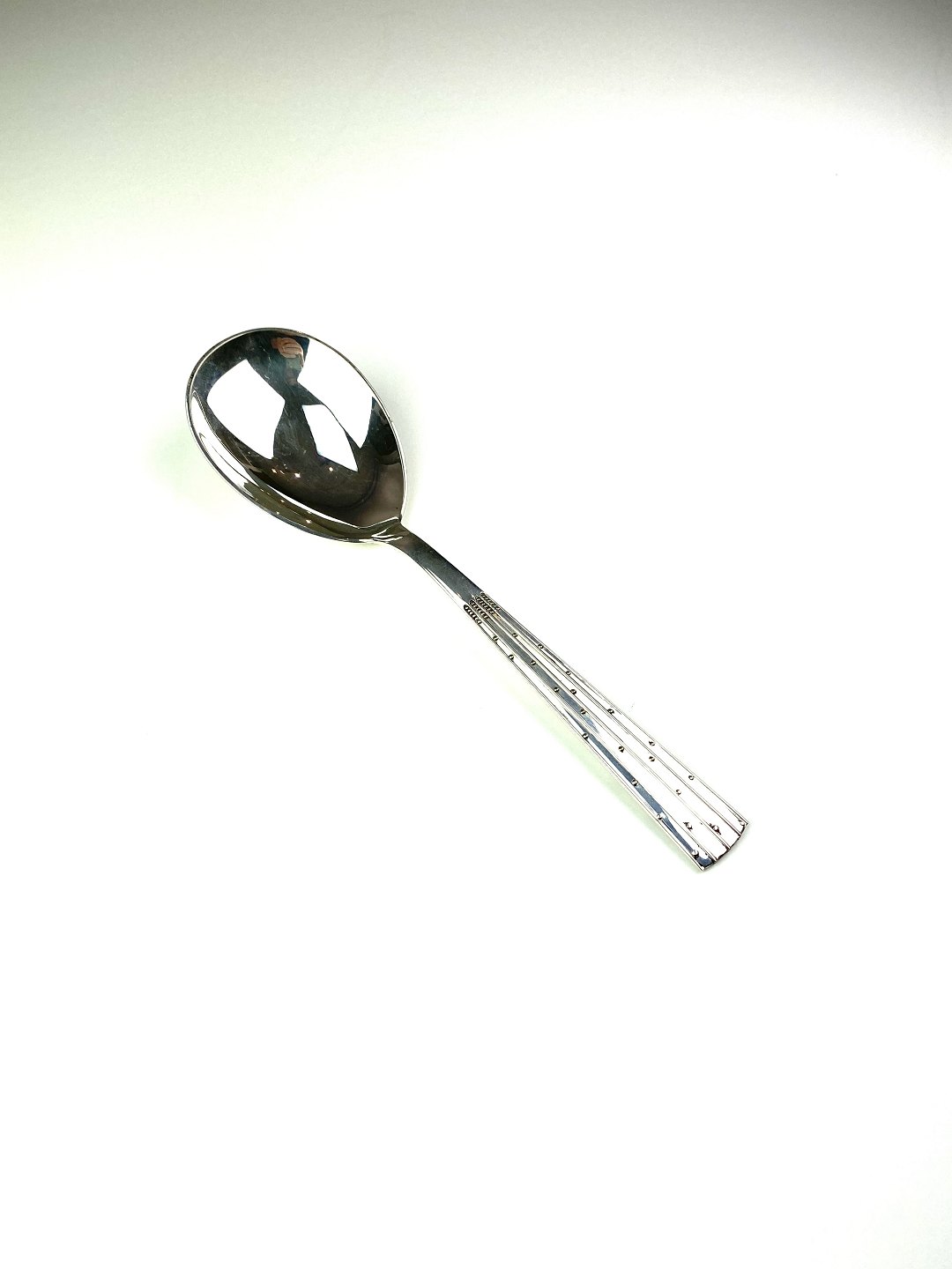Serving spoon in champagne with oval head designed by Jens Harald Quistgaard in 1947. 5000m2 exhibition