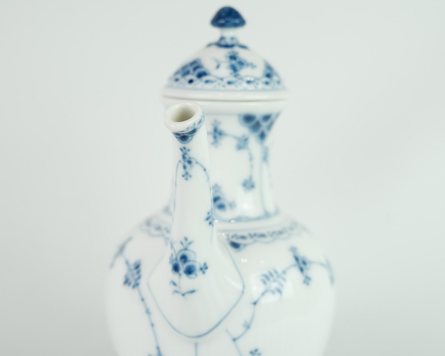 Royal Copenhagen kongelig musselmalet halvblonde kaffekande nr. 1/518. Står i meget fin brugt stand