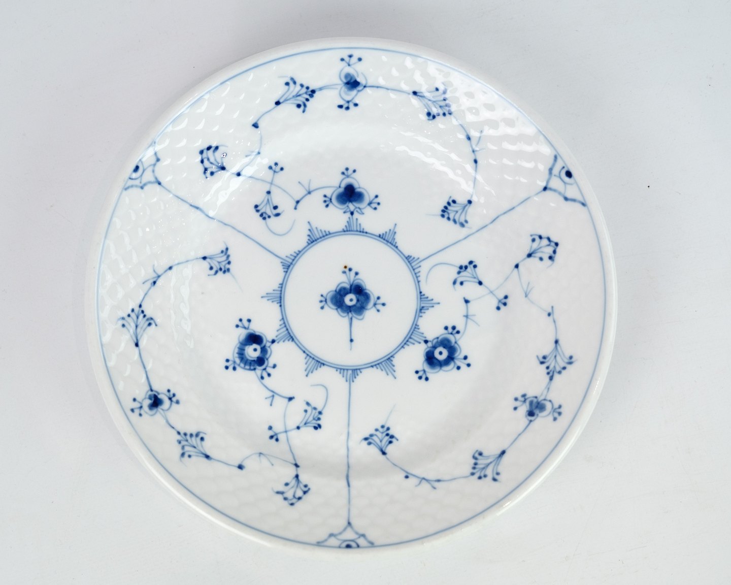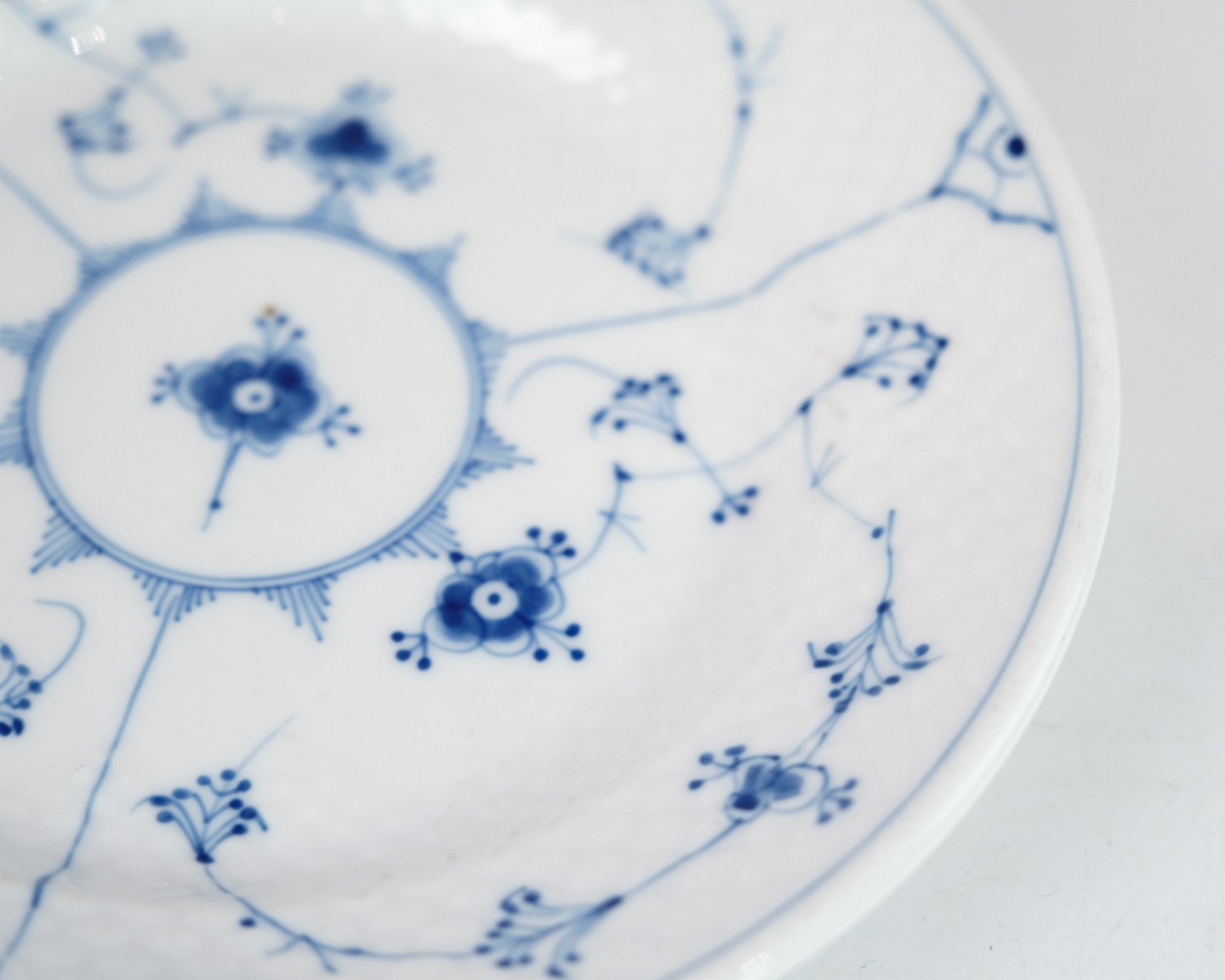 Bing og Grøndahl riflet musselmalet frokost tallerkner i kraftig udgave kaldet Hotel Porcelæn.