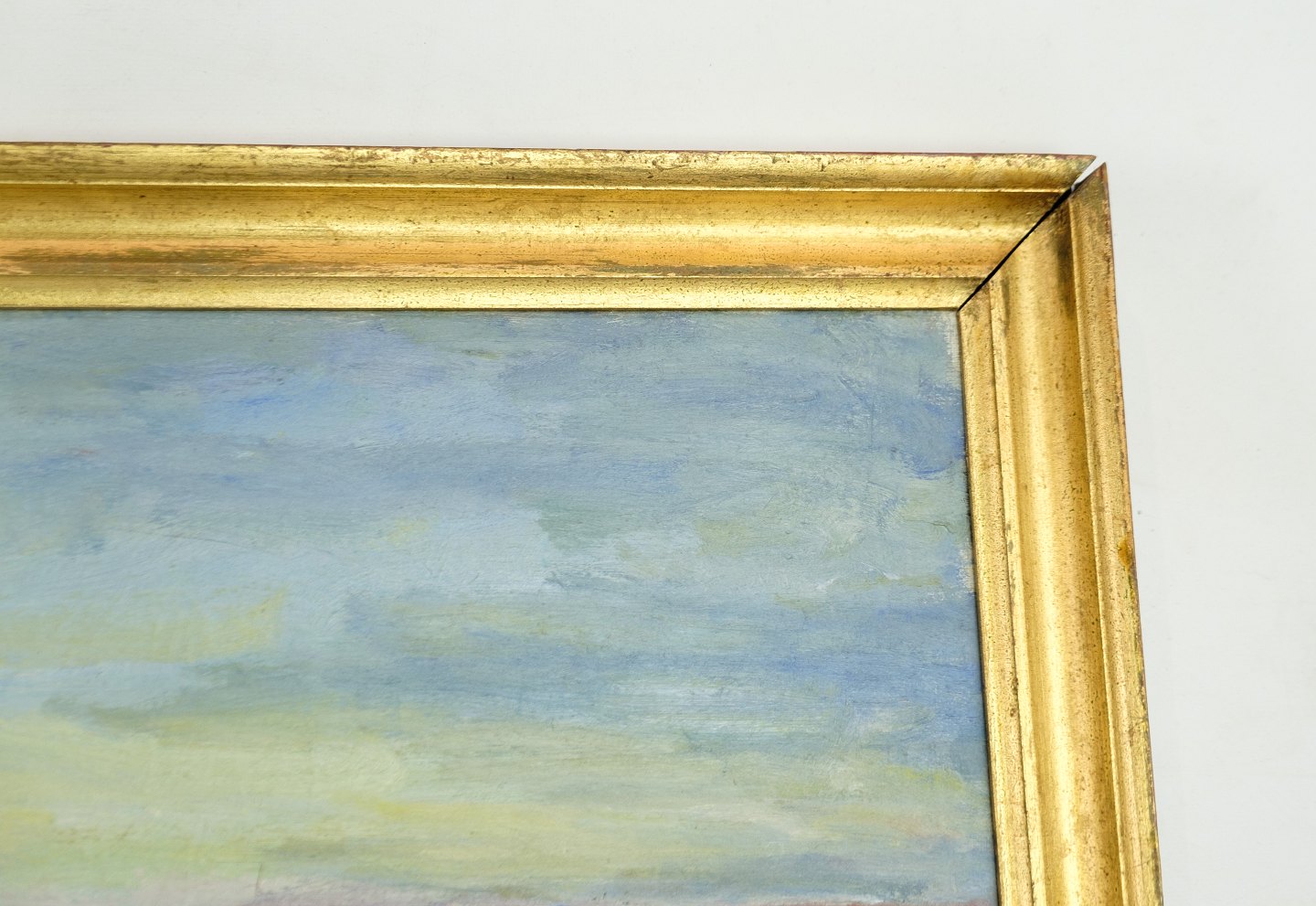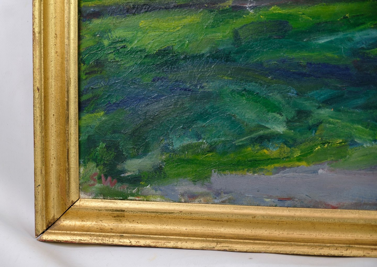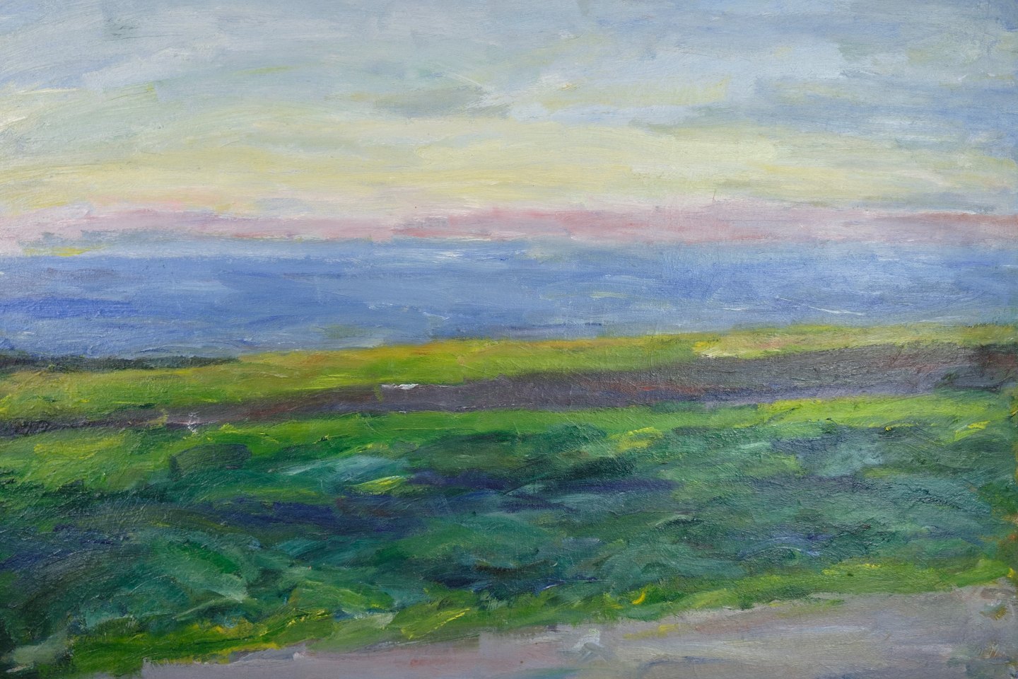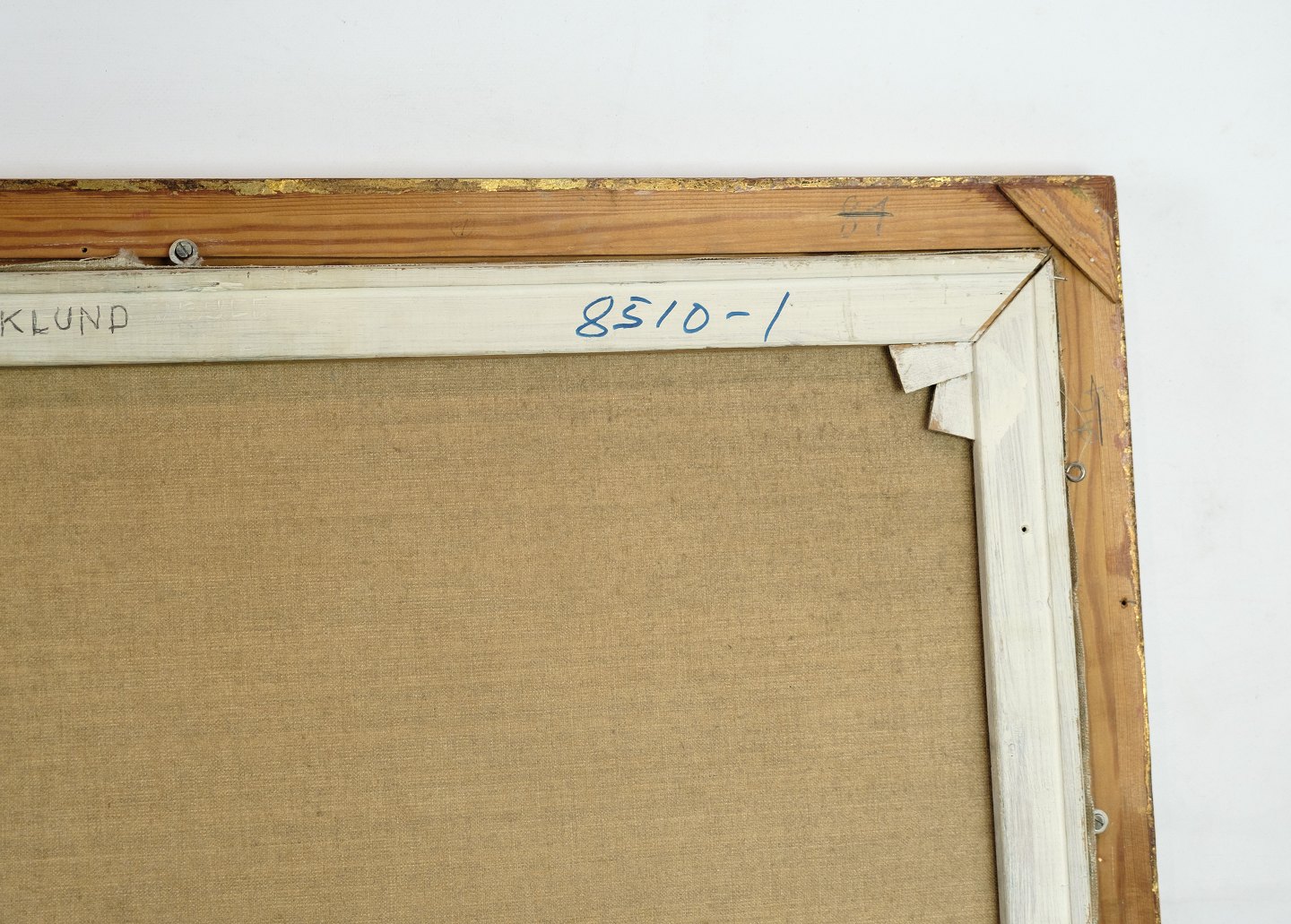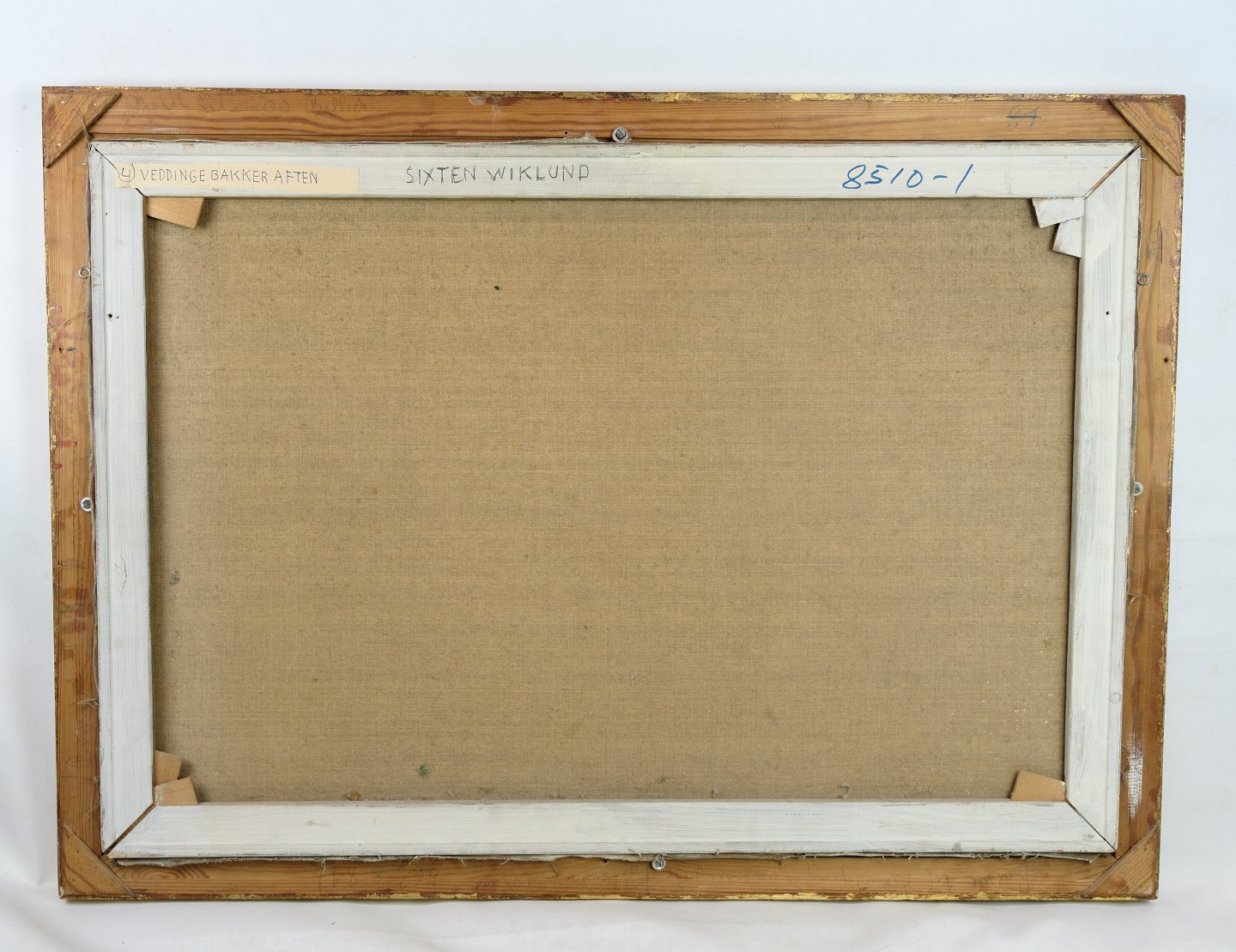 SoldOil painting on canvas with green and blue color shades painted by Sixten Wiklund (1907-1986) from the 1950s. The painting depicts Veddinge hills in the evening. The painting is in very fine condition without damage with original frame.