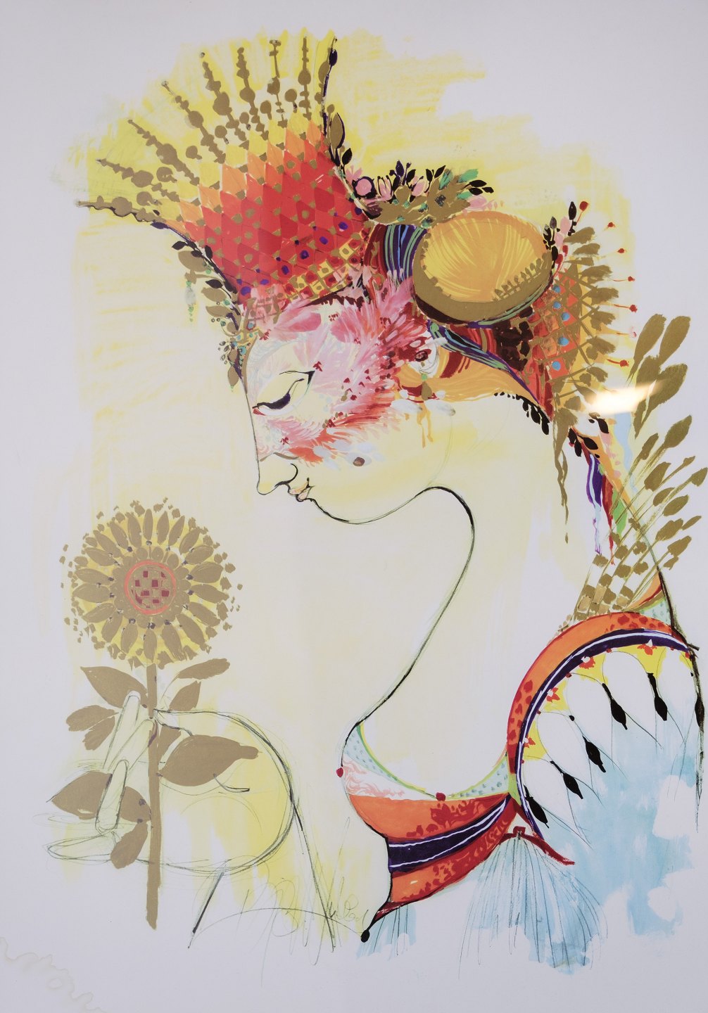 Serigrafisk plakat af Bjørn Wiinblad med motiv af kvinde fra omkring år 1970'erne.