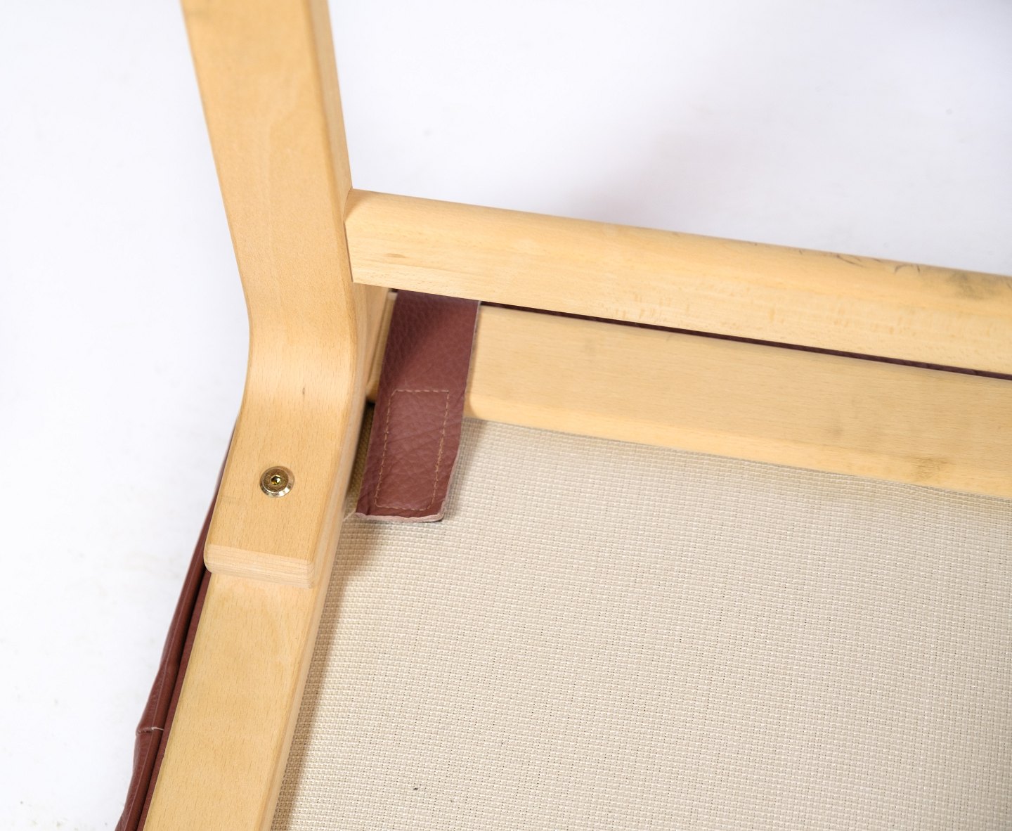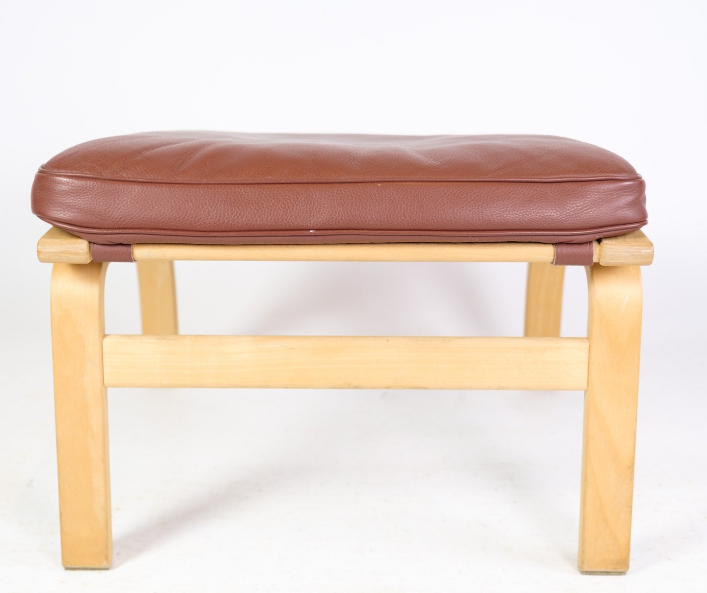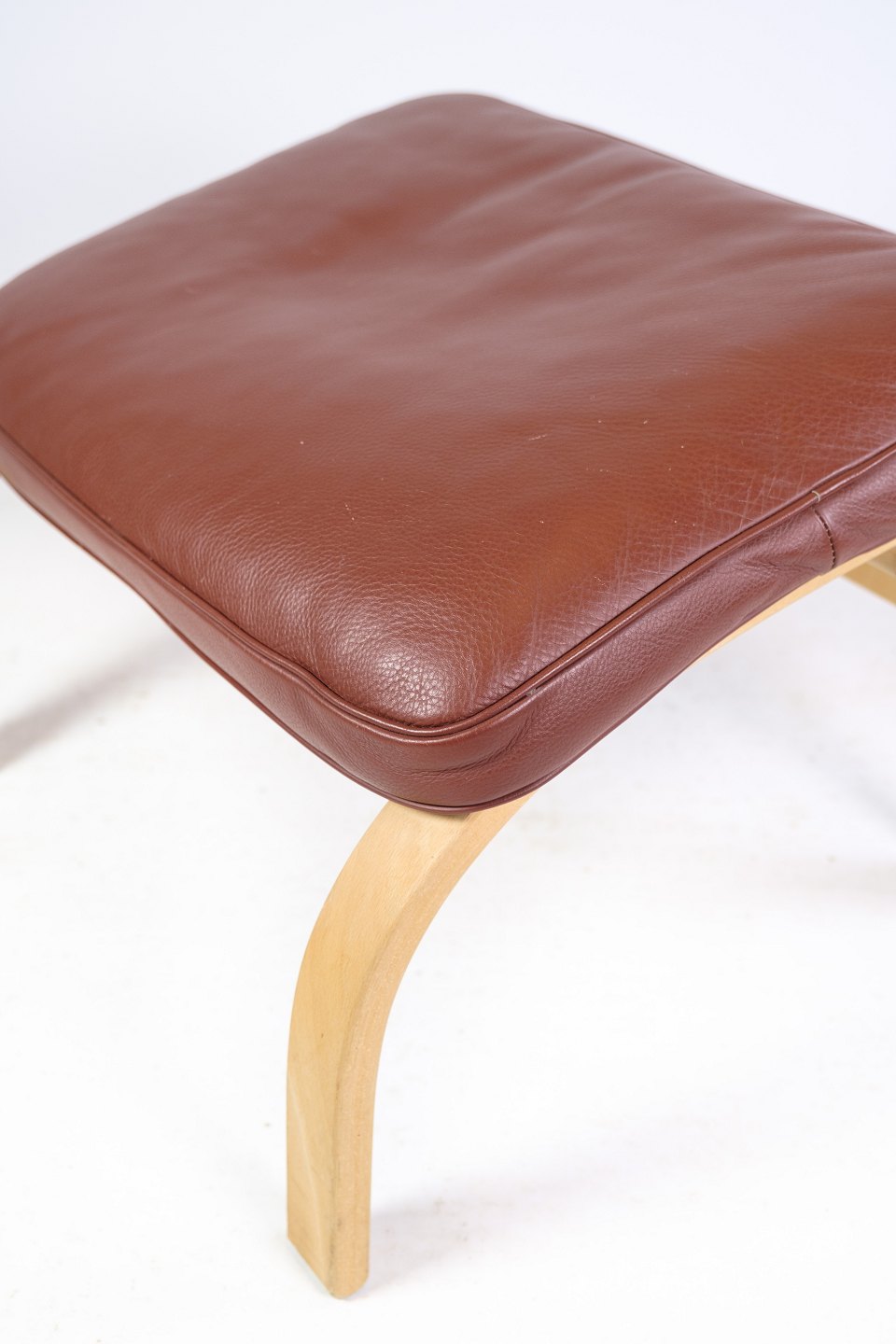 The brown leather cushion in cognac color adds warmth and comfort to the stool and helps to create a welcoming atmosphere. The leather is of high quality and will develop a beautiful patina over time that only adds to the beauty of the furniture.