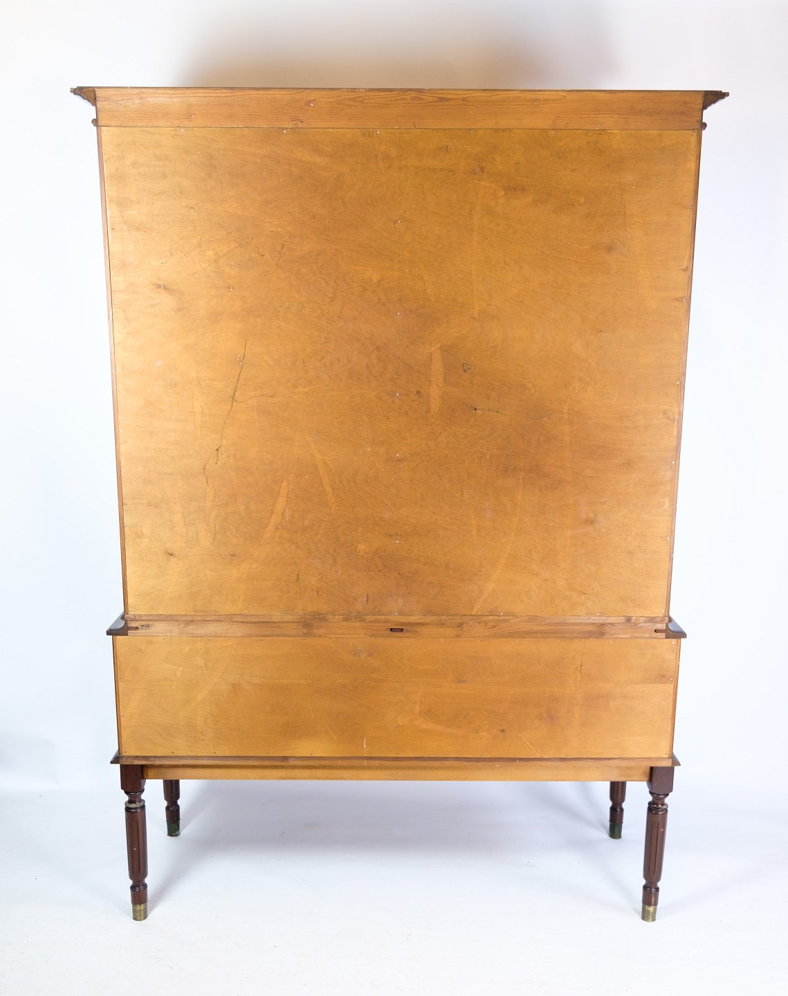 The display cabinet is designed with glass doors that provide a clear view of the contents inside, making it ideal for displaying your most prized items or collections. The classic design and quality materials make it a timeless piece of furniture that can grace any home with its refined aesthetics and mid-20th century charm.