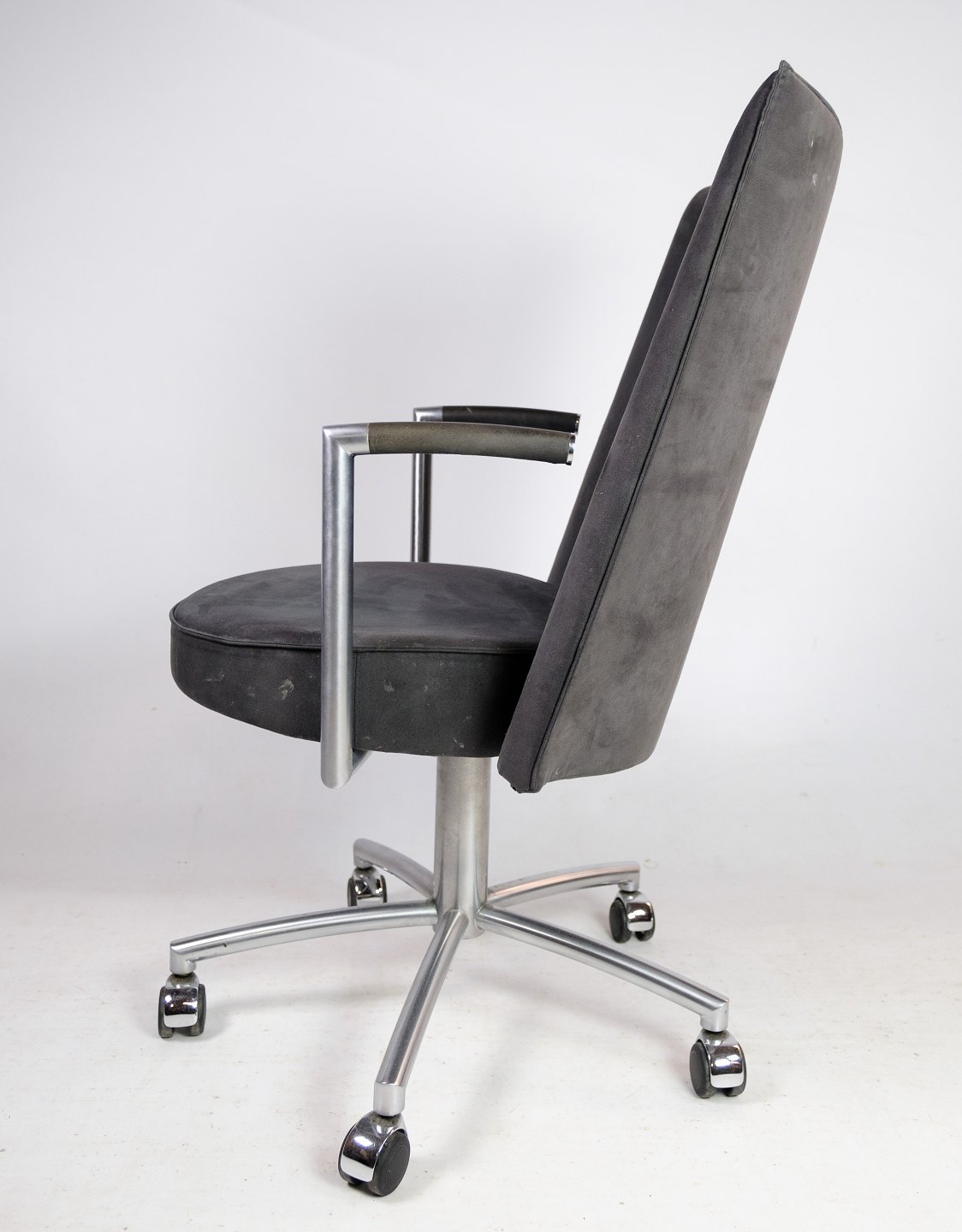 Lounge / Kontorstol, designet af Johannes Foersom og Peter Hiort-Lorenzen, fremstillet af Erik Jørgensen fra 1960'erne.. Stolen står med flot gråligt stof, som vil blive total renset inden køb.