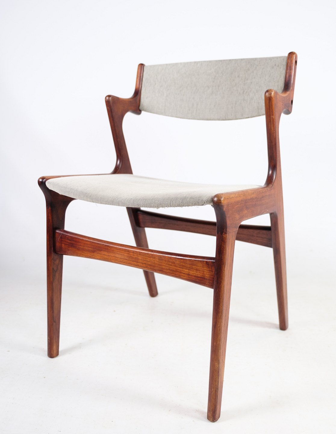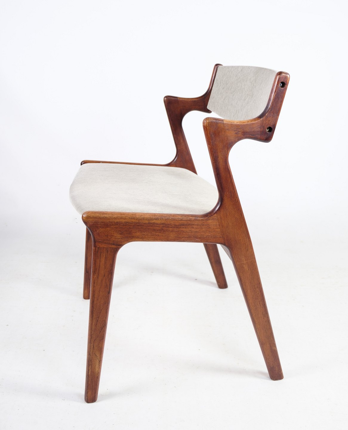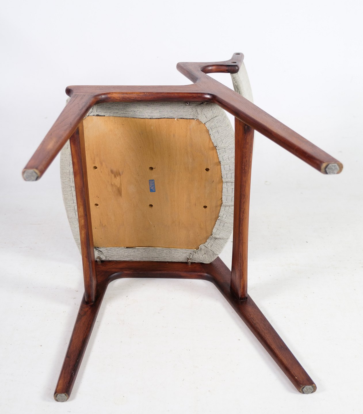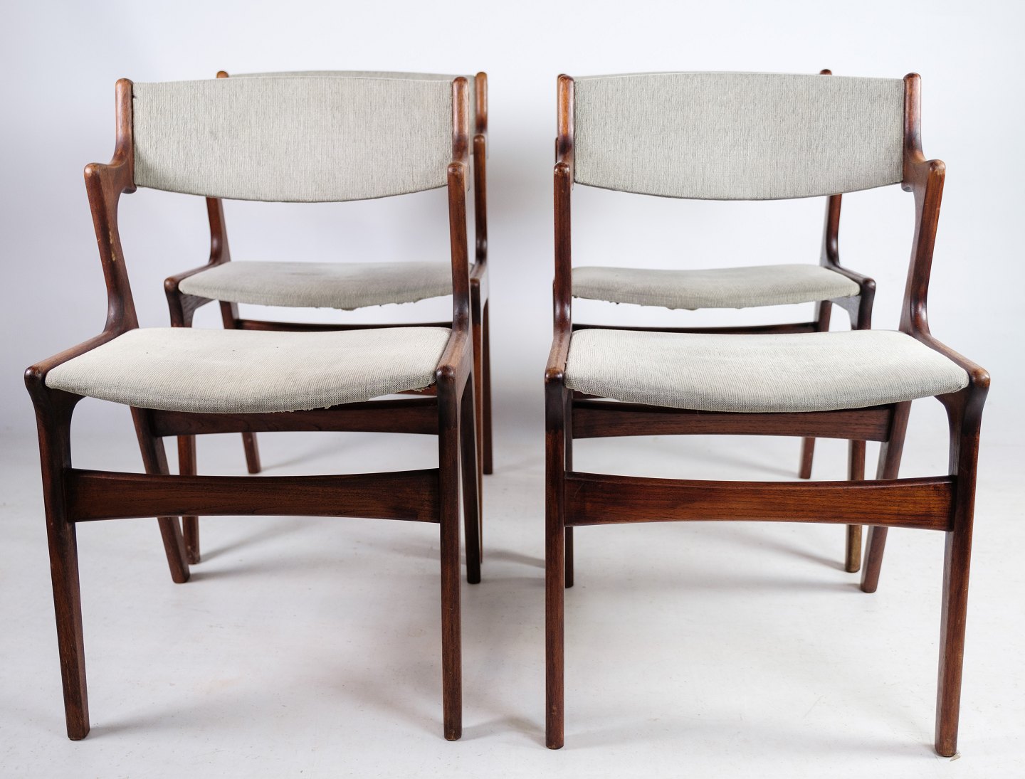 SolgtSæt af 4 armstole i teaktræ, tegnet af Nova møbler fra omkring 1960'erne. Stolene står med flot grå stof i meget fin stand.