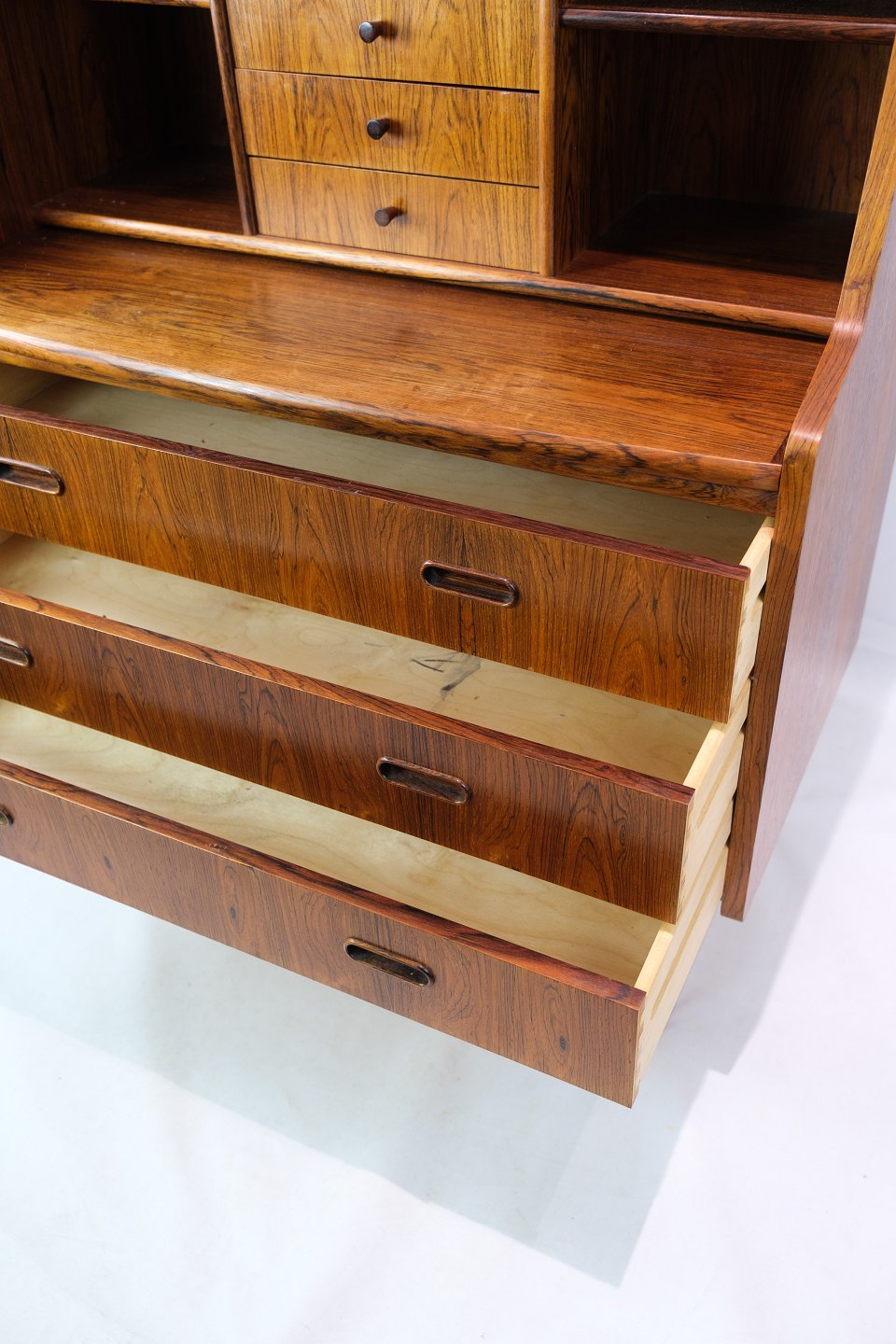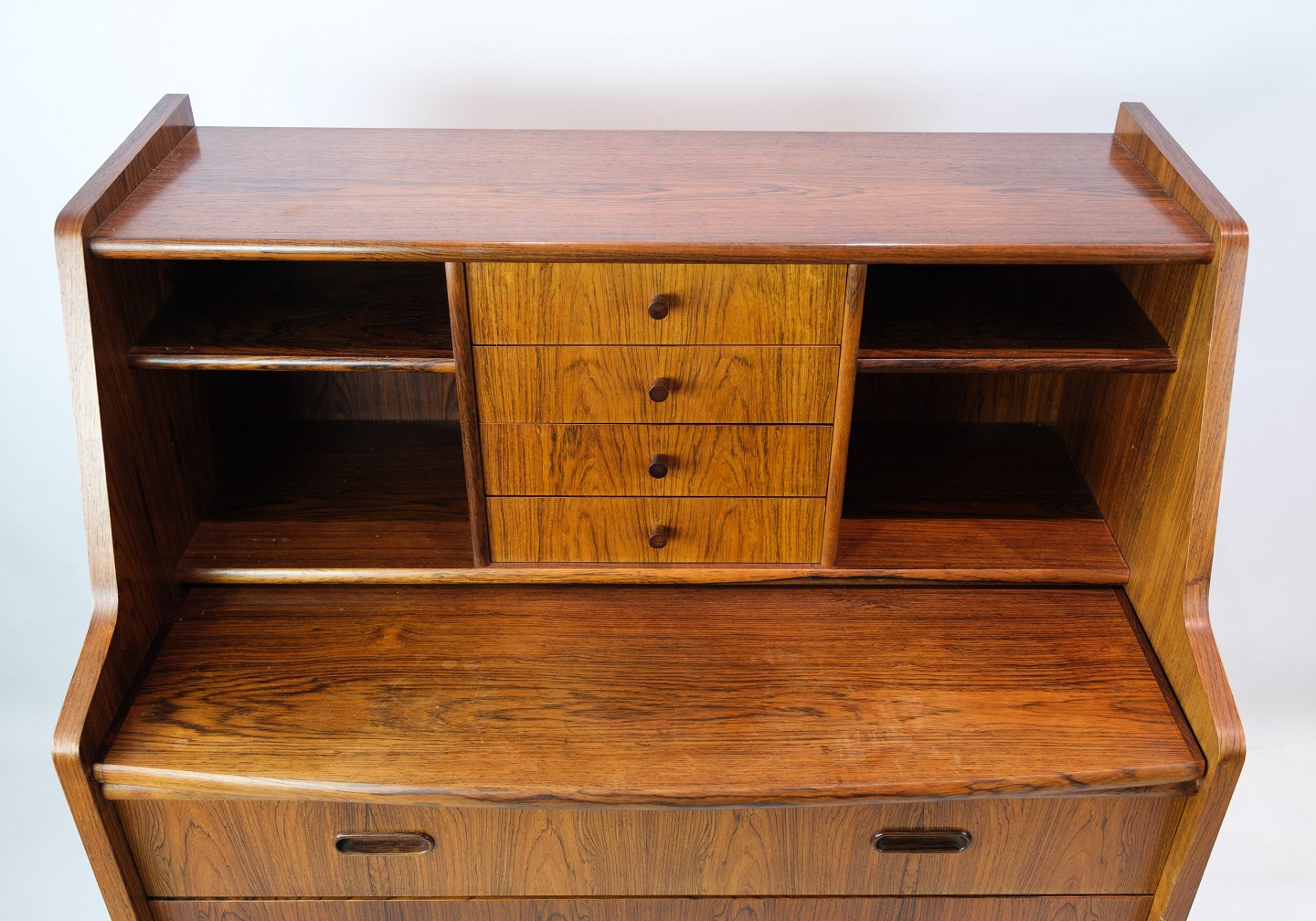 SoldSmall chatol in rosewood of Danish design from around the 1960s. Looks incredibly nice in the stand with 3 drawers at the bottom and 4 drawers at the top with shelves on each side. In addition to this, the chartolette has a pull-out.