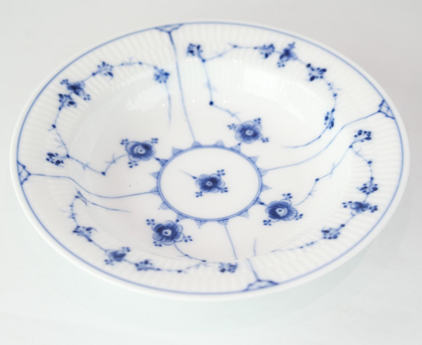 Royal Copenhagen musselmalet riflet dyb tallerken fra den kongelig porcelænsfabrik.