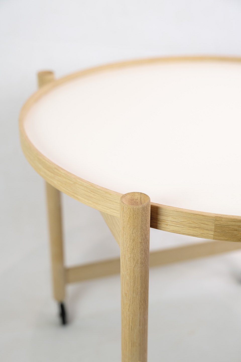 Tray table, designed by Hans Bølling of the wood type oak with white laminate tray.