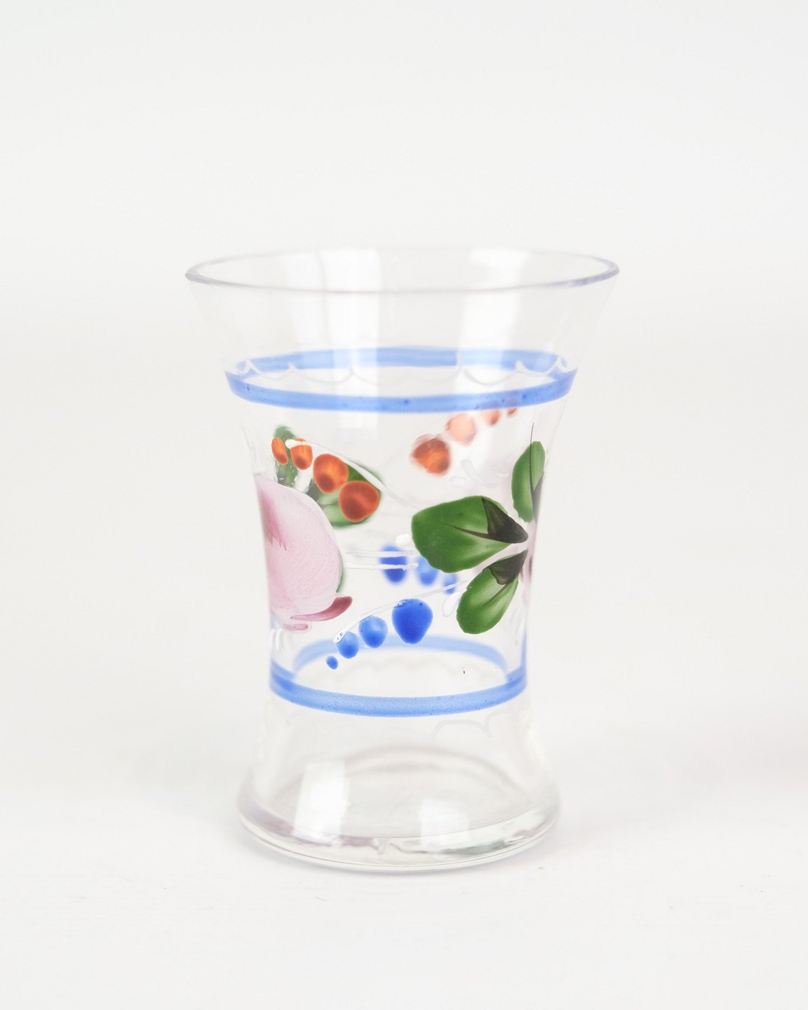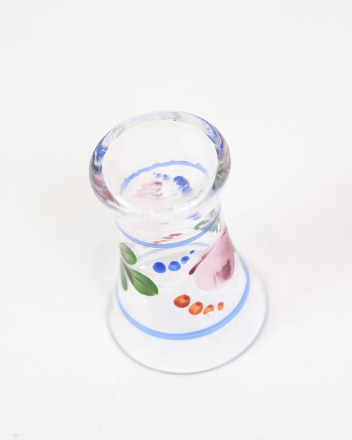 Sæt af 6 snapseglas med håndmalet blomster dekoration fra omkring 1930'erne. Sælges samlet for 600 for alle 6.