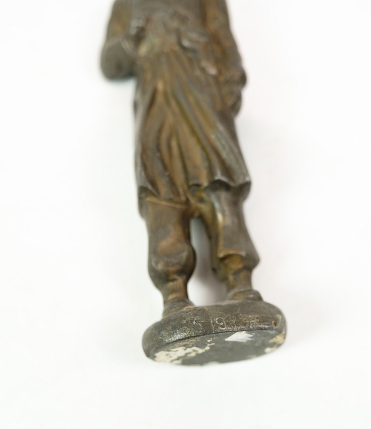 Soldat figur af patineret metal fra omkring 1940'erne. Figuren har også en ukendt signatur.