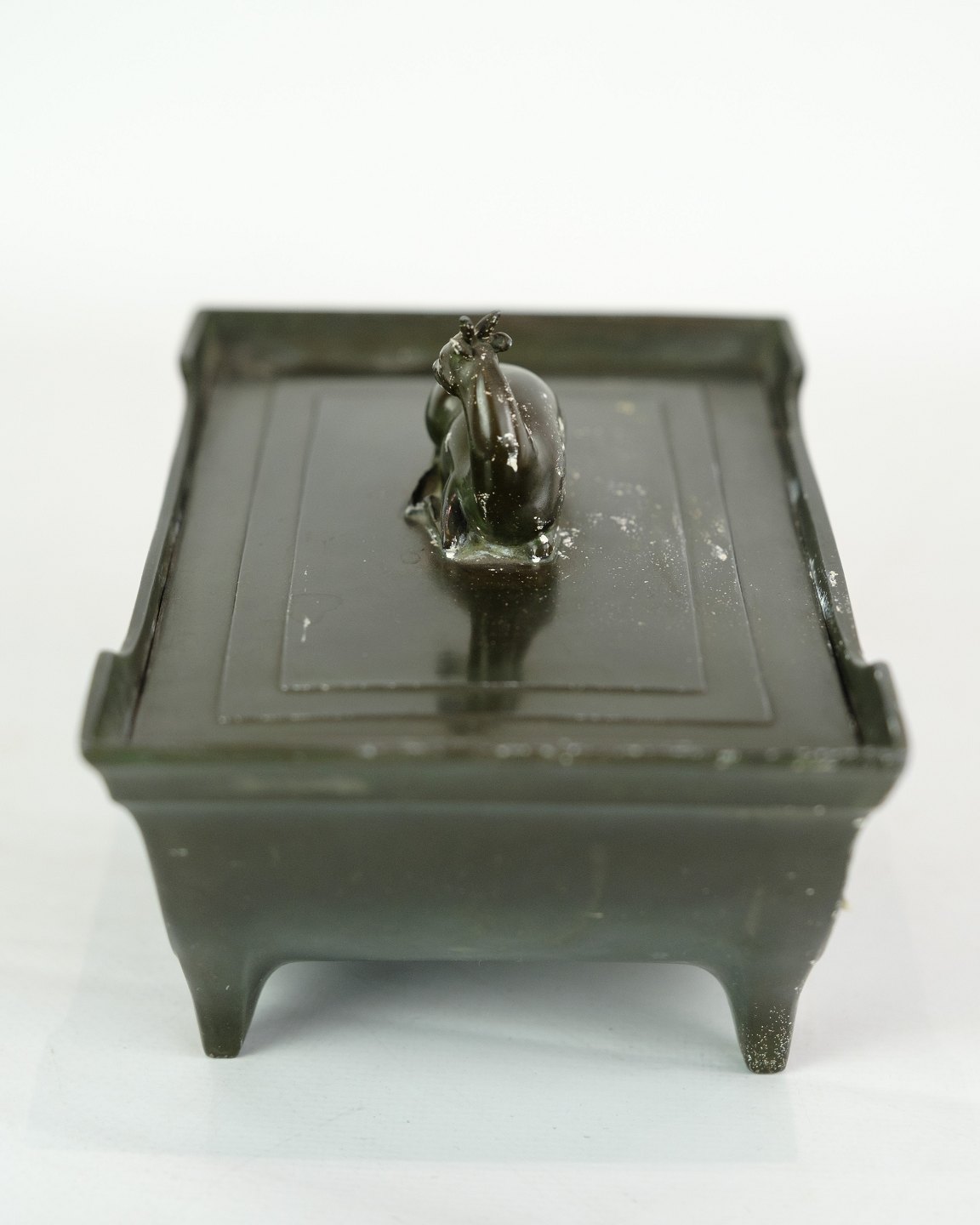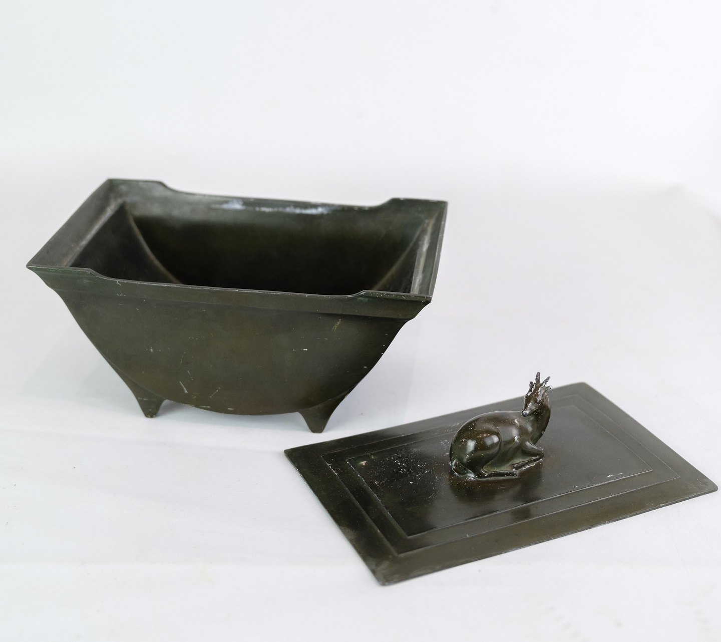 Tin box, designed by Just Andersen with decoration of deer early production stamped from around the 1940s.