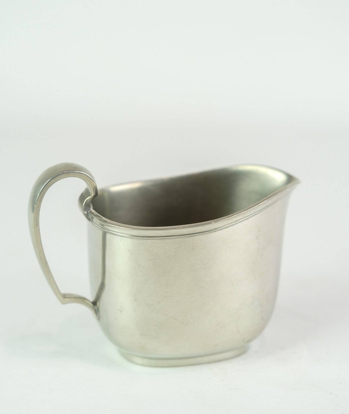 The Just Andersen cream jug in tin is a beautiful and practical addition to any coffee or tea table setting. The jug is made of durable pewter material, which makes it easy to clean and maintain. The pitcher's elegant design will impress guests while still being practical enough for everyday use. A must-have for fans of retro or vintage style