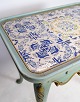 Painted rococo shaped tile table decorated with various motifs. The table is from the 1780s and is in beautiful antique condition.