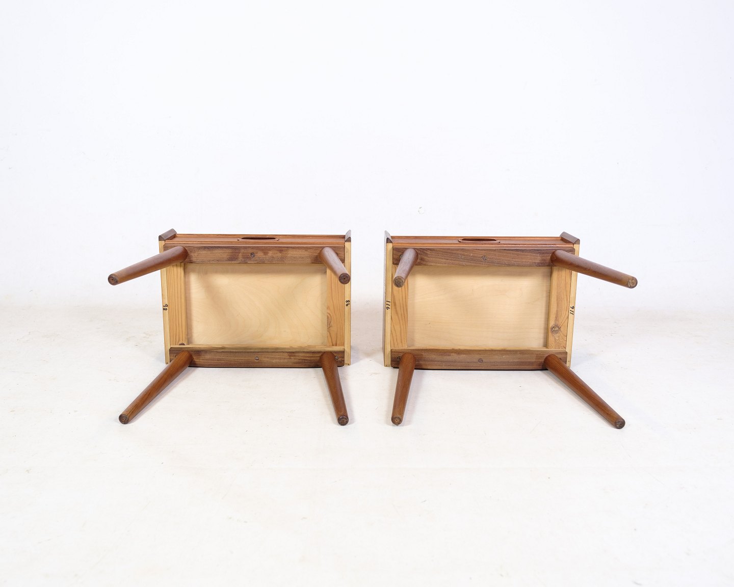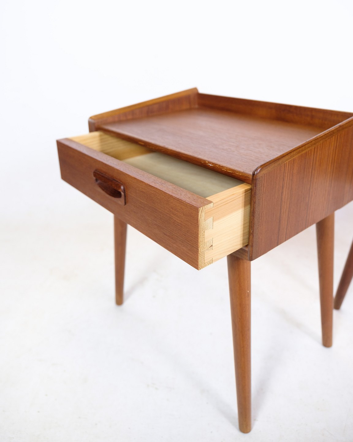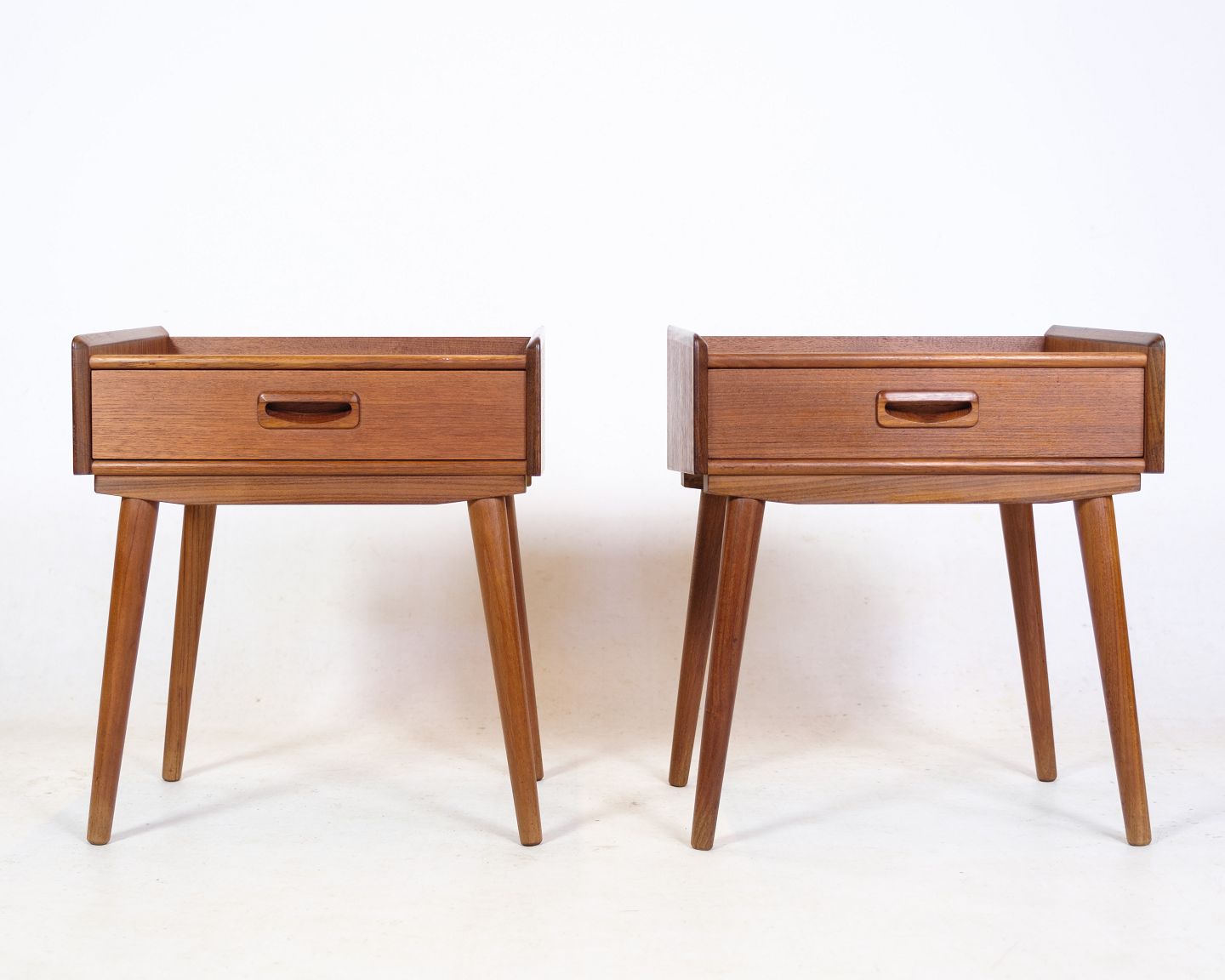 SolgtEt sæt af 2 natborde af dansk design i teaktræ med skuffe med håndtag fra omkring 1960'erne.
