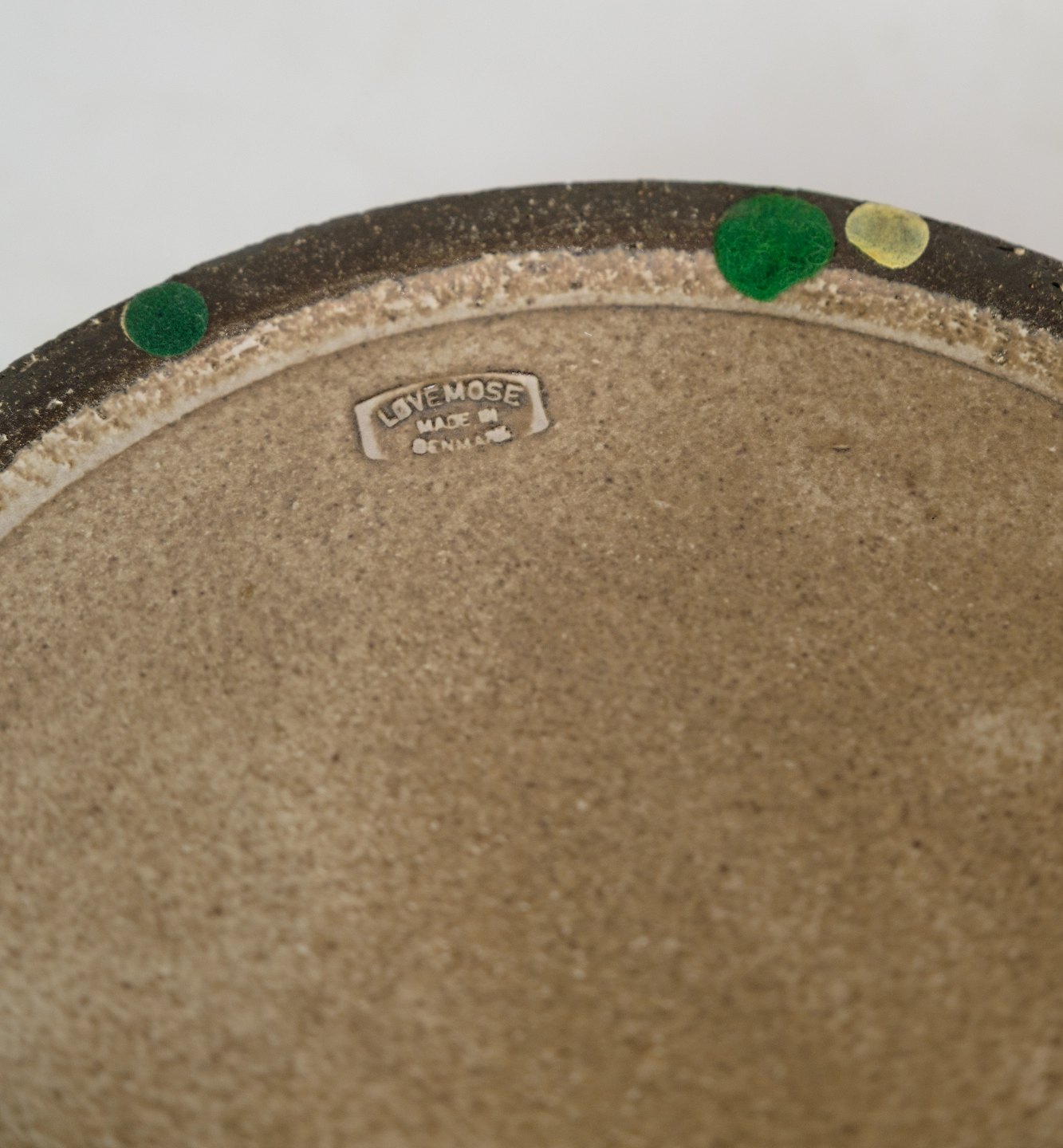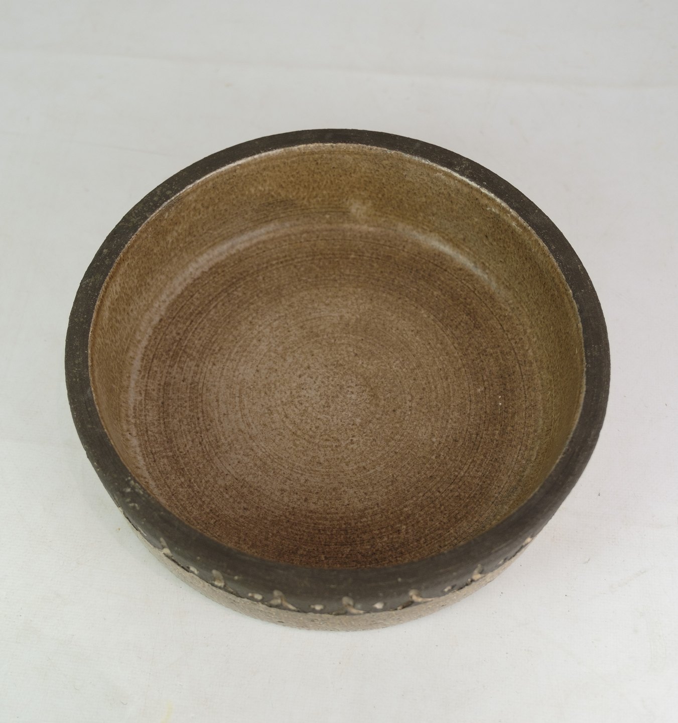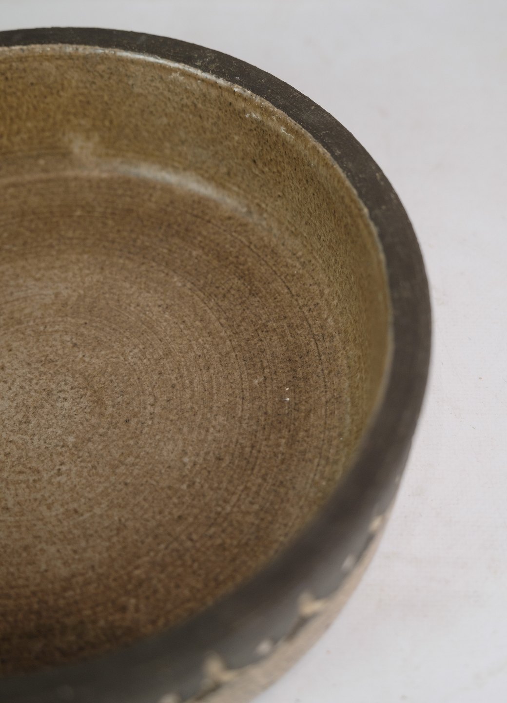 Dark brown ceramic bowl of lion moss ceramics from around the 1960s.