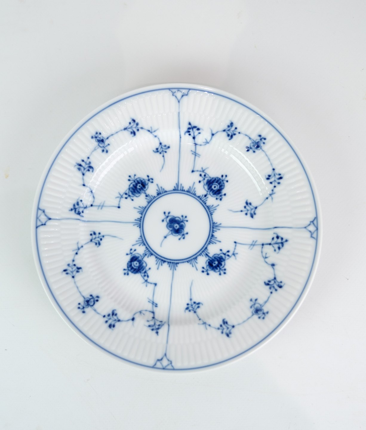 SolgtRoyal Copenhagen Musselmalet Riflet frokosttallerken er en smuk og klassisk del af den ikoniske Musselmalet Riflet-serie, der har prydet bordene i generationer, netop denne type tallerken er af ældre dato.
