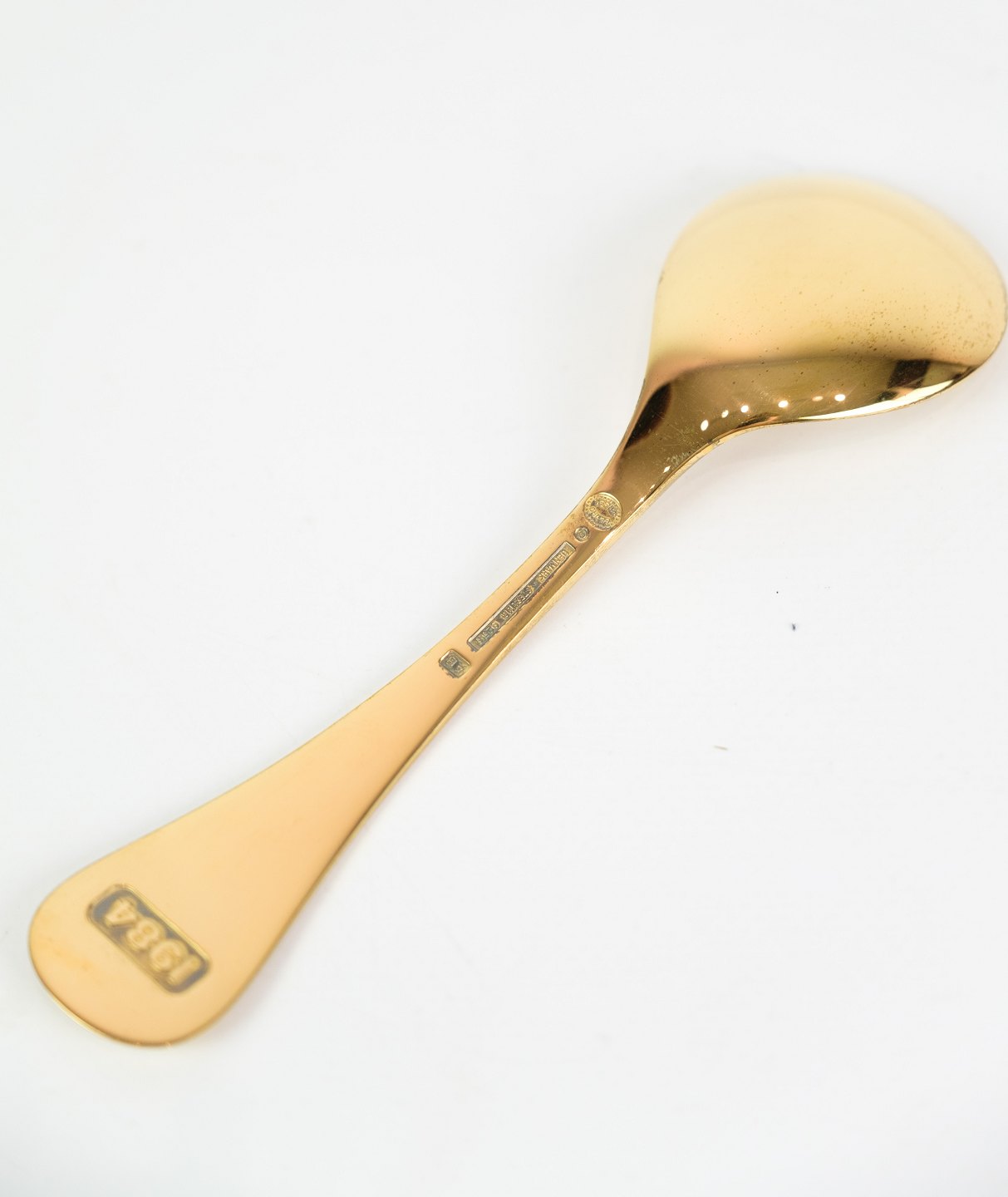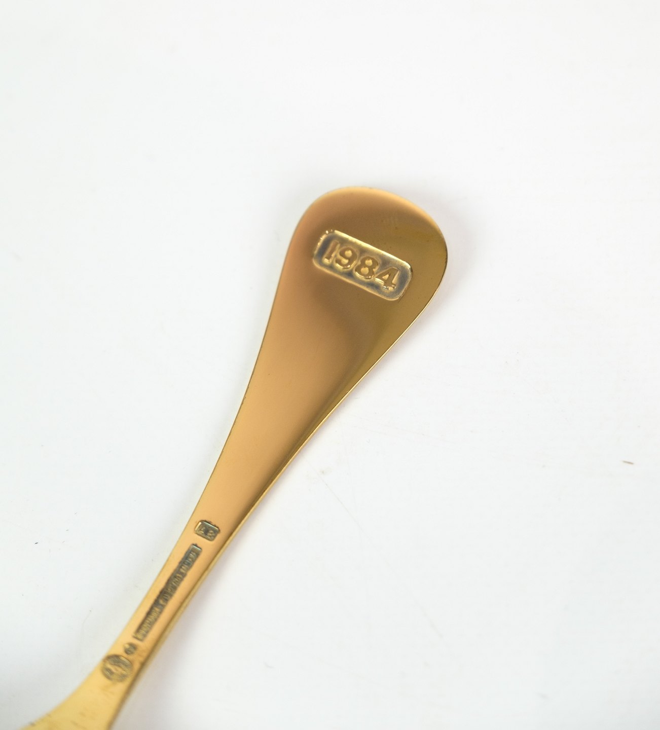 Georg Jensen annual spoon from year 1984 with the motif Crow's foot in gilded sterling silver.