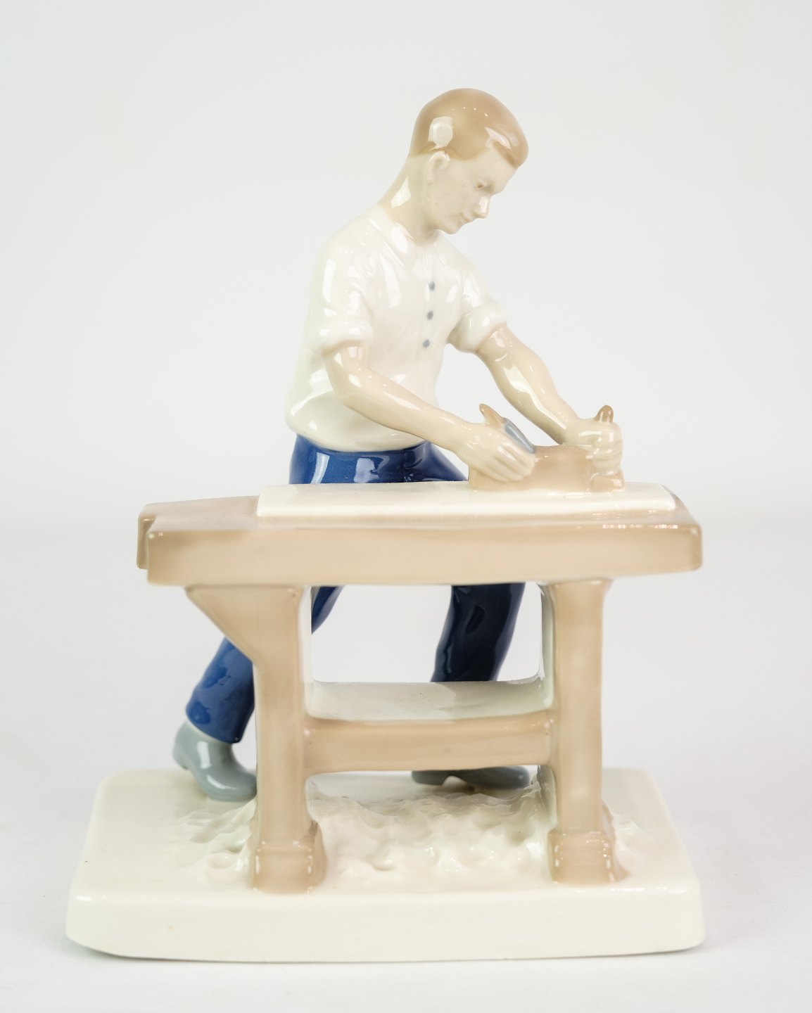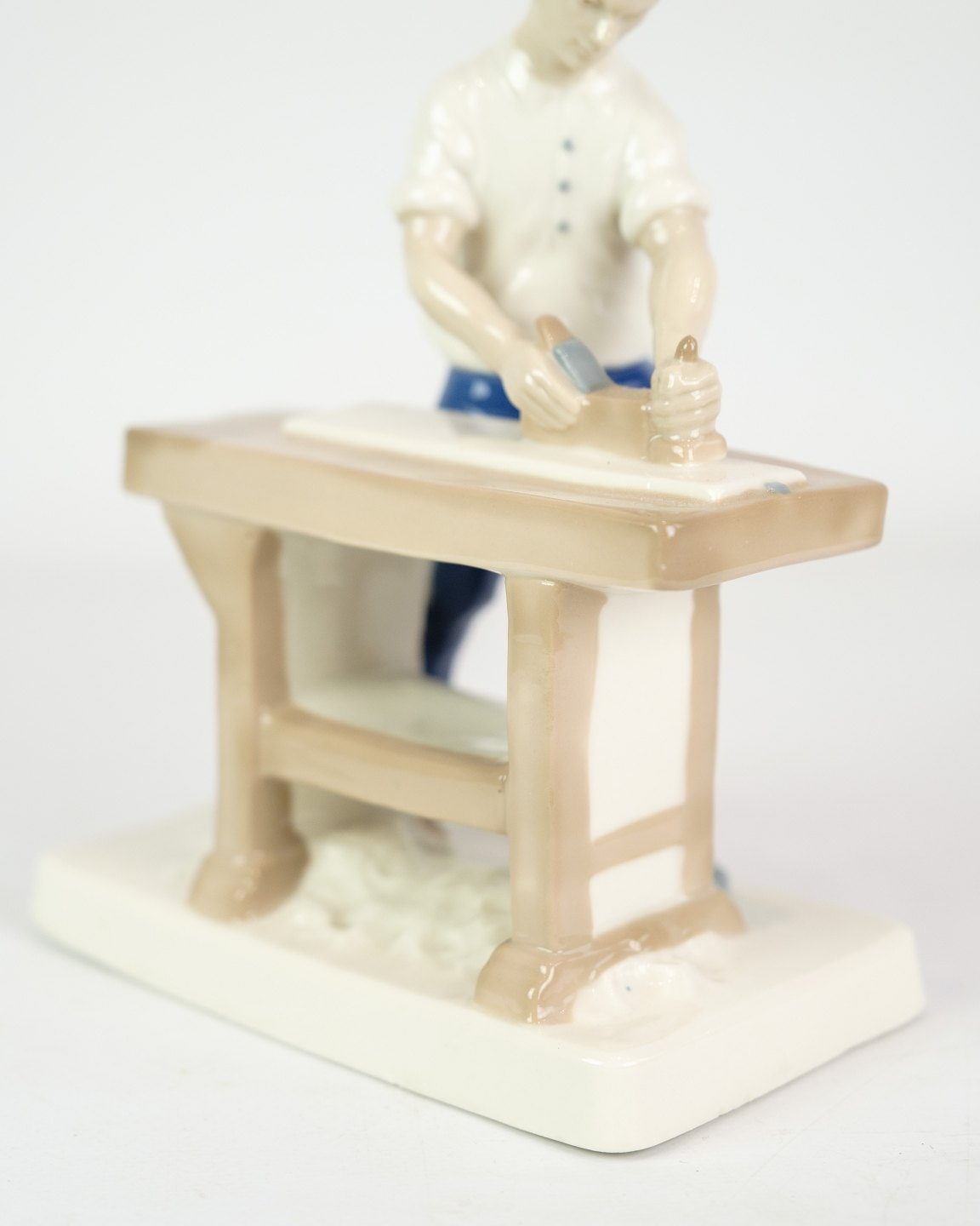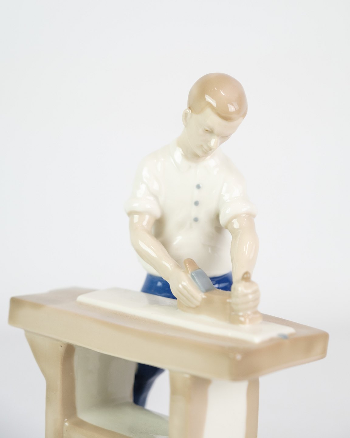 Håndmalet figur af Porcelæn med motiv af mand ved en høvlebænk nr. 21816