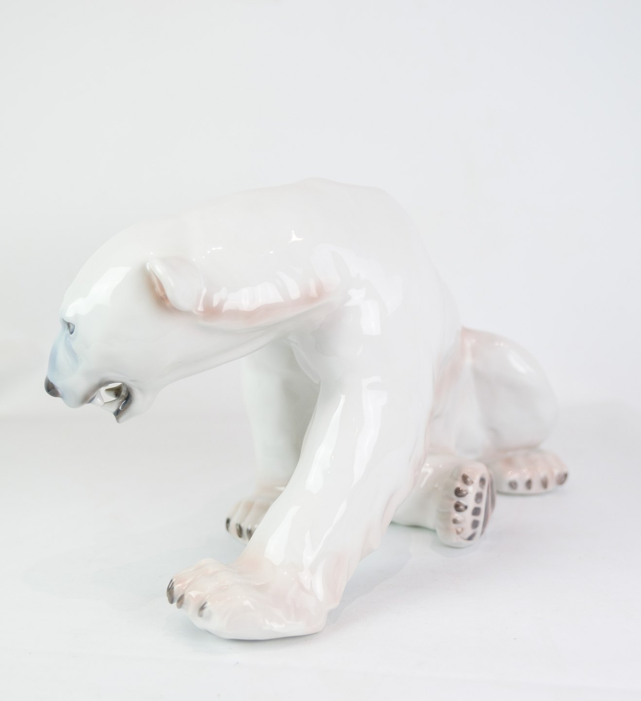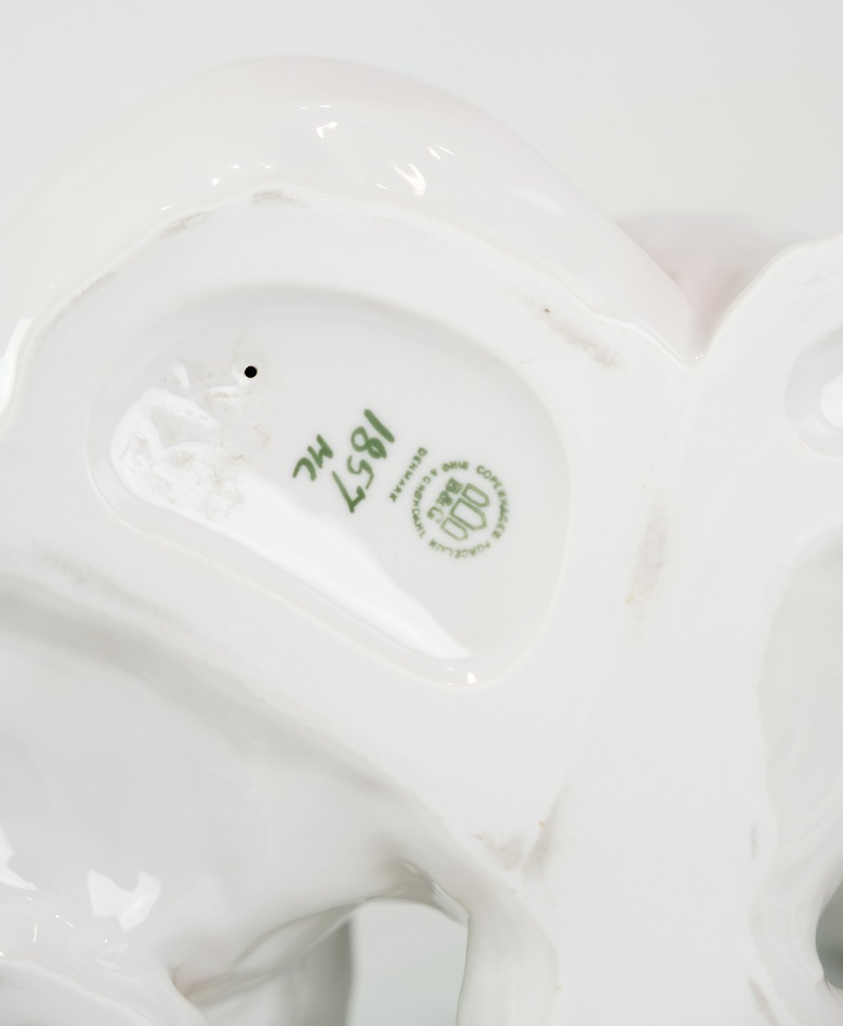 Denne isbjørnfigur er kendt for sin fremragende kvalitet og realistiske detaljer, der fanger essensen af denne majestætiske rovfugl. Med Knud Kyhns omhyggelige opmærksomhed på detaljer og kunsthåndværk er denne figur et symbol på dansk keramiktradition på sit bedste.