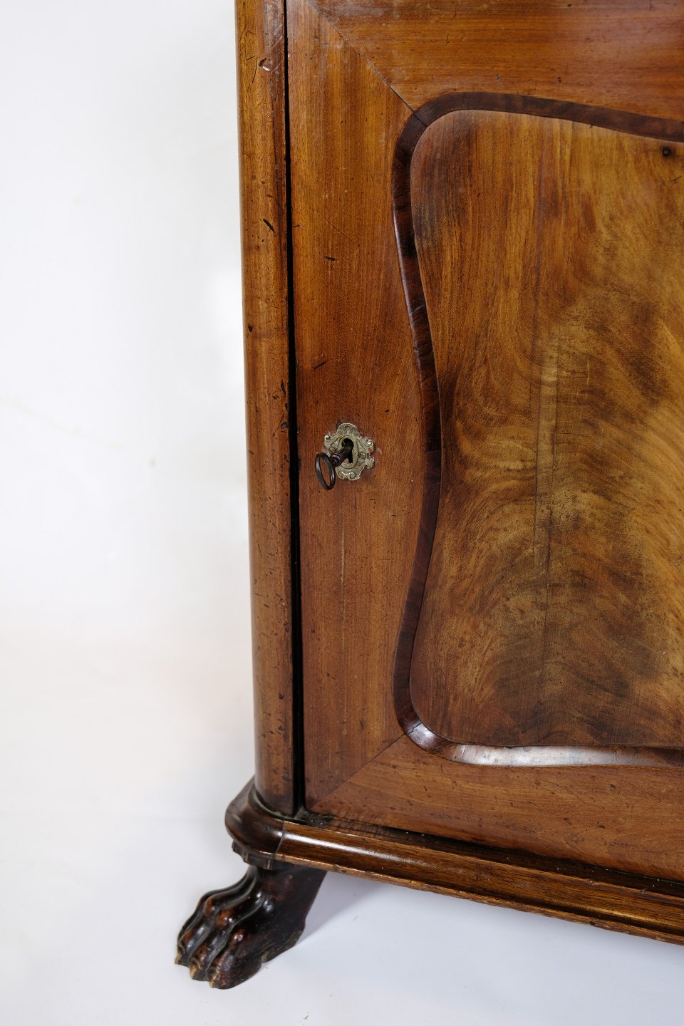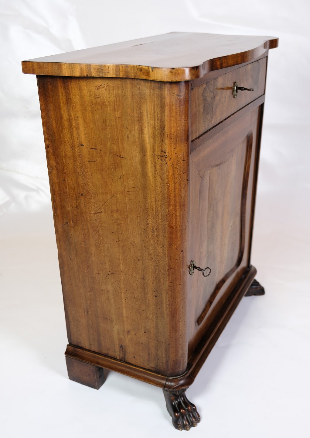 SolgtKonsol Møbel af mahogni med indlagt valnød og med løve fødder og skuffe fremstillet omkring 1880'erne.