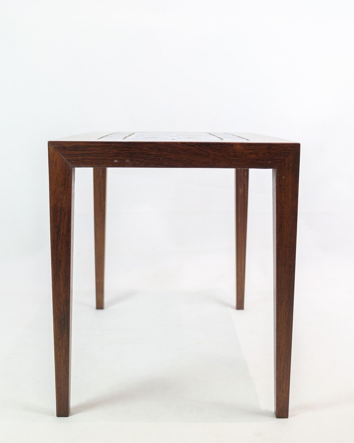 Set of side tables, model 34A, in rosewood designed by Severin Hansen with tiles from the Royal Porcelain Factory, produced around the 1960s. These side tables represent a beautiful combination of quality materials and Danish design heritage. The rosewood gives a warm and luxurious feel, while the tiles from the Royal Porcelain Factory add a touch of elegance. This piece of furniture is not only functional, but also a period piece of art that expresses the design of that era. A unique collector's item for those who appreciate vintage furniture art and Danish design history.