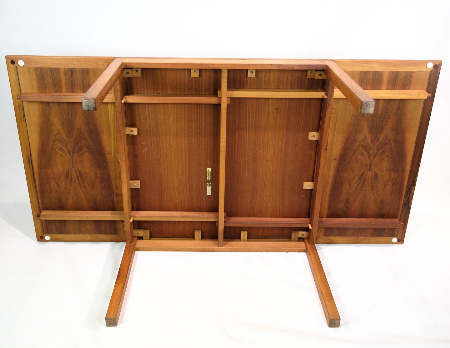 The table has flaps that can be folded up or down as needed, making it a practical and versatile piece of furniture. The mahogany wood is beautiful and gives a warm and elegant atmosphere to the room.