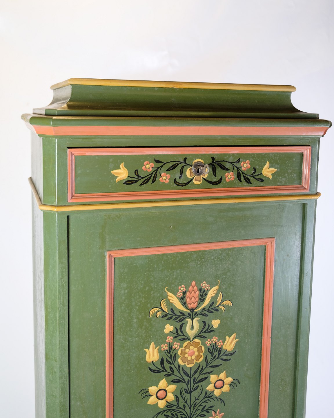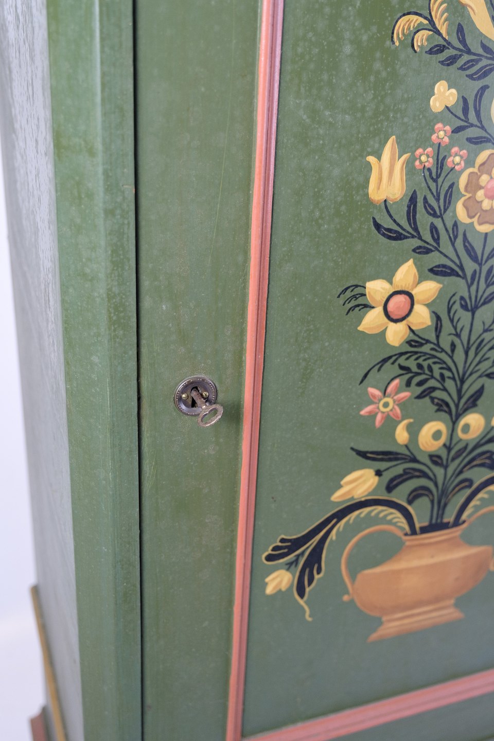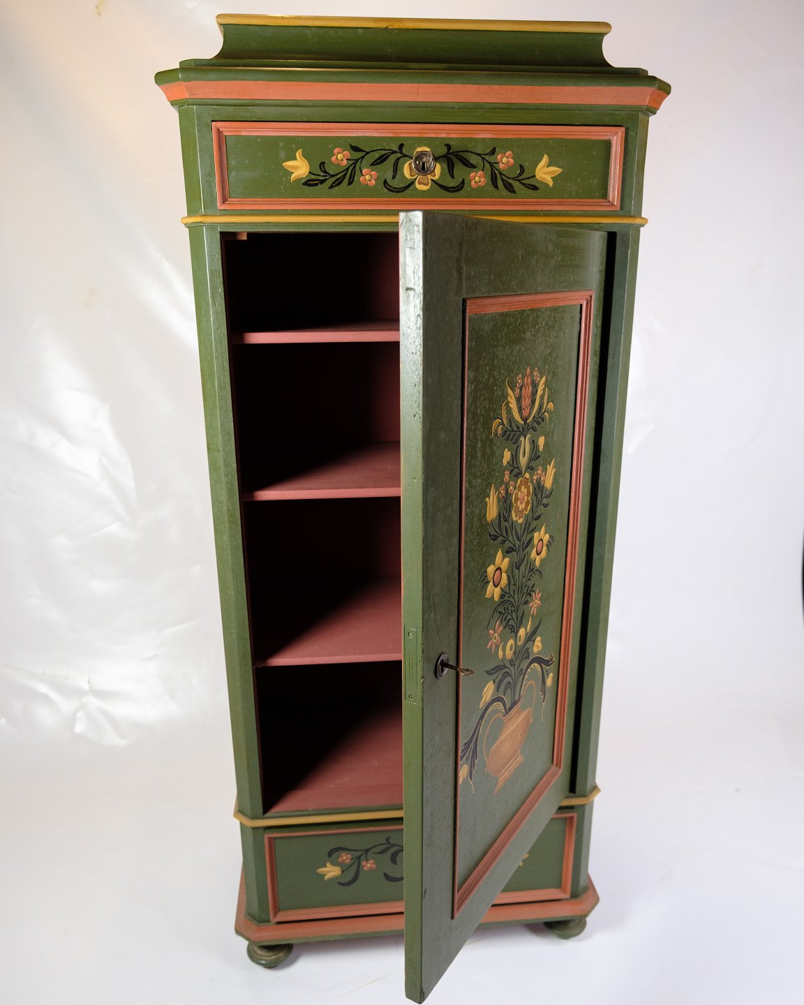SolgtDette antikke skab fra omkring 1890 er et pragteksempel på historisk håndværk og æstetik. Håndmalet med en smuk blomsterdekoration udstråler skabet en tidløs charme og elegance. Den omhyggeligt udførte dekoration tilføjer et strejf af kunstnerisk flair og personlighed til rummet. Med sin ældre alder bærer skabet en autentisk patina, der kun tilføjer til dets unikke appel. Perfekt til opbevaring og som et dekorativt element vil dette antikke skab tilføre enhver indretning en fornem elegance og historisk dybde.
