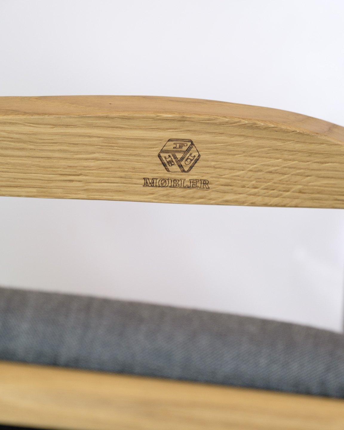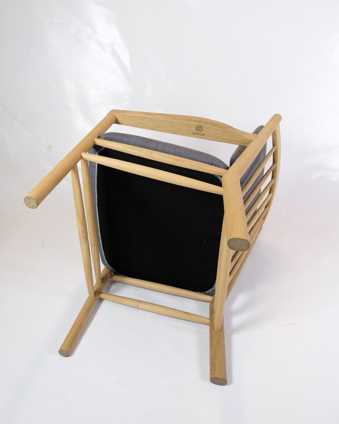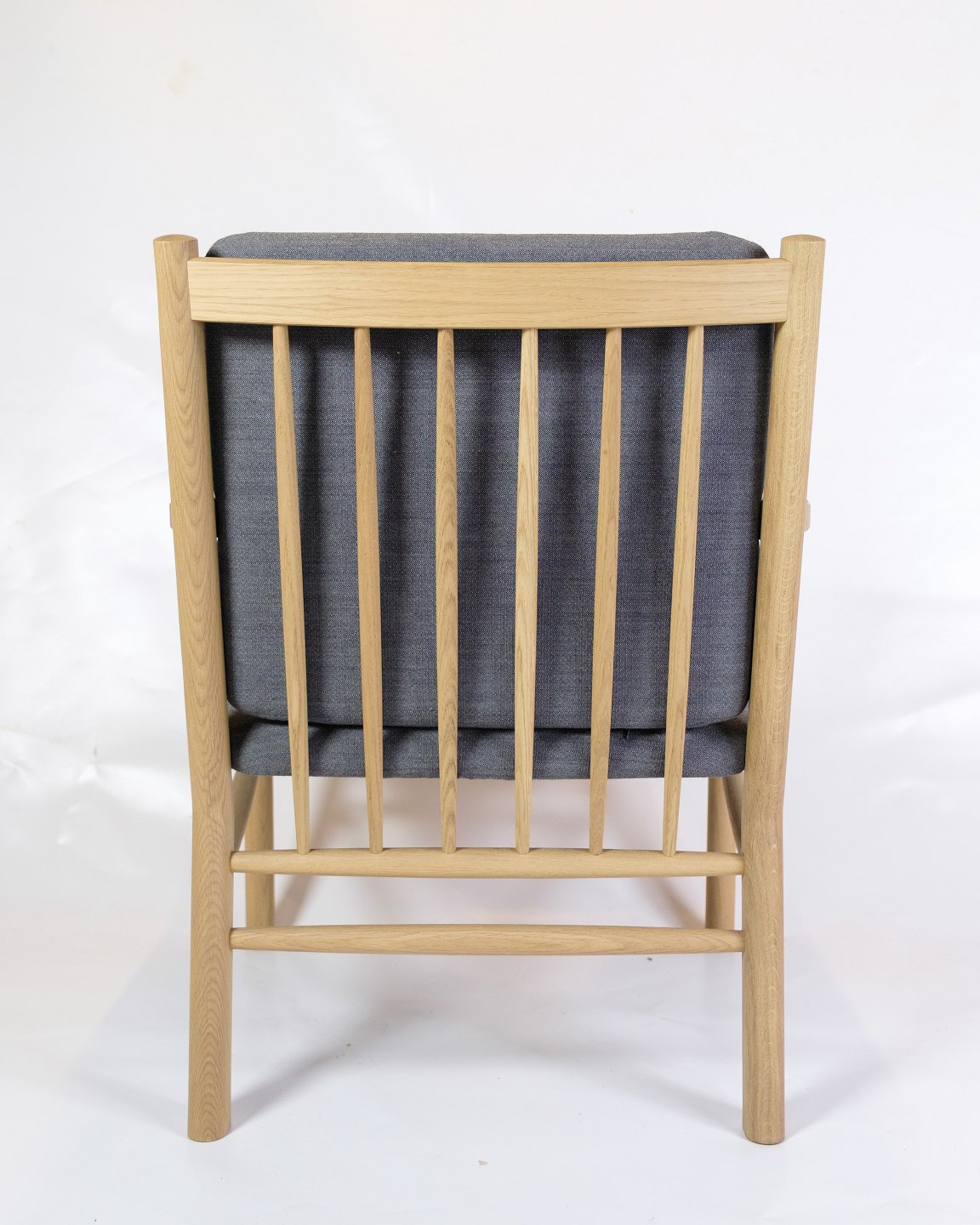 This set of two armchairs, model J147, exudes a sublime combination of comfort and elegance. Made from solid oak and upholstered in a stylish gray wool cover, these armchairs offer a luxurious seating experience.