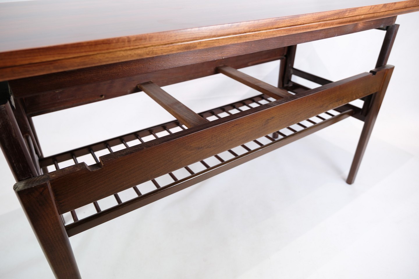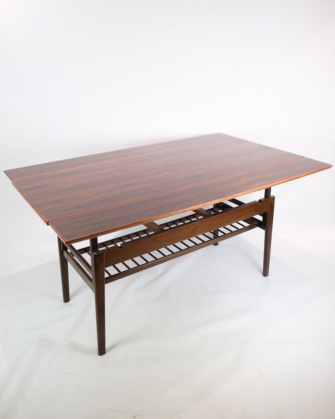 SolgtDette sofabord er et imponerende stykke møbelkunst, der udstråler både elegance og funktionalitet. Fremstillet af palisander præsenterer det et højdepunkt inden for dansk møbeldesign.