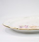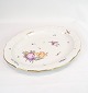 Fad af Kongelig porcelæn med mønstret Saksisk blomst dekoreret i kanten med guld. Fremstillet af Royal Copenhagen i ca. 1923, hvor alle deres varer er blevet håndmalet og efterfølgende blevet meget sjældne. Fadet står uden mangler eller defekter.