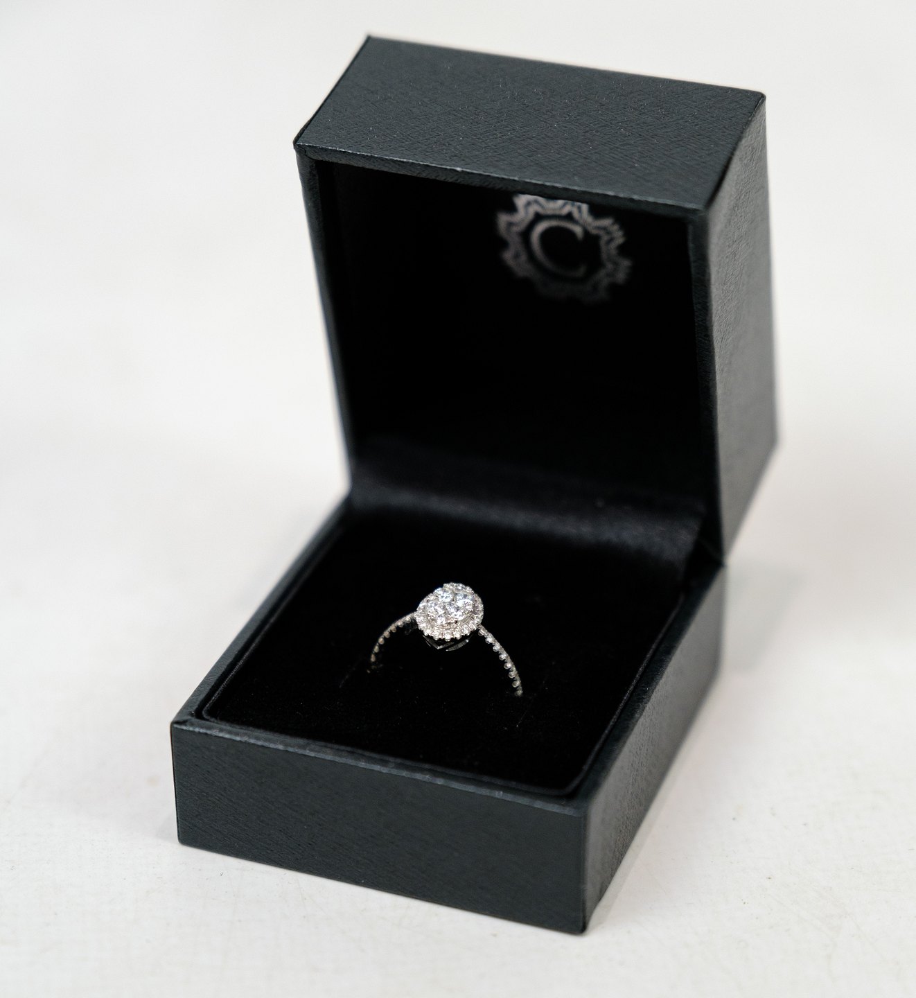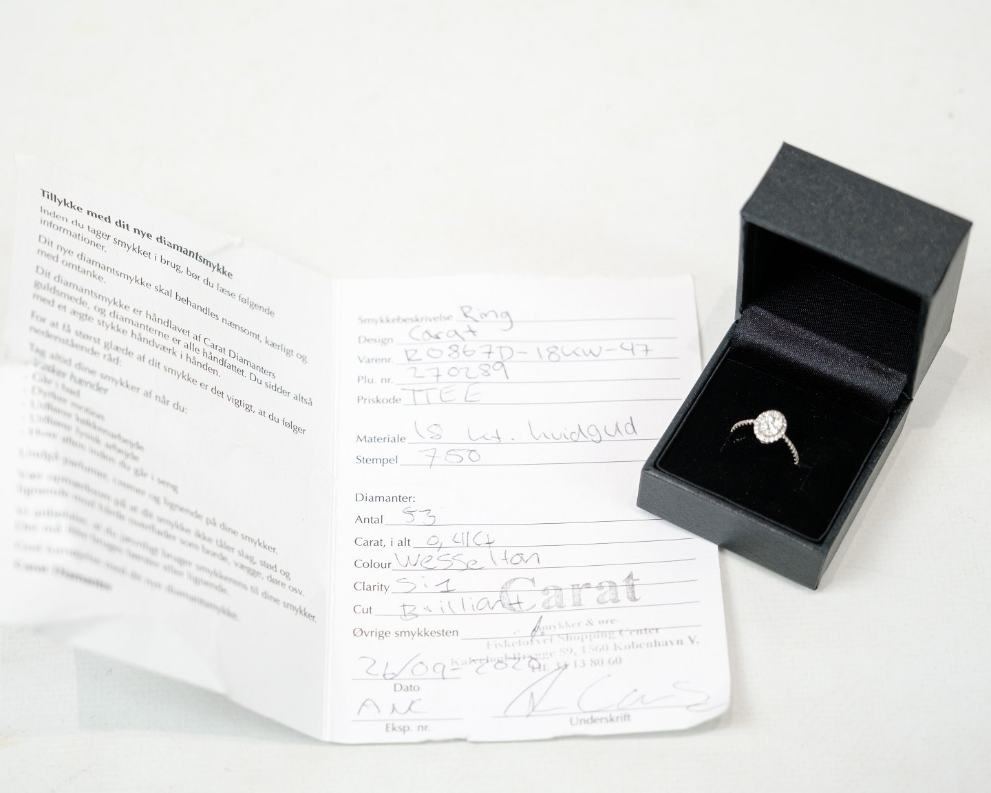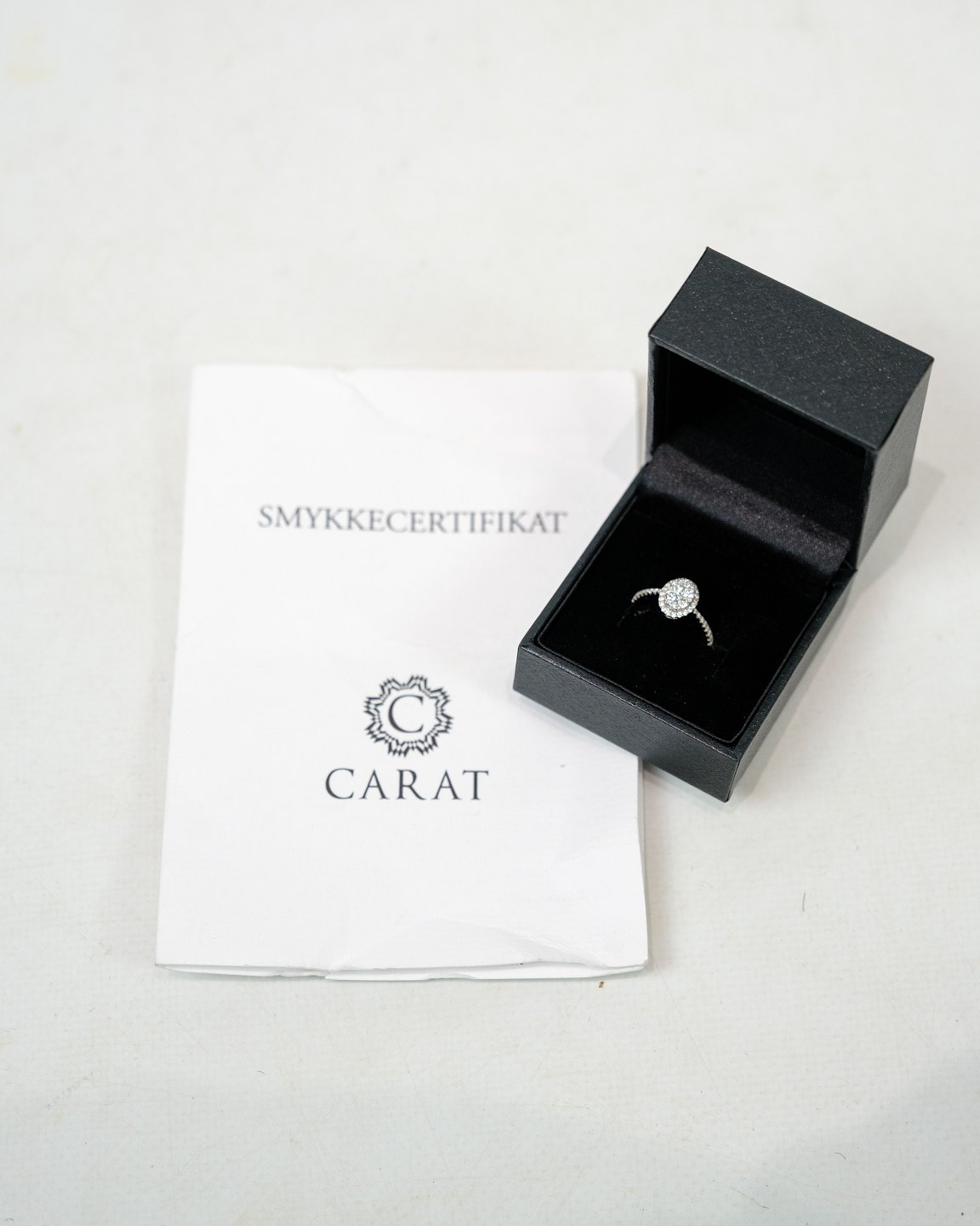 En Flot Diamant Ring, håndlavet af Carat Diamanters dygtige guldsmede. Ringen er fremstillet af 18 karat hvidguld, udsmykket med 53 brillanter som alle sammen er håndfattet. Med til ringen følger både en original kasse og et smykke certifikat, hvilket bekræfter dens autenticitet og kvalitet.