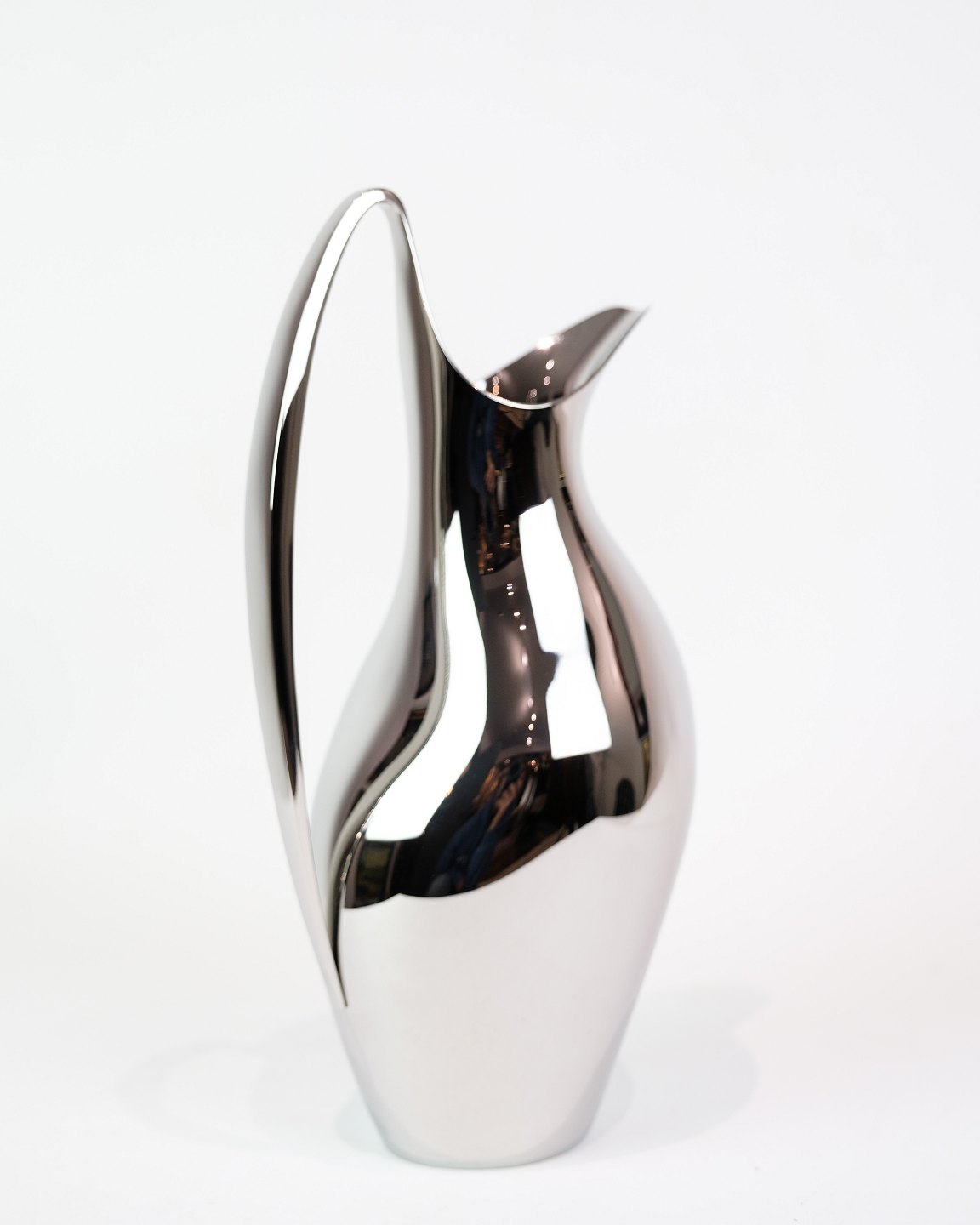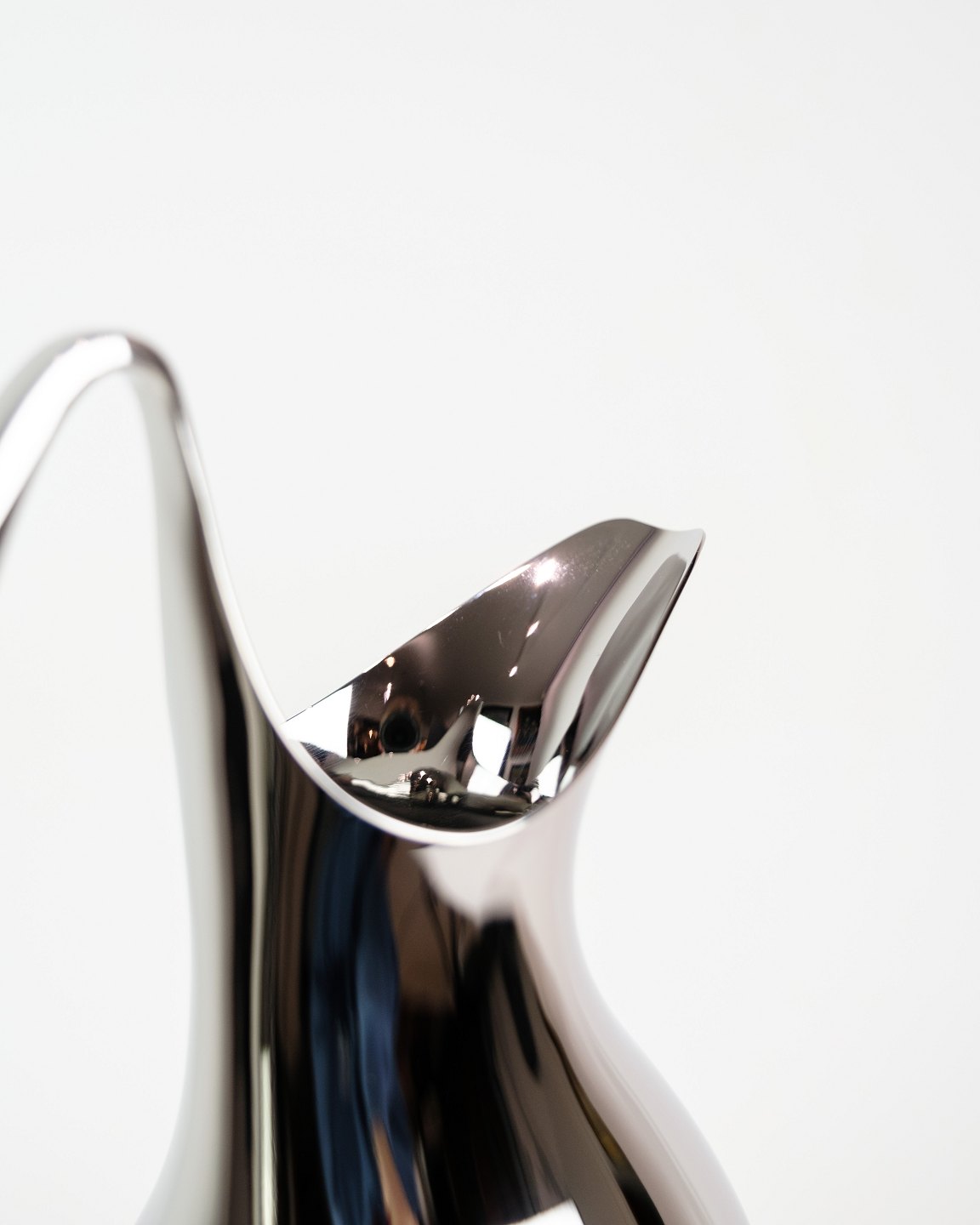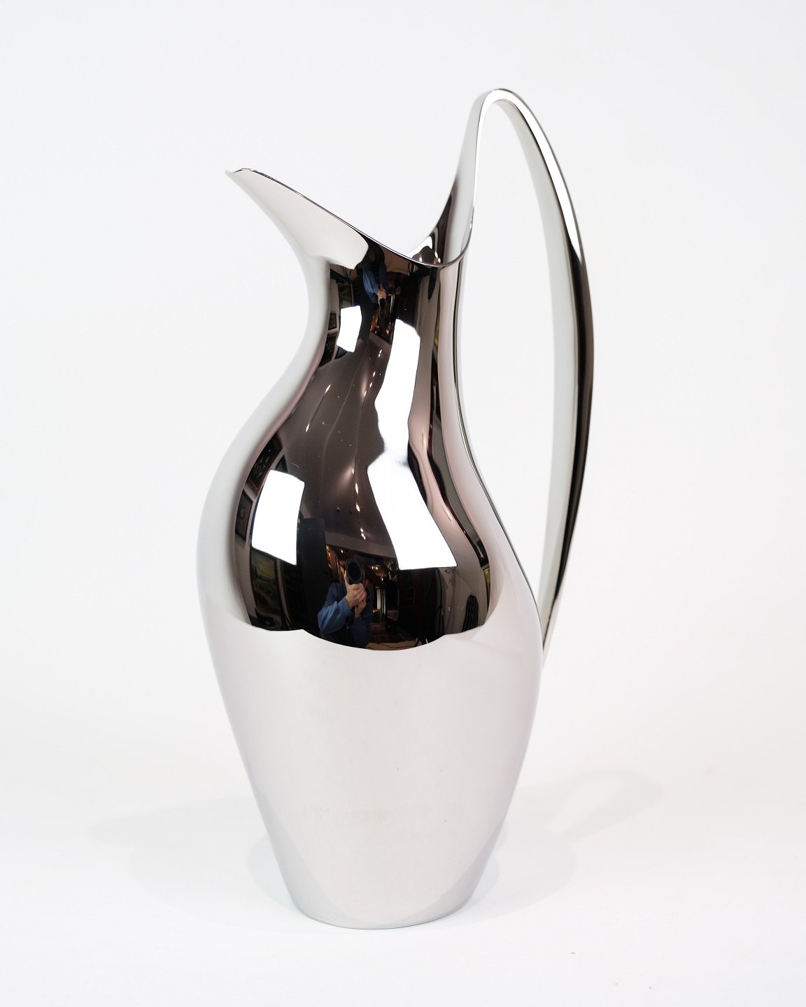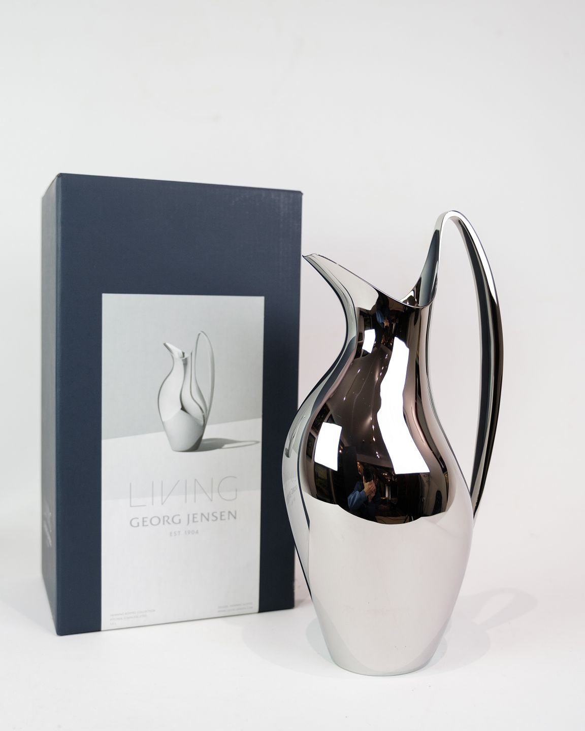 SolgtHK Kanden fra Georg Jensen har en kapacitet på 1,2 liter og er fremstillet i rustfrit stål. Designet af Henning Koppel, kombinerer kanden funktionalitet med et elegant og minimalistisk udtryk. Koppel, der blev kendt for sine organiske og skulpturelle former, designede en række ikoniske produkter for Georg Jensen.