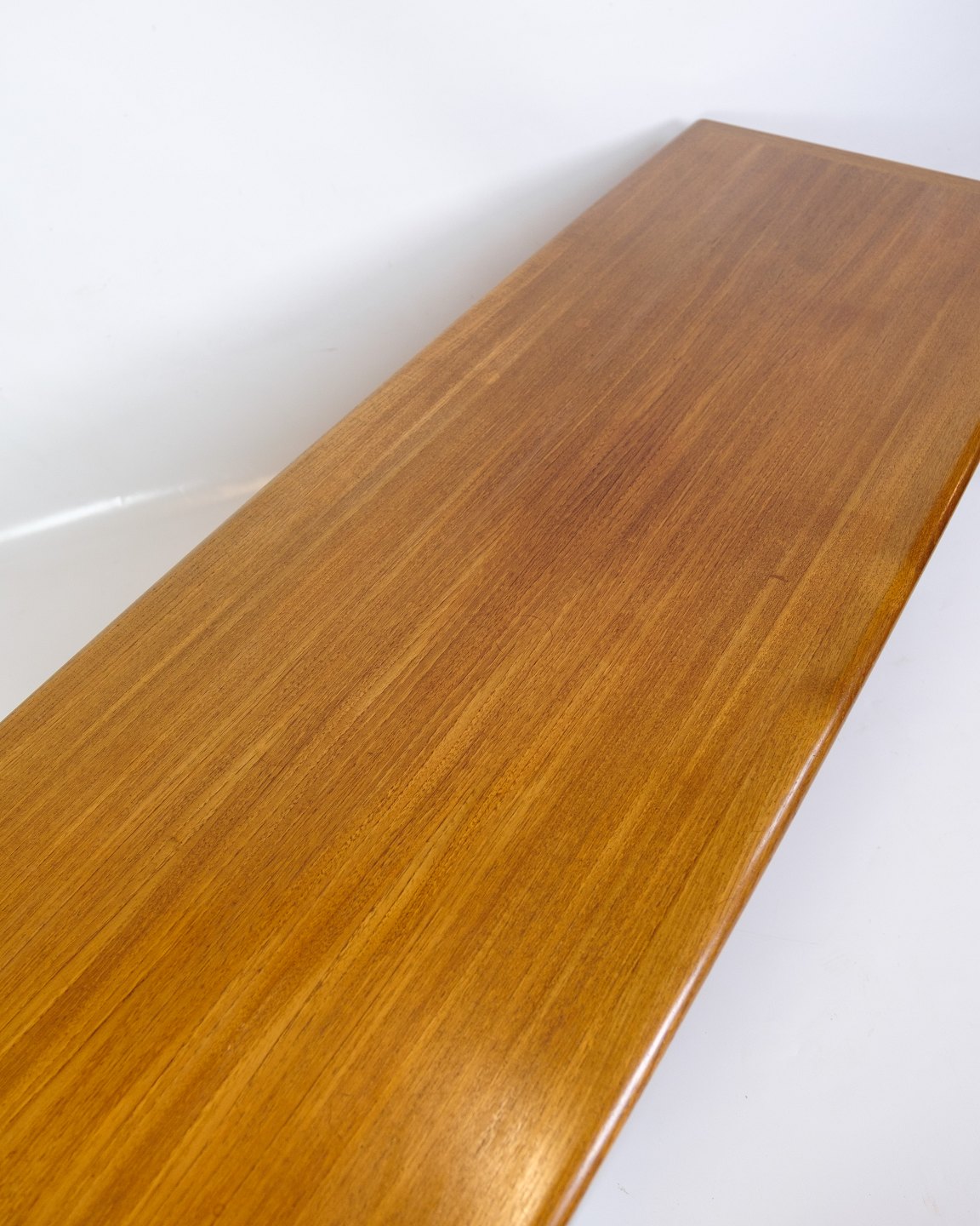 Teak coffee table, designed by Grete Jalk and manufactured by Glostrup Møbelfabrik in the 1960s. The table has a simple and stylish design, which is characteristic of Danish furniture from the period. The teak wood gives the table a warm color tone and shows the beautiful grain of the wood, which emphasizes the quality of the material.