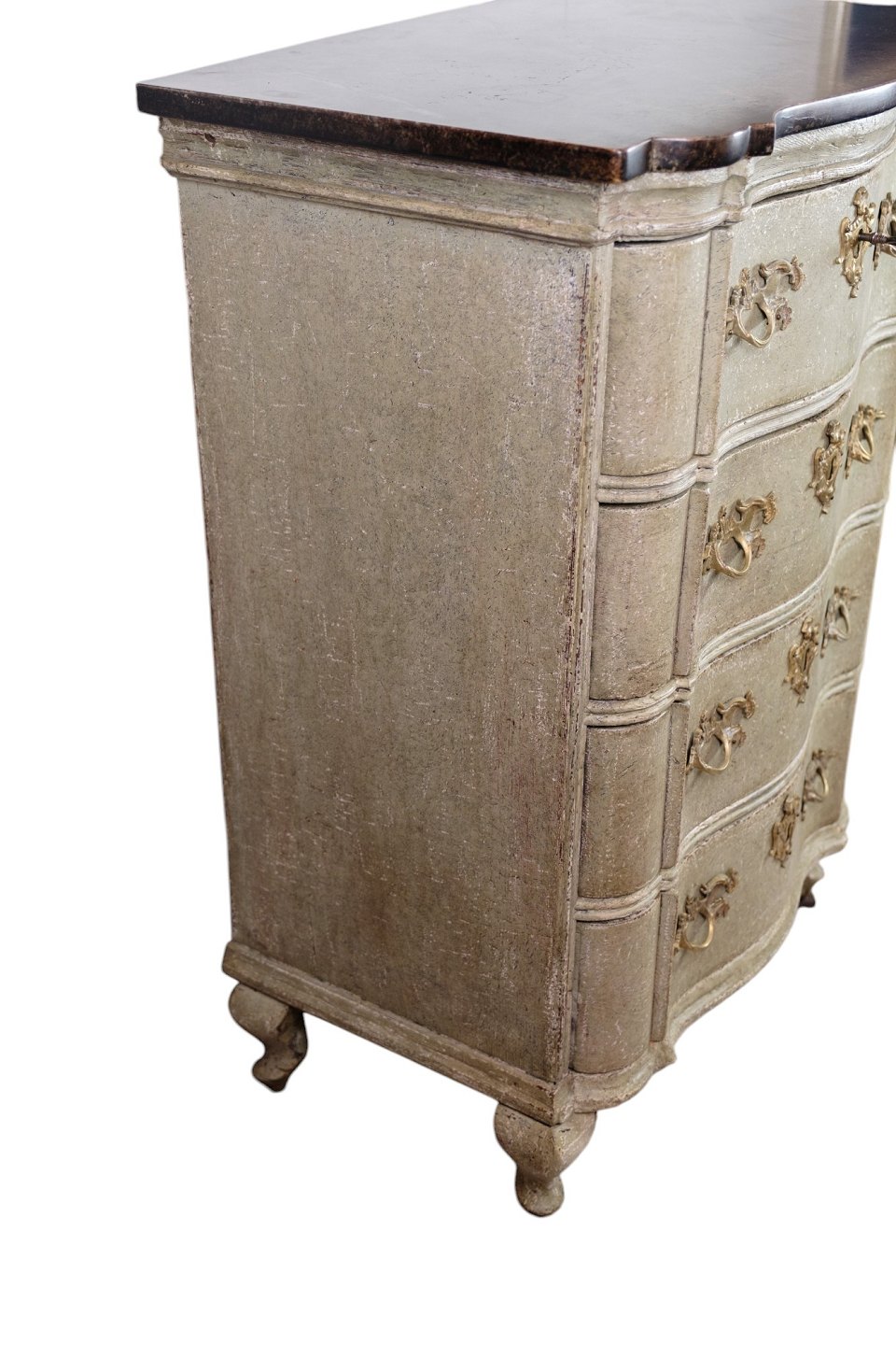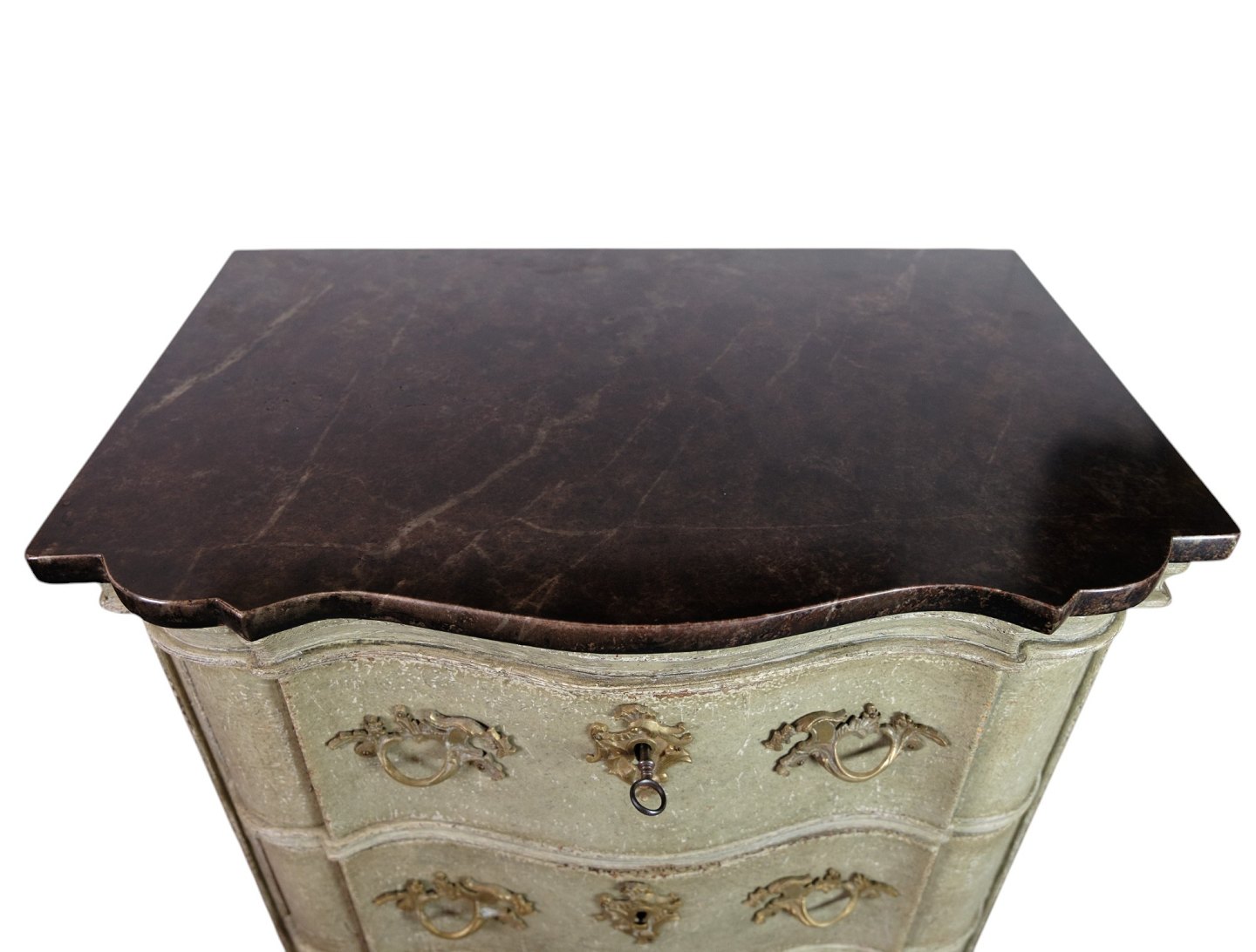 Antikt Original Malet Kommode Med Mørke brunlig Marmor Plade - Barok Stil - Grålig Farve - 1740erne