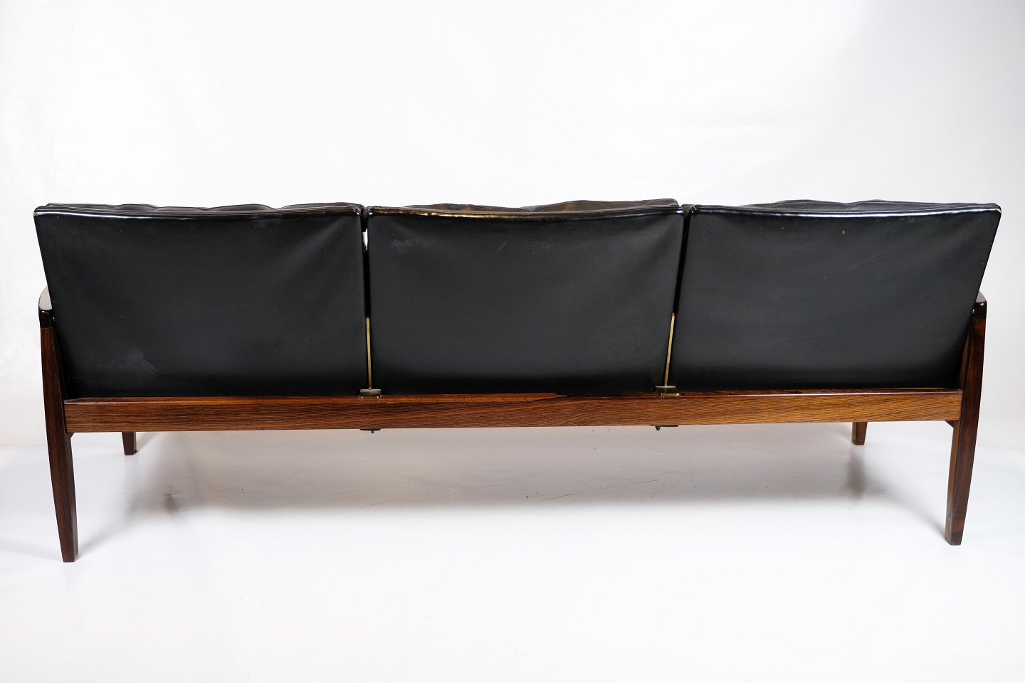 3 seater sofa - Rosewood - Black Leather Cushions - Hans Olsen - Brdr. Juul Kristensen - 1960