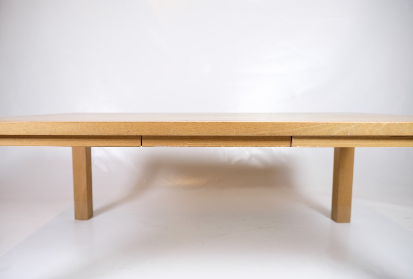 Coffee table made of beech wood with a linoleum surface, designed by Magnus Olesen. The table combines a solid frame in light beech wood with a practical linoleum surface, making it resistant to daily use. The curved corners and legs add a soft and harmonious expression, which is typical of Magnus Olesen's design.