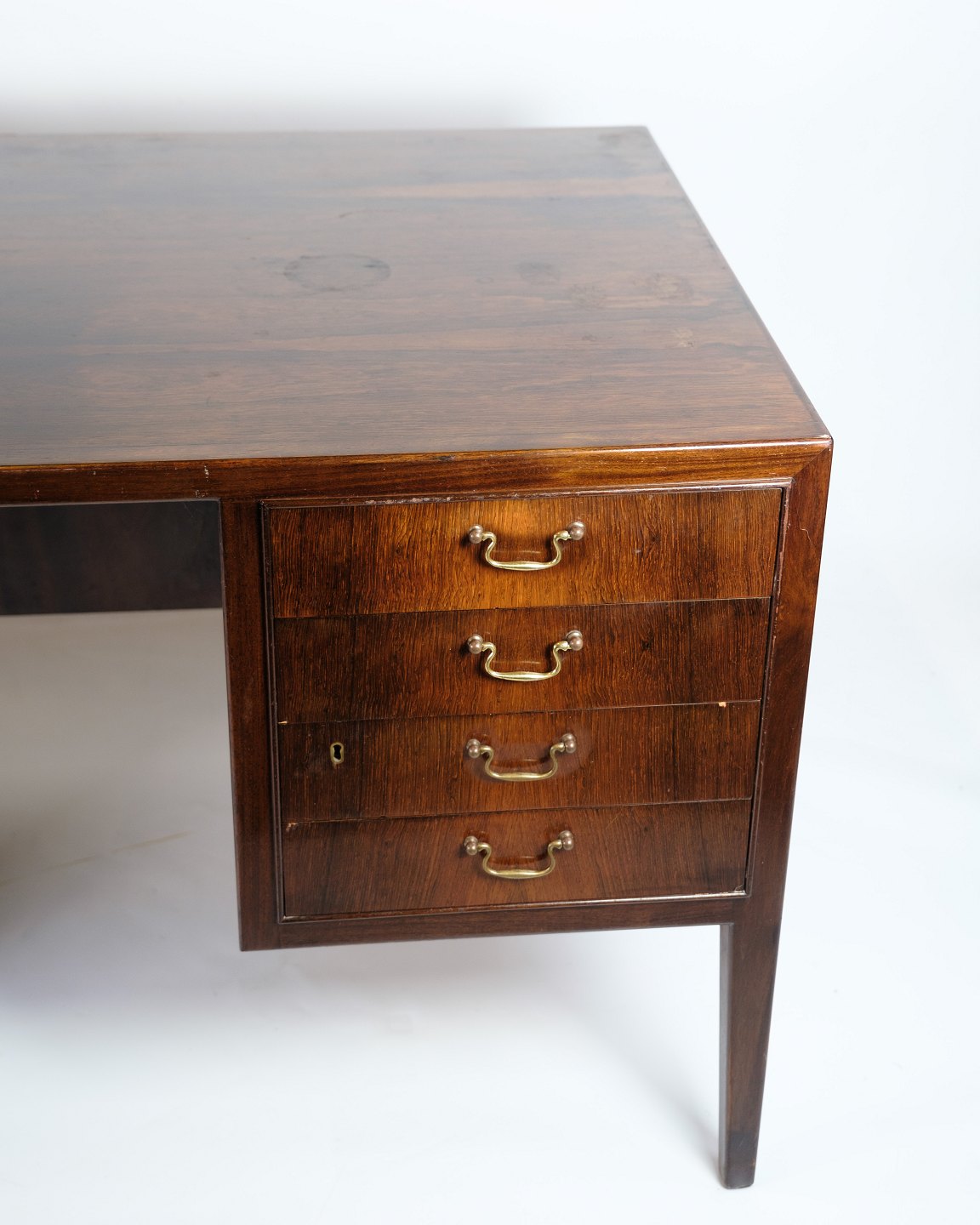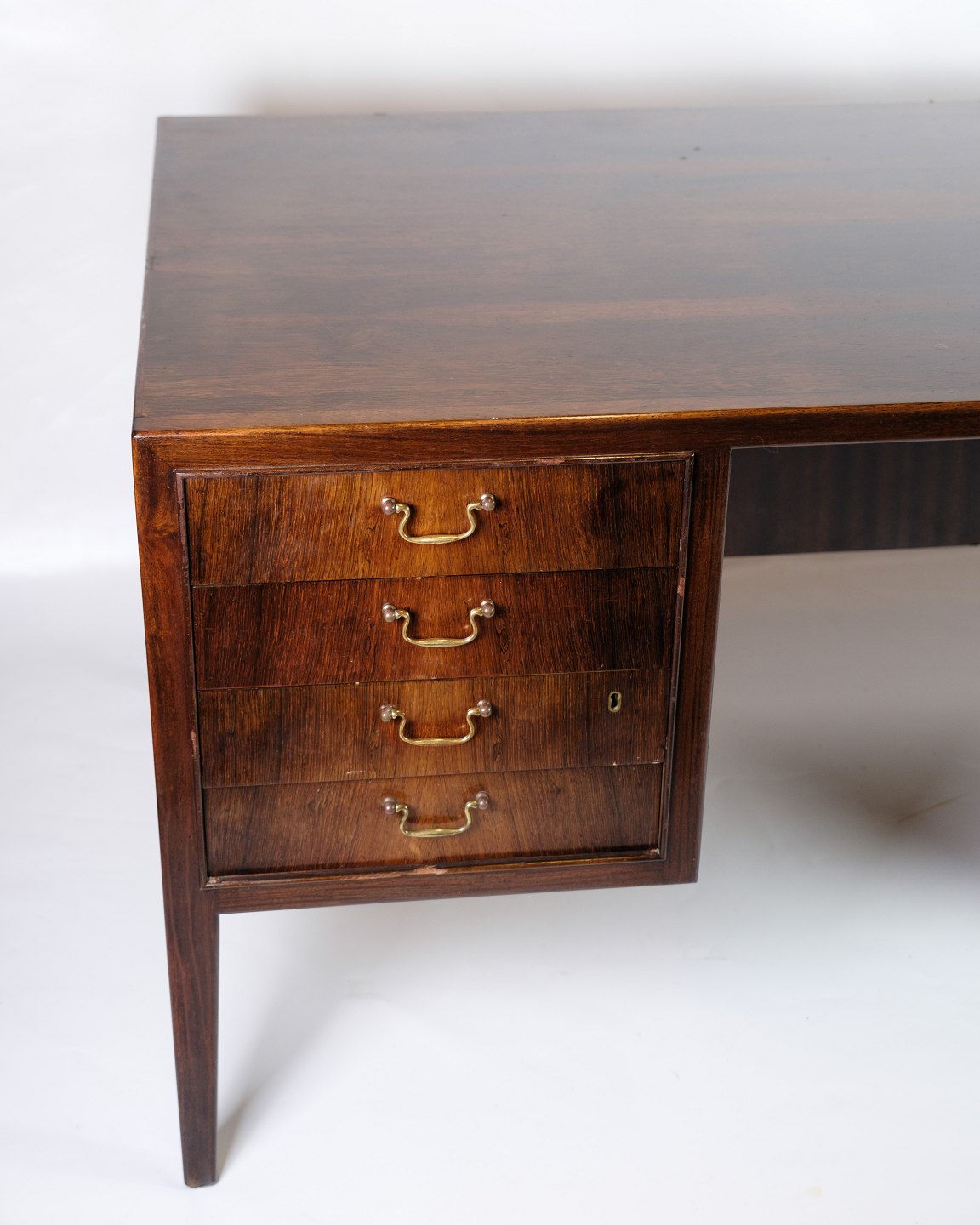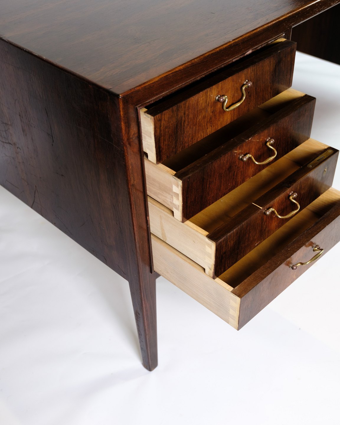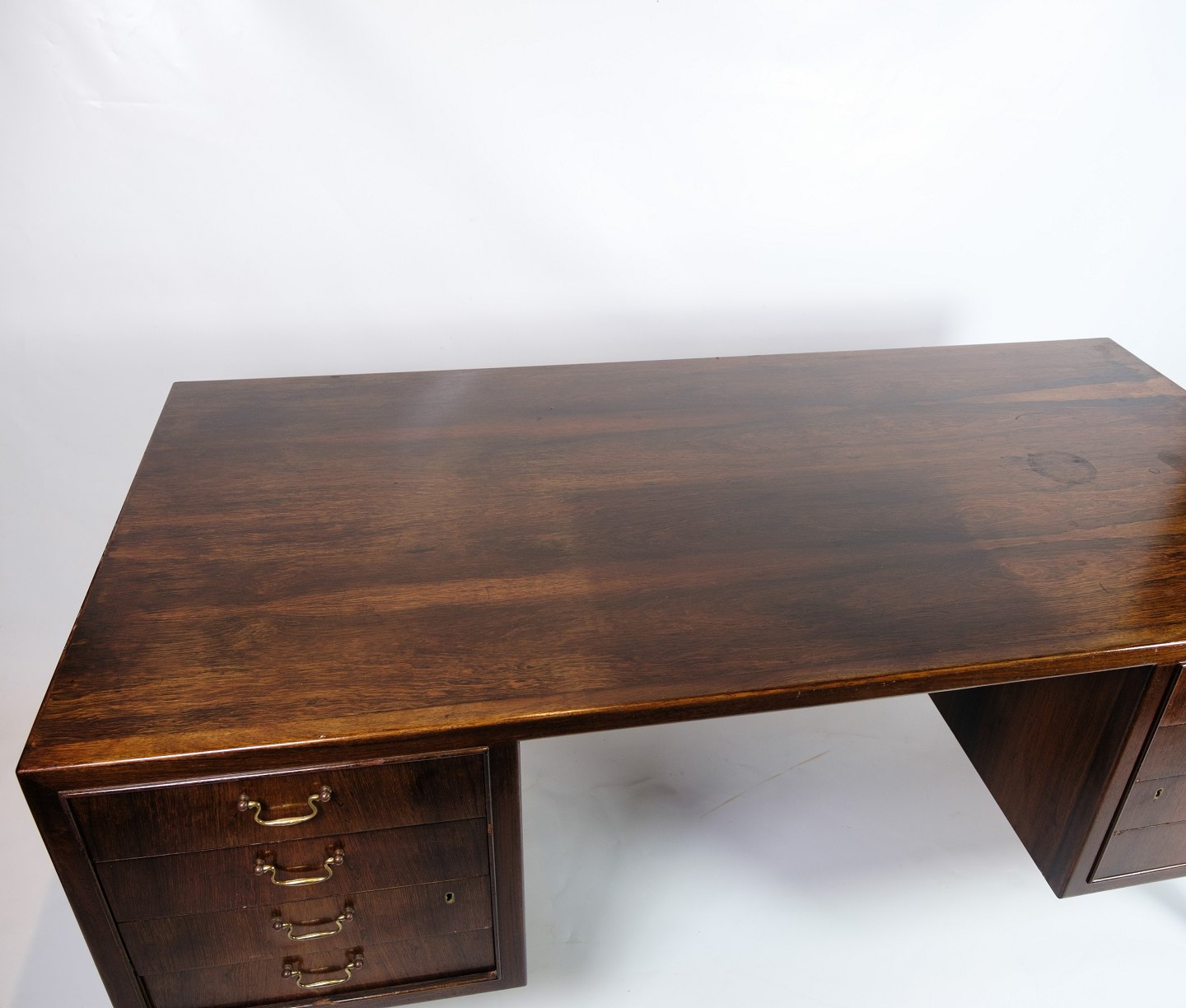 Fritstående skrivebord - Jacob Kjaer - Palisander - messing greb og 8 skuffer - 1960'erne.
