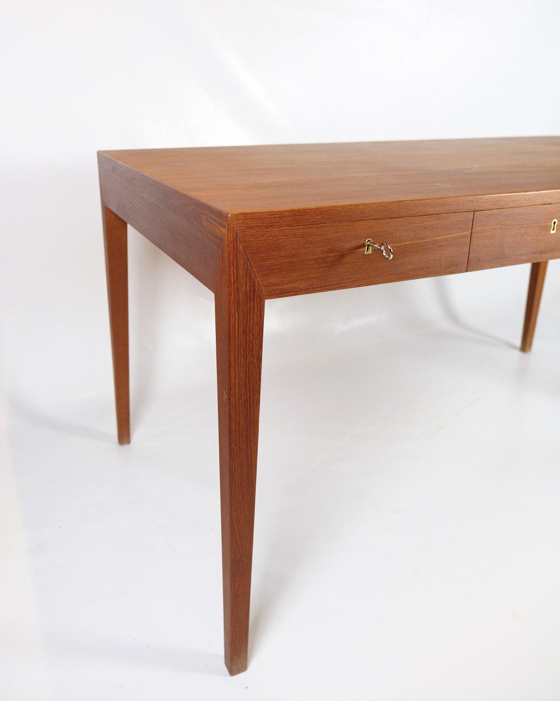 SoldTeak desk, designed by Severin Hansen and produced by Haslev Møbelfabrik in the 1960s. The desk is made of beautiful teak wood, known for its rich color. With its simple and elegant design, this desk is a timeless example of Danish furniture art from the mid-20th century.