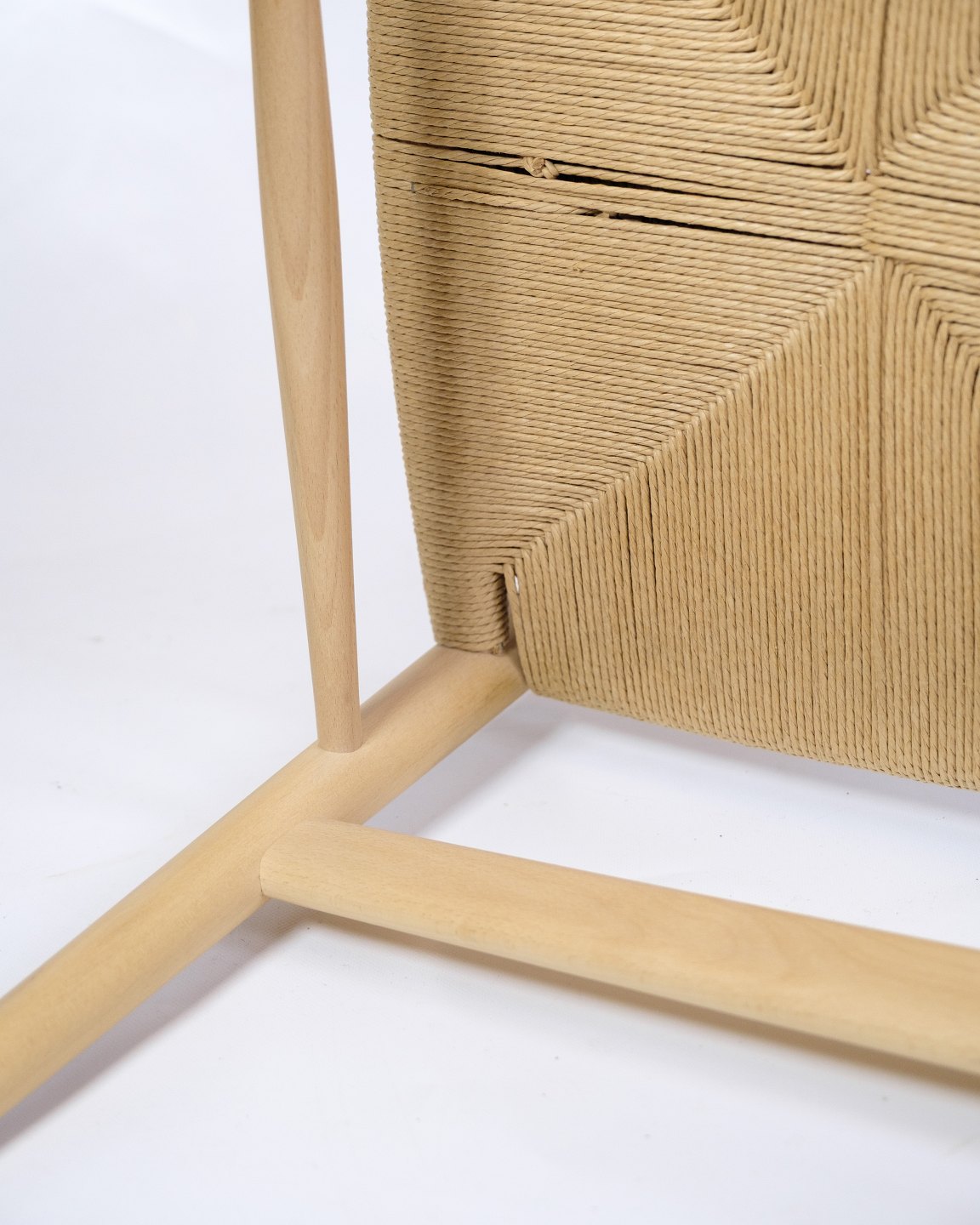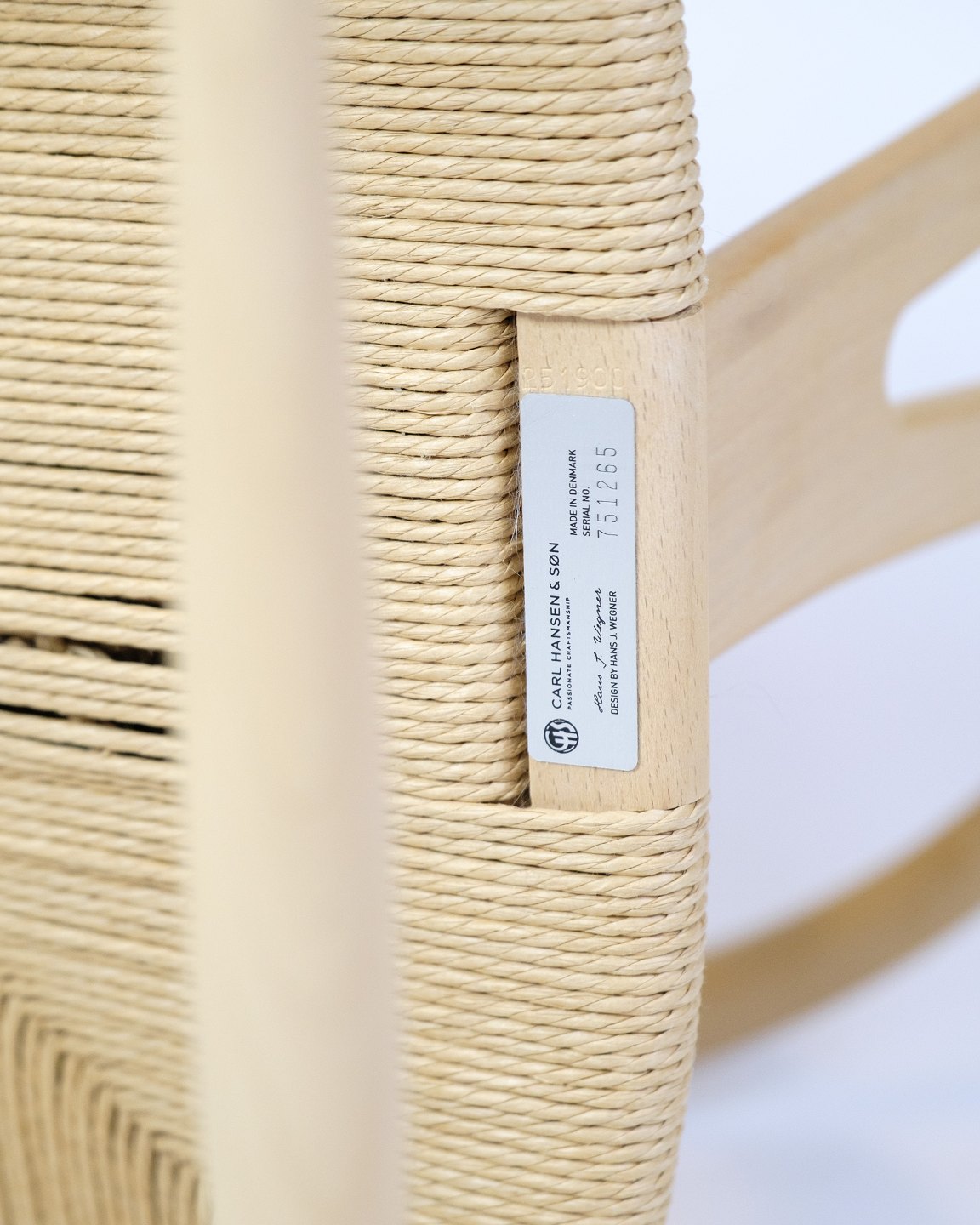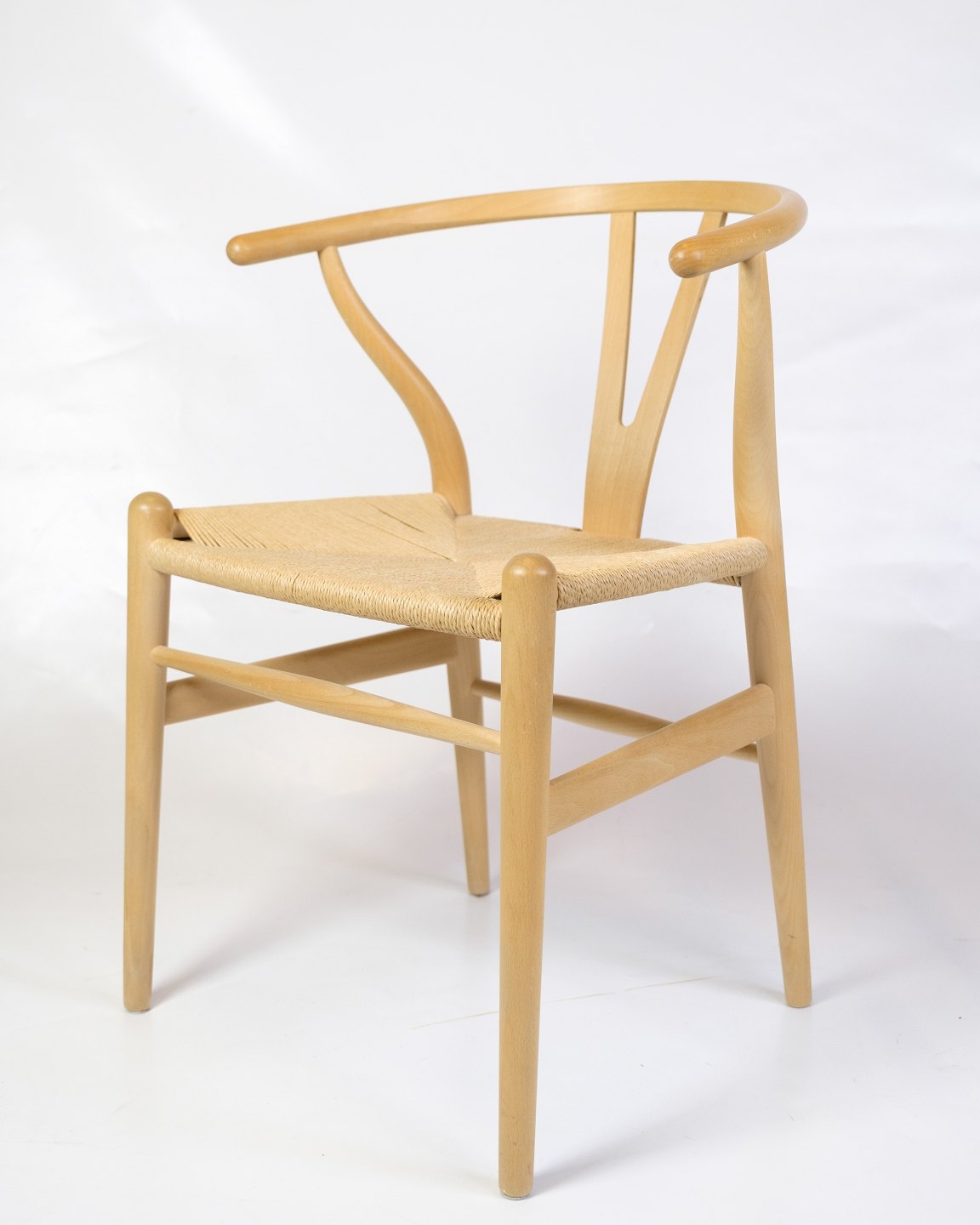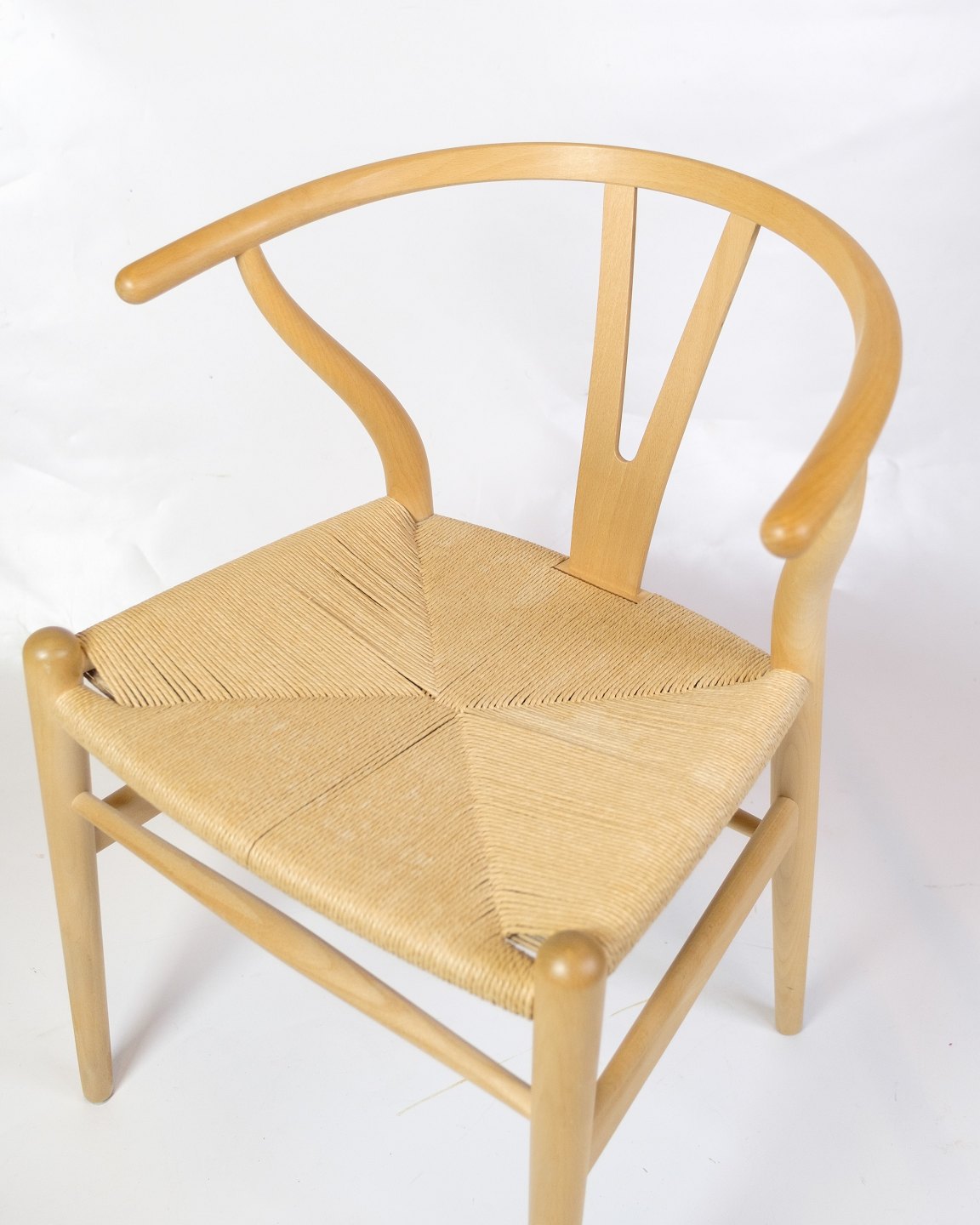 SoldSet of four wishbone chairs, model CH24, designed by Hans J. Wegner and produced by Carl Hansen & Son. Made of beech with hand-woven paper yarn seat. Hans J. Wegner (1914–2007) was a Danish furniture designer who created over 500 chairs with a focus on function, craftsmanship and simple design. The wishbone chair is one of his best-known works and a firm icon in Danish furniture tradition.