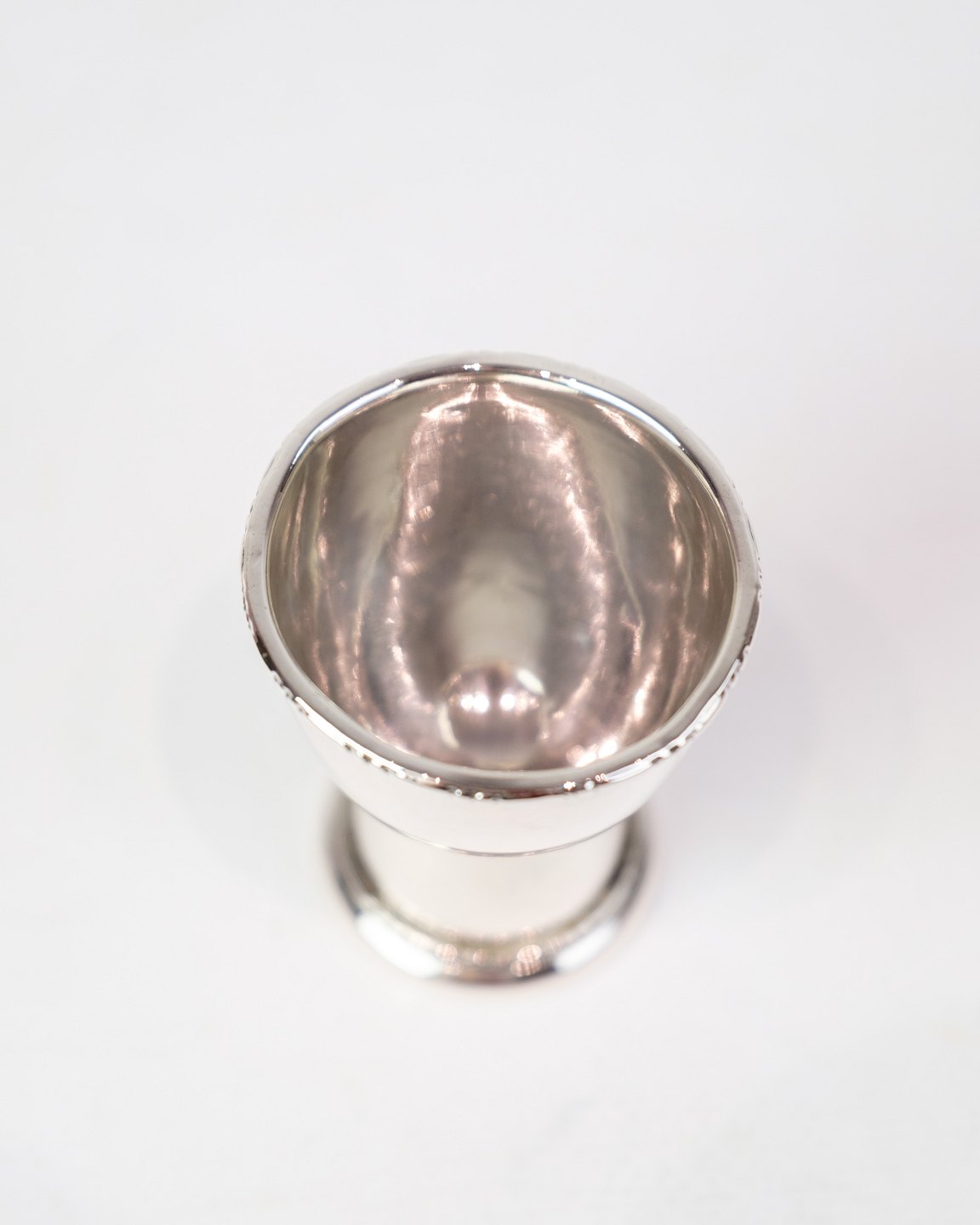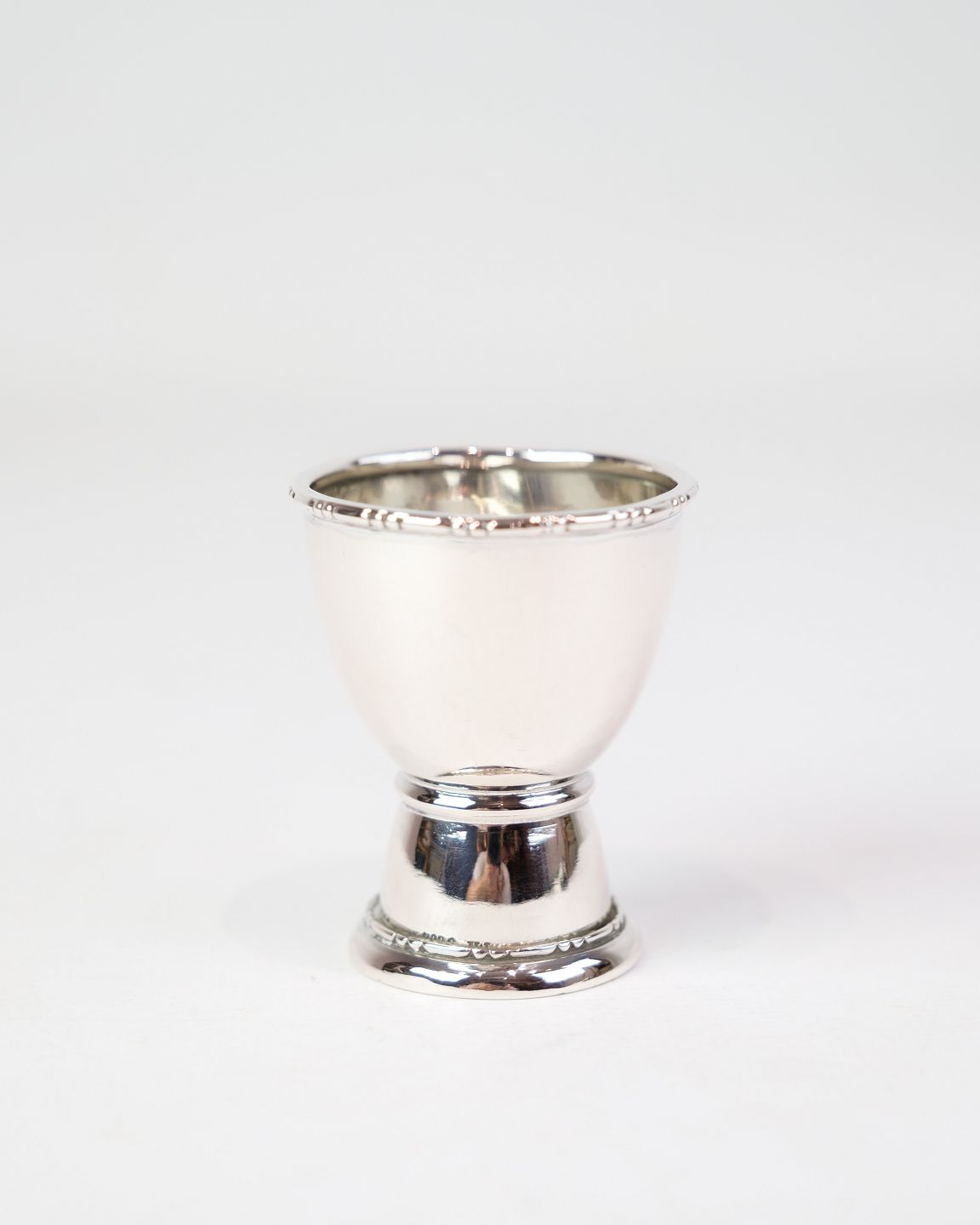Æggebæger i ægte sølv. Enkelt design uden indgravering med dekoreret kant.