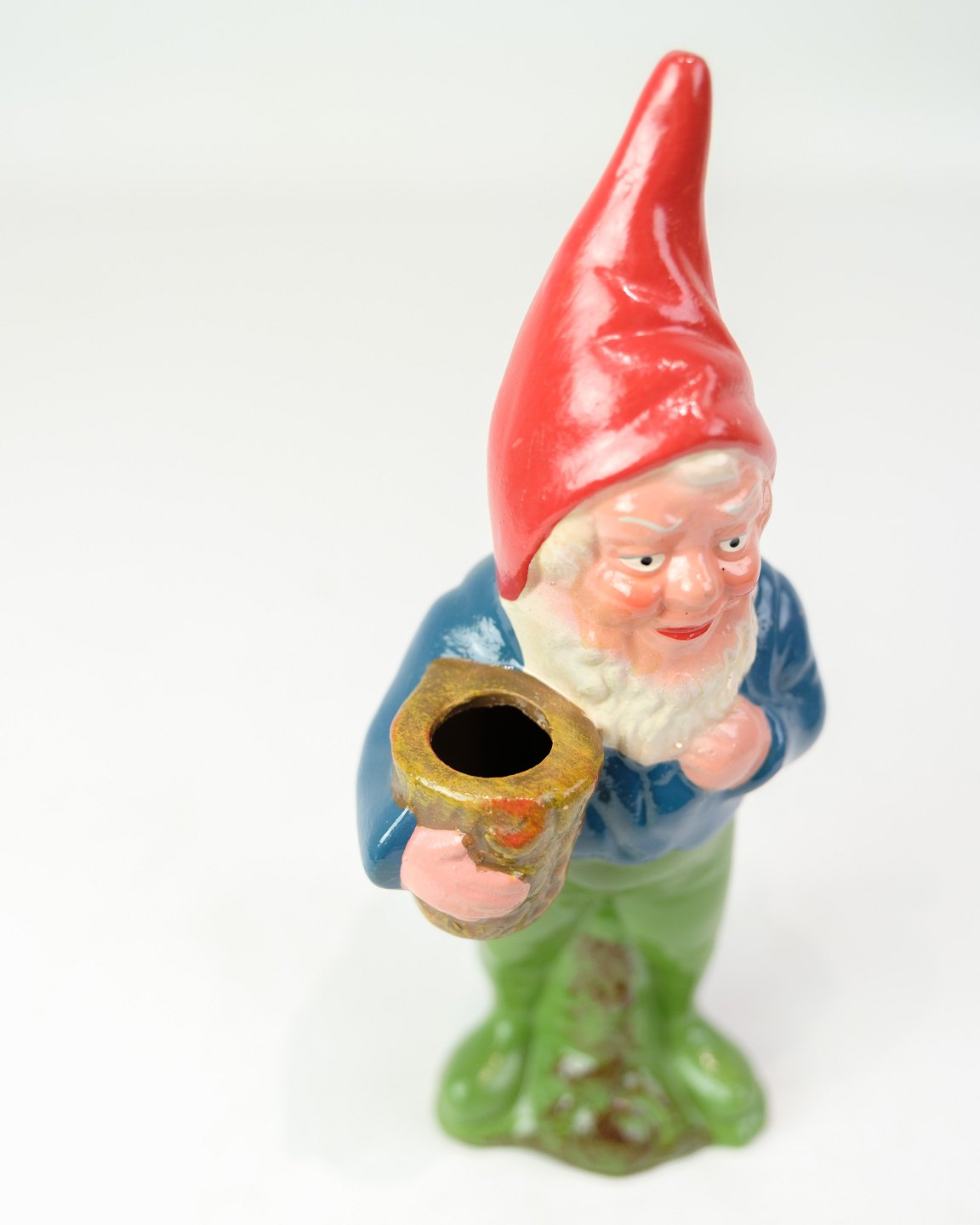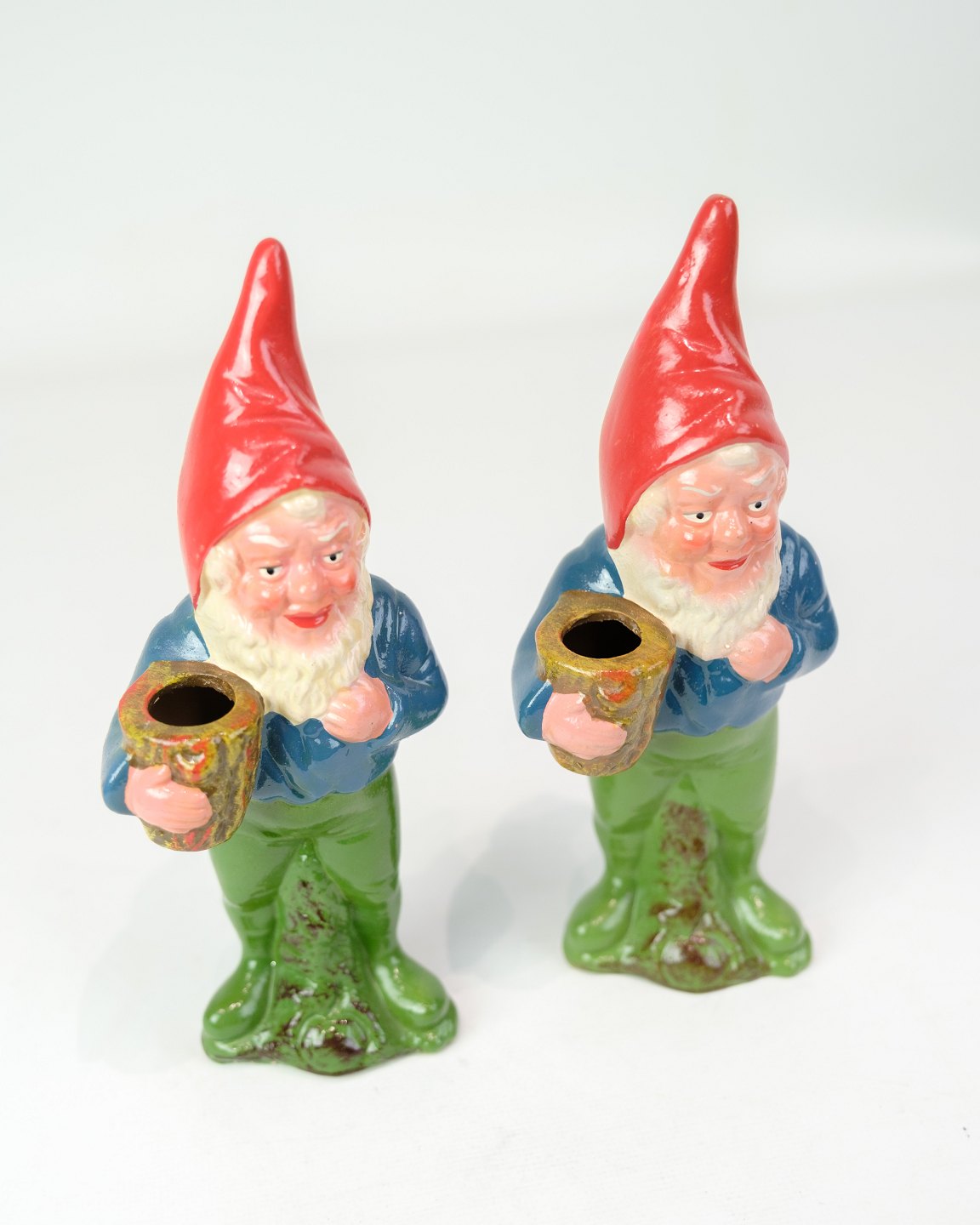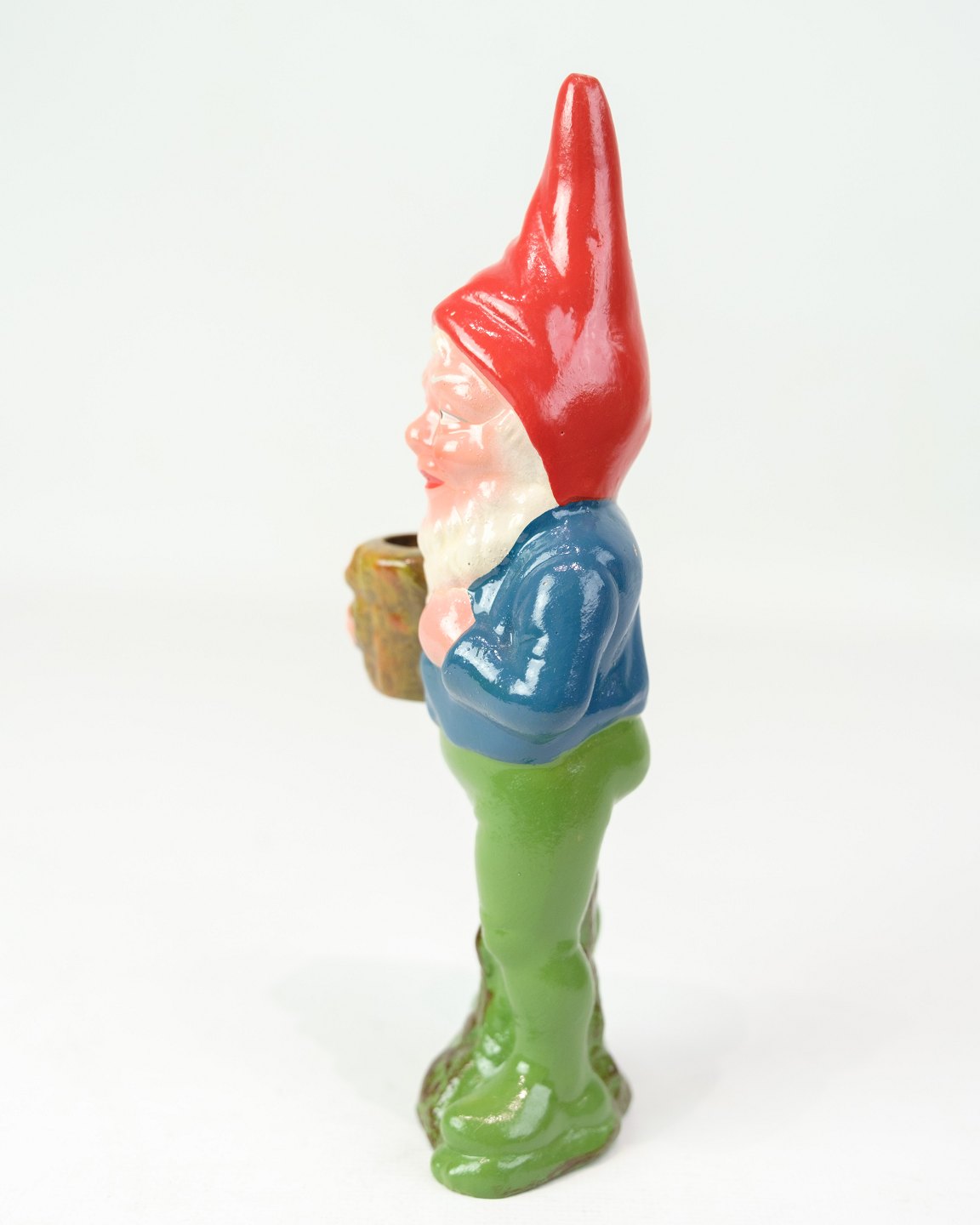 Set of vintage Christmas candle holders shaped like elves. German origin, circa mid 1900s. Red, green and blue paint. Height 20 cm.
